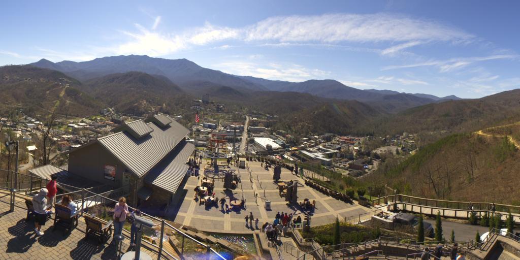 Gatlinburg, Tennessee, USA - 274 km von Parkway Estates: Anakeesta's Firefly Village - Blick auf Anakeesta's Firefly Village und die Great Smoky Mountains im Hintergrund.