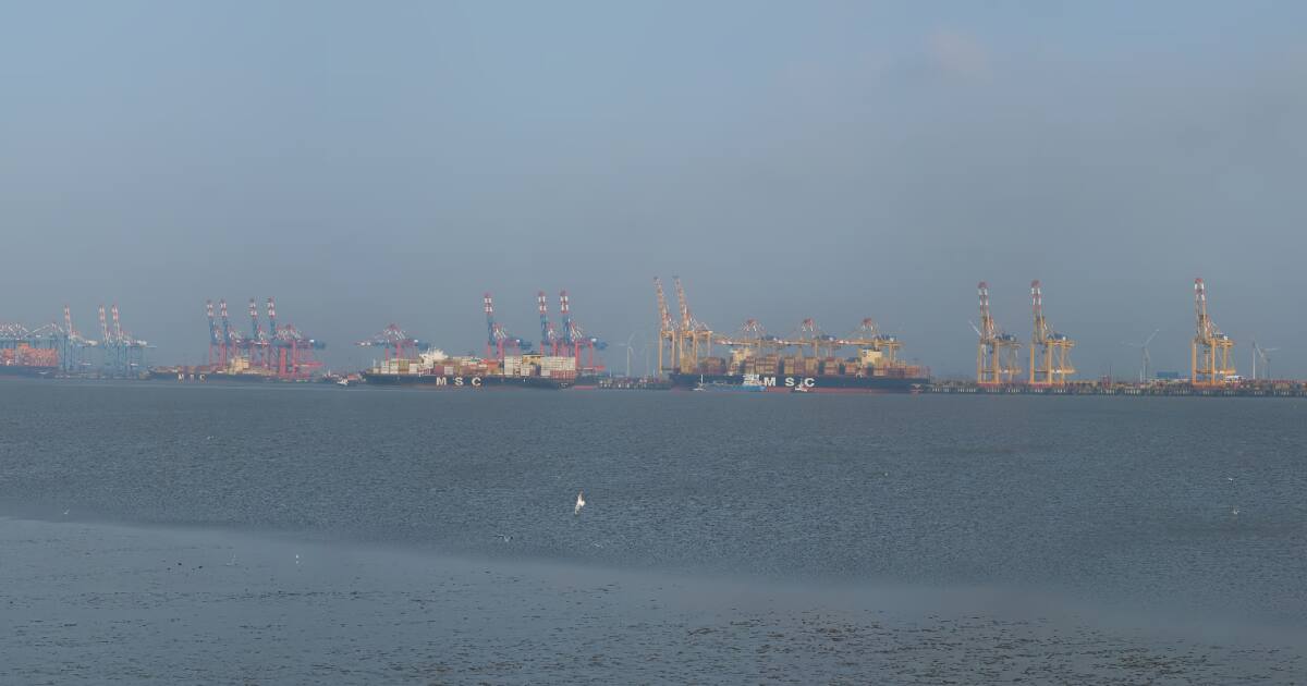 Eckwarderhörne, Deutschland - 20.3 km von Abserdeich: Blick über den Strand - Ein schöner Blick über den Strand von Eckwarderhörne mit Wilhelmshaven im Hintergrund.