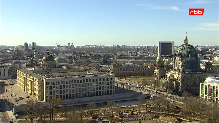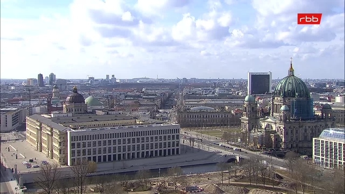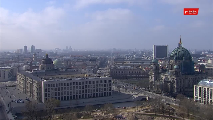 Berlin, Deutschland - 11.4 km von Adlershof: Stadtzentrum - Blick auf das Brandenburger Tor, den Berliner Dom, Kanzleramt, Alexanderplatz und Reichstag.