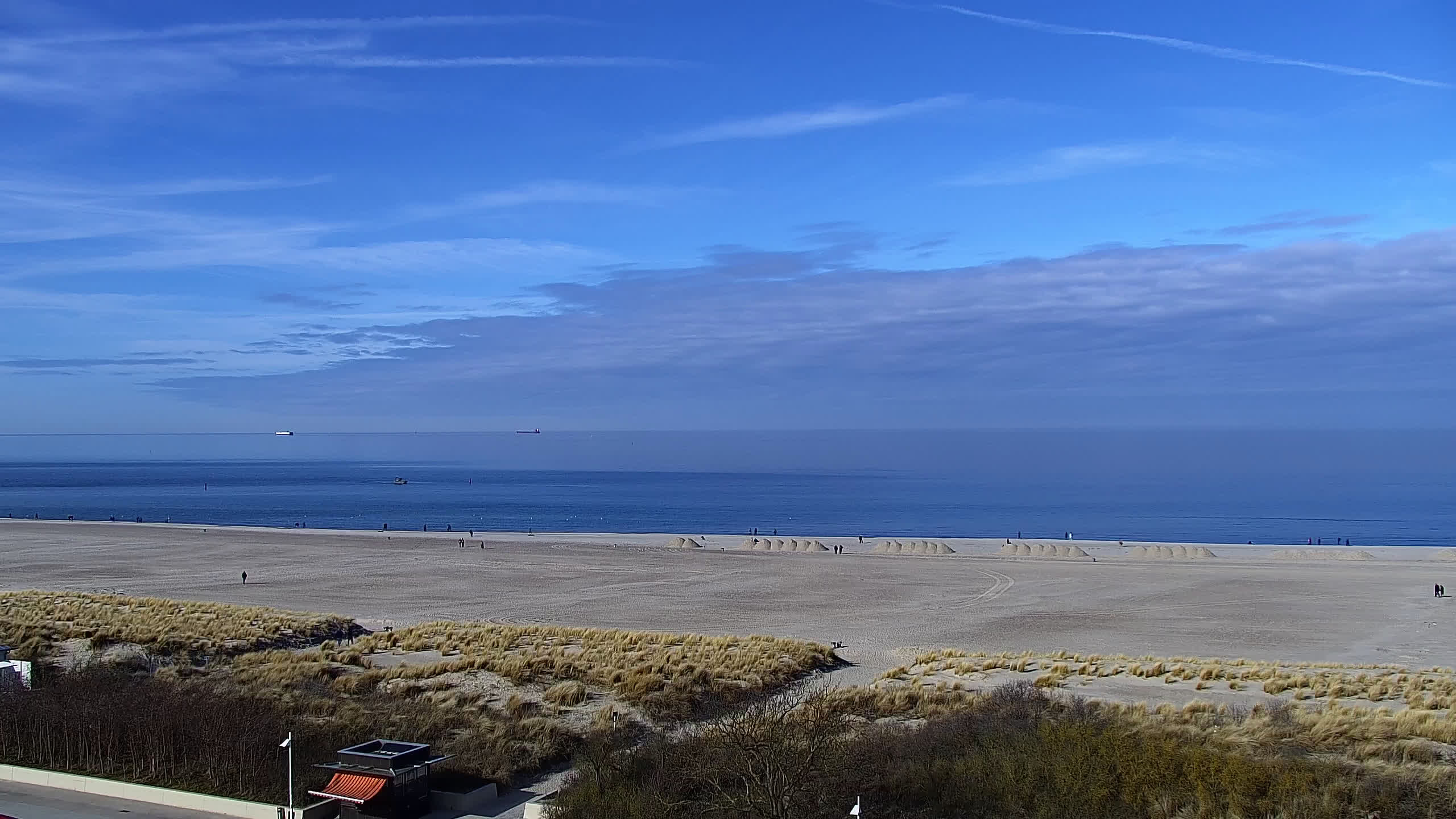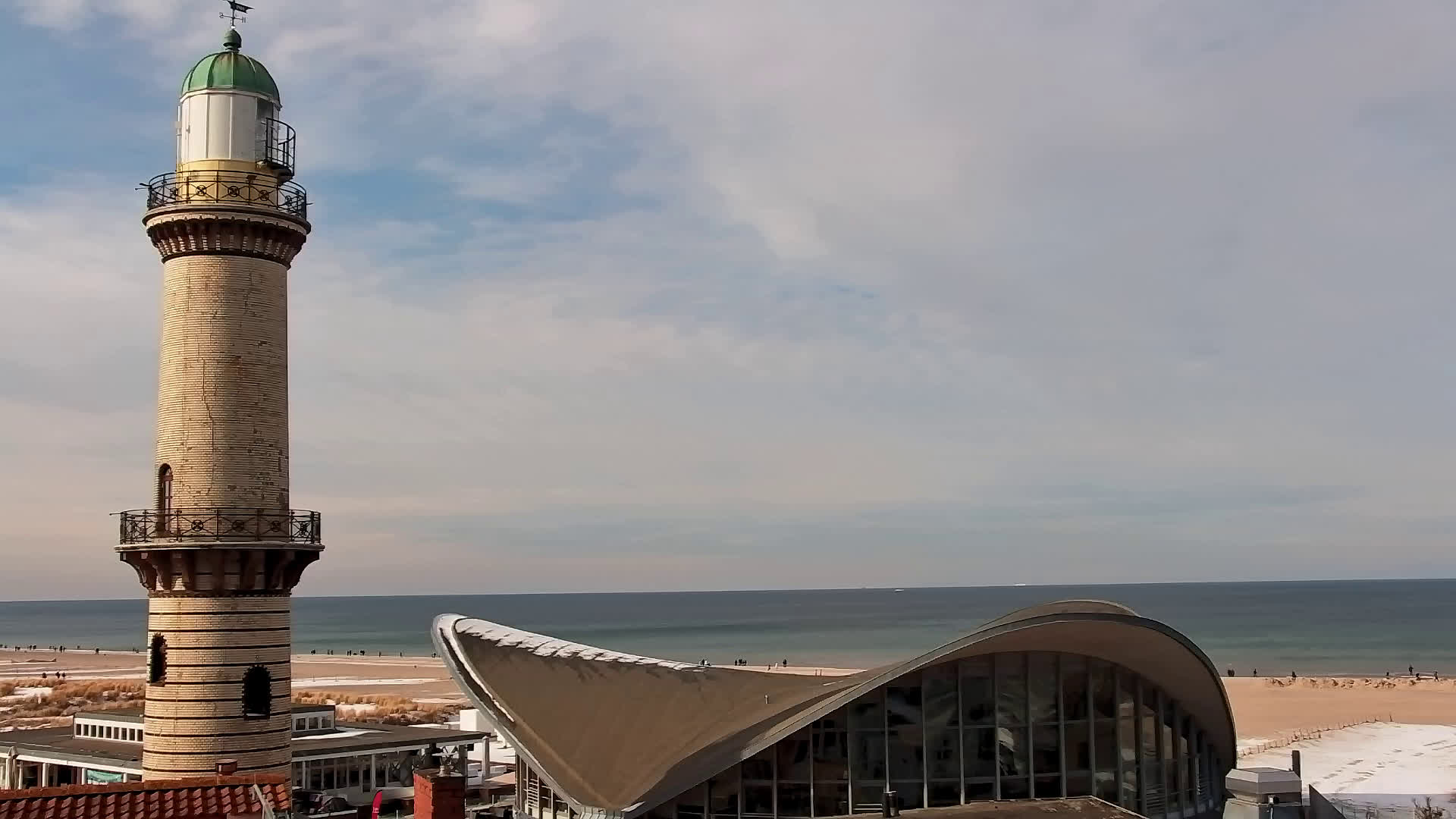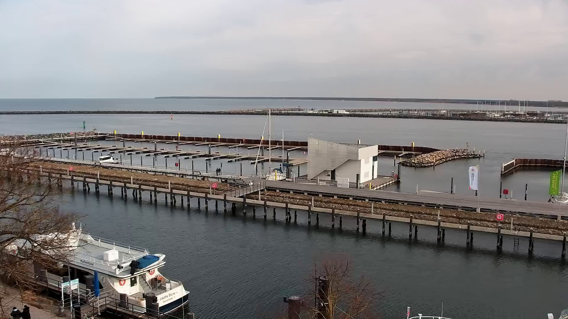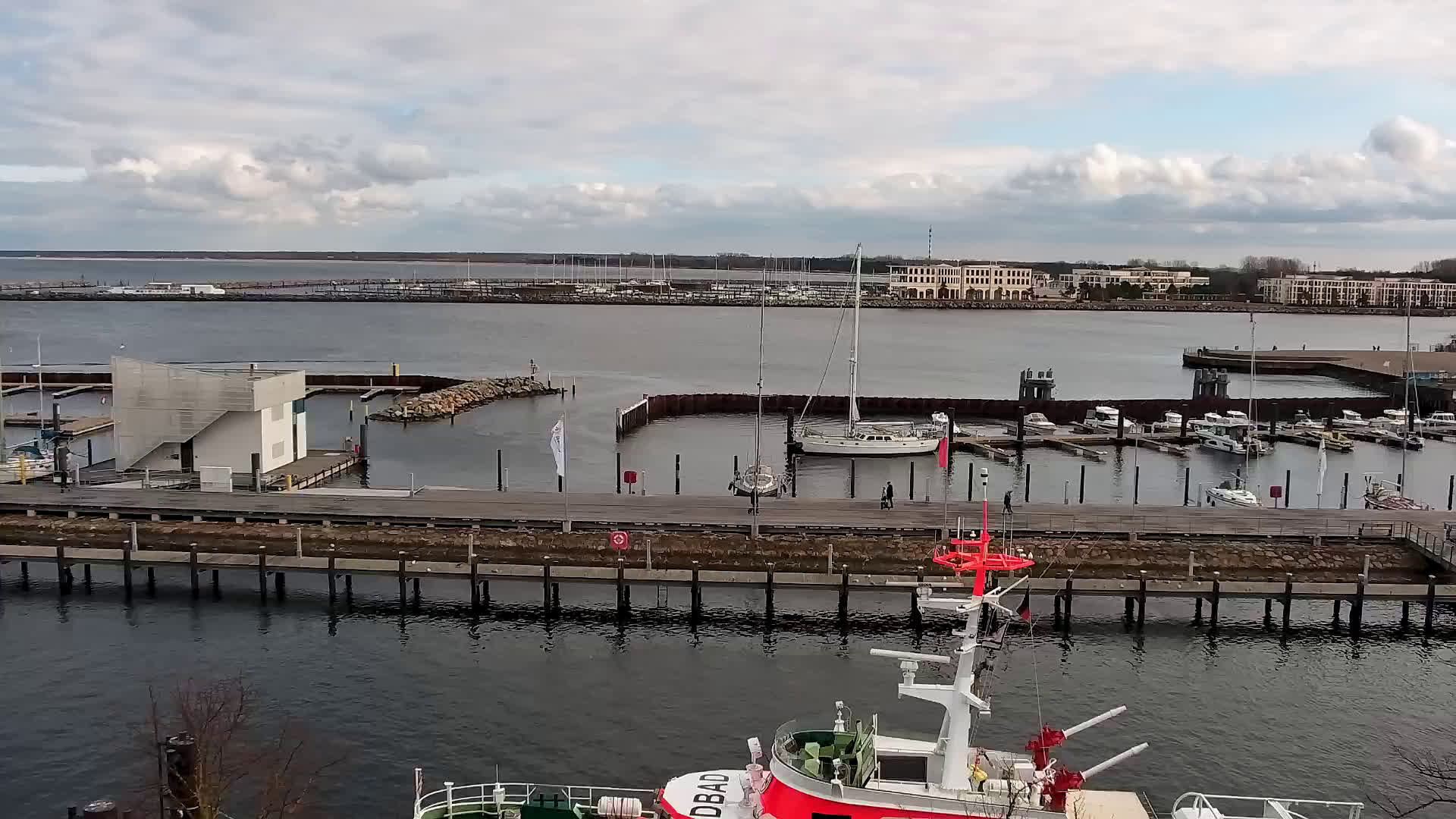 Warnemünde, Deutschland - 7.3 km von Admannshagen: Alter Strom Warnemünde - HD Streaming Kamera am 'Alten Strom' in Warnemünde bei Rostock an der Ostsee. Im Hintergrund die belebte Hafeneinfahrt des Rostocker Fähr- und Containerhafens. Fähren nach Dänemark, Schweden und alle Baltischen Anreihnerstaaten kommern regelmäßig vorbei. Im Vordergrund der 'Alte Strom' von Warnemünde mit seinen kleinen Fischerbooten, Fischmarkt auf der Mittelmole und der Probmenade. Als Bonus gibts Livewetter in Echtzeit im Videoplayer. Powered by Livespotting.tv in HD Qualität.