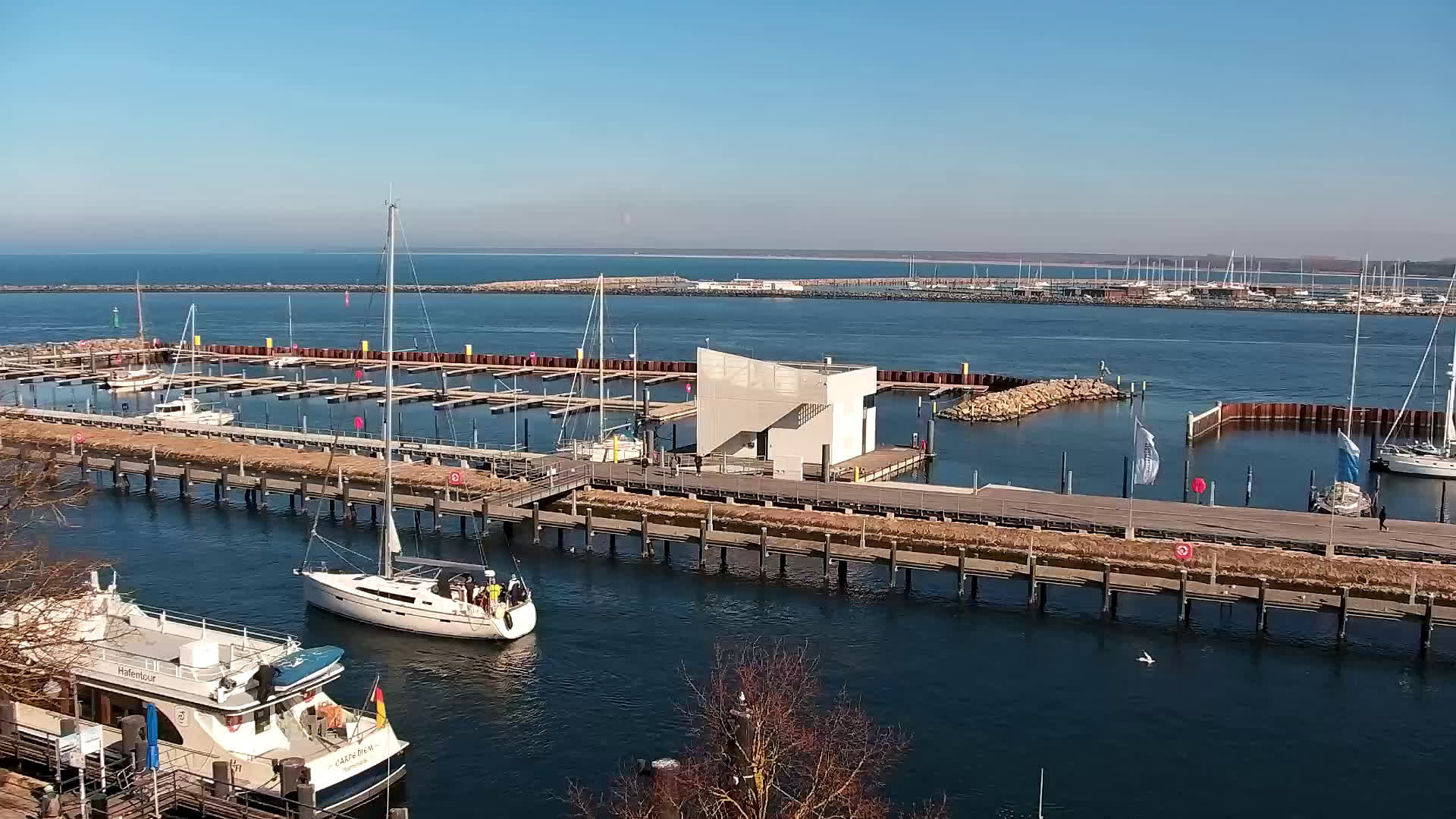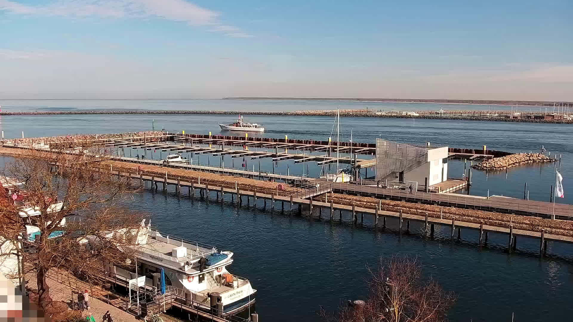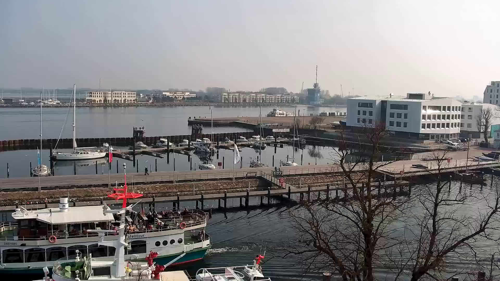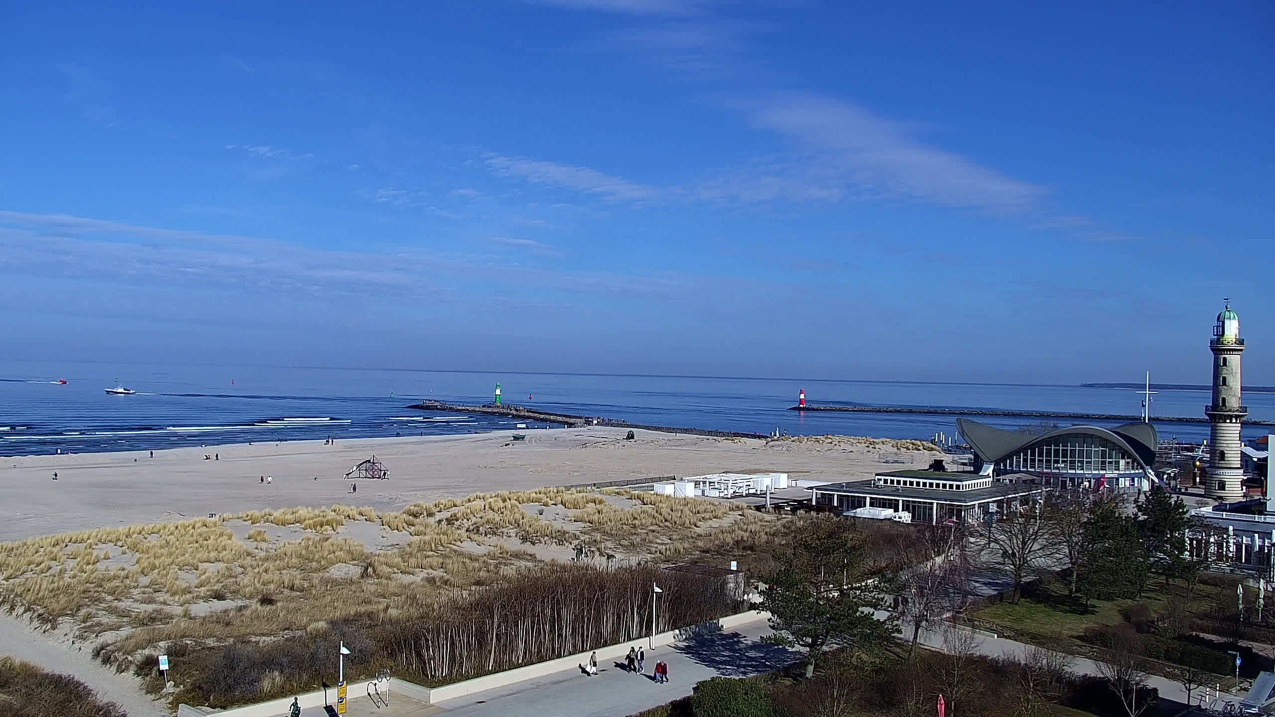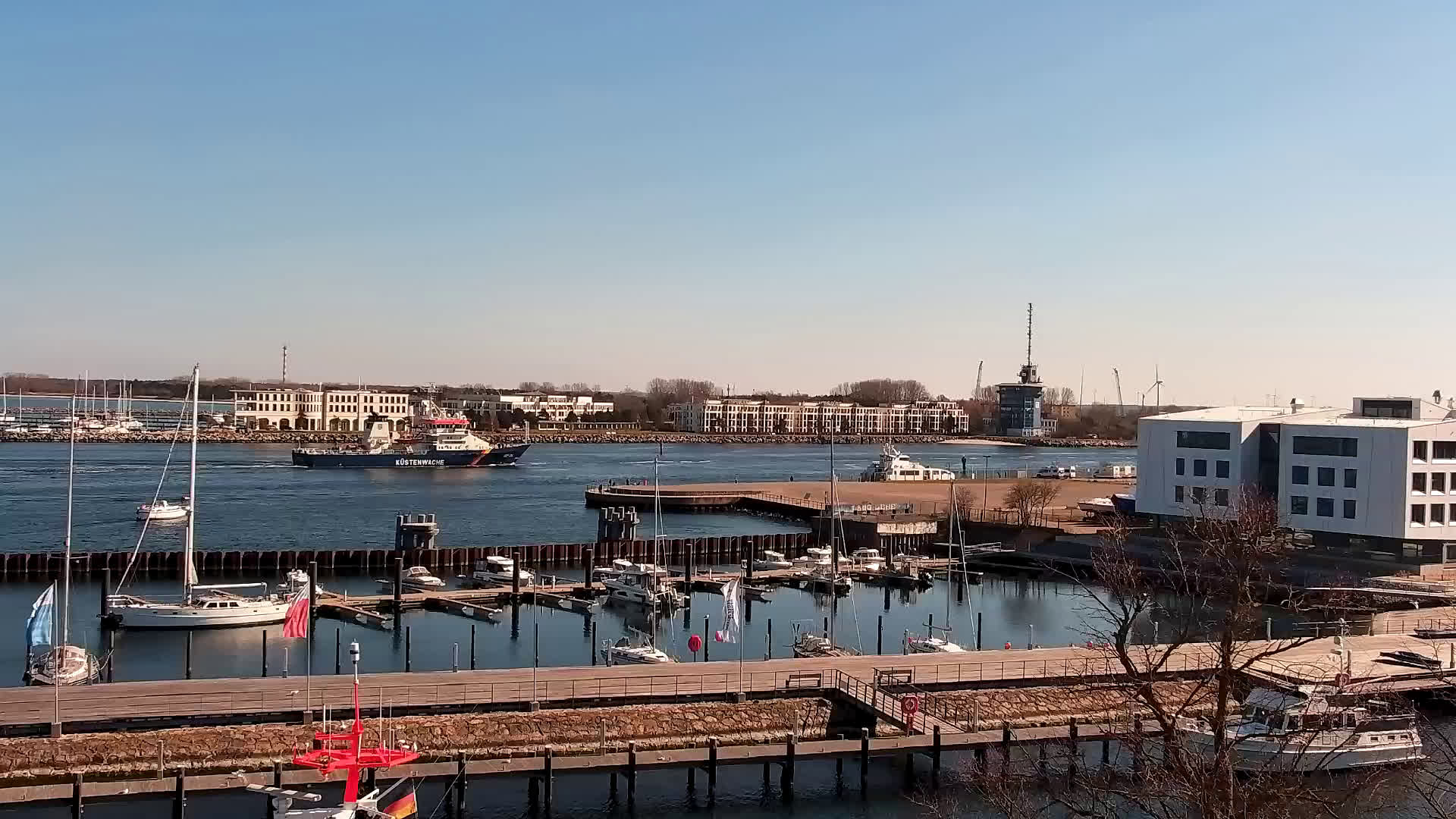 Warnemünde, Deutschland - 7.3 km von Admannshagen: Blick auf den Alten Strom von Warnemünde - Livecam mit Blick auf den Alten Strom und die Hafeneinfahrt von Warnemünde.