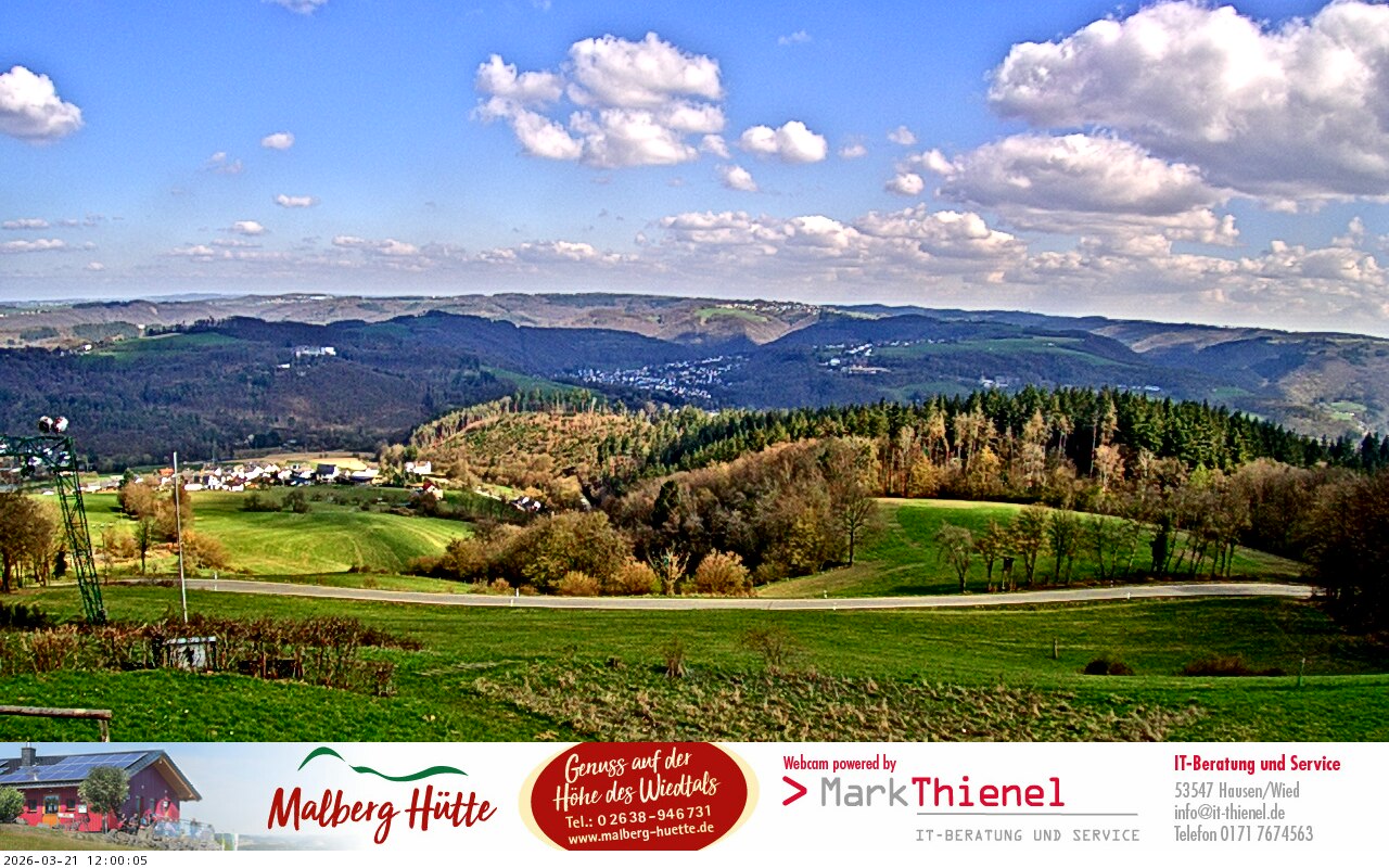 Rengsdorf, Deutschland - 16.4 km von Ahlbach: Rengsdorfer Land - Die WebCam zeigt einen Blick in das Rheintal vom Kurort Rengsdorf bei Neuwied/Koblenz in Deutschland.