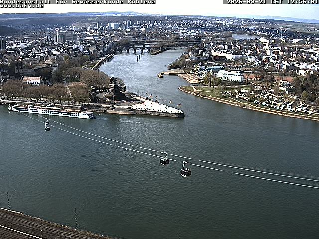 Koblenz, Deutschland - 32.5 km von Ahlbach: Deutsches Eck - Moselmündung - Webcam der Bundesanstalt für Gewässerkunde mit Blick von der Festung Ehrenbreitstein in Koblenz auf das Deutsche Eck, der Mündung der Mosel in den Rhein. Aktualisierung alle 10 Minuten.