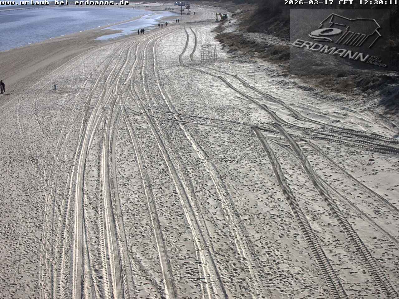 Heringsdorf (Usedom), Deutschland - 3.4 km von Ahlbeck: Blick von der Seebrücke - Blick von der Seebrücke Heringsdorf auf den Strand in Richtung Seebad Bansin.