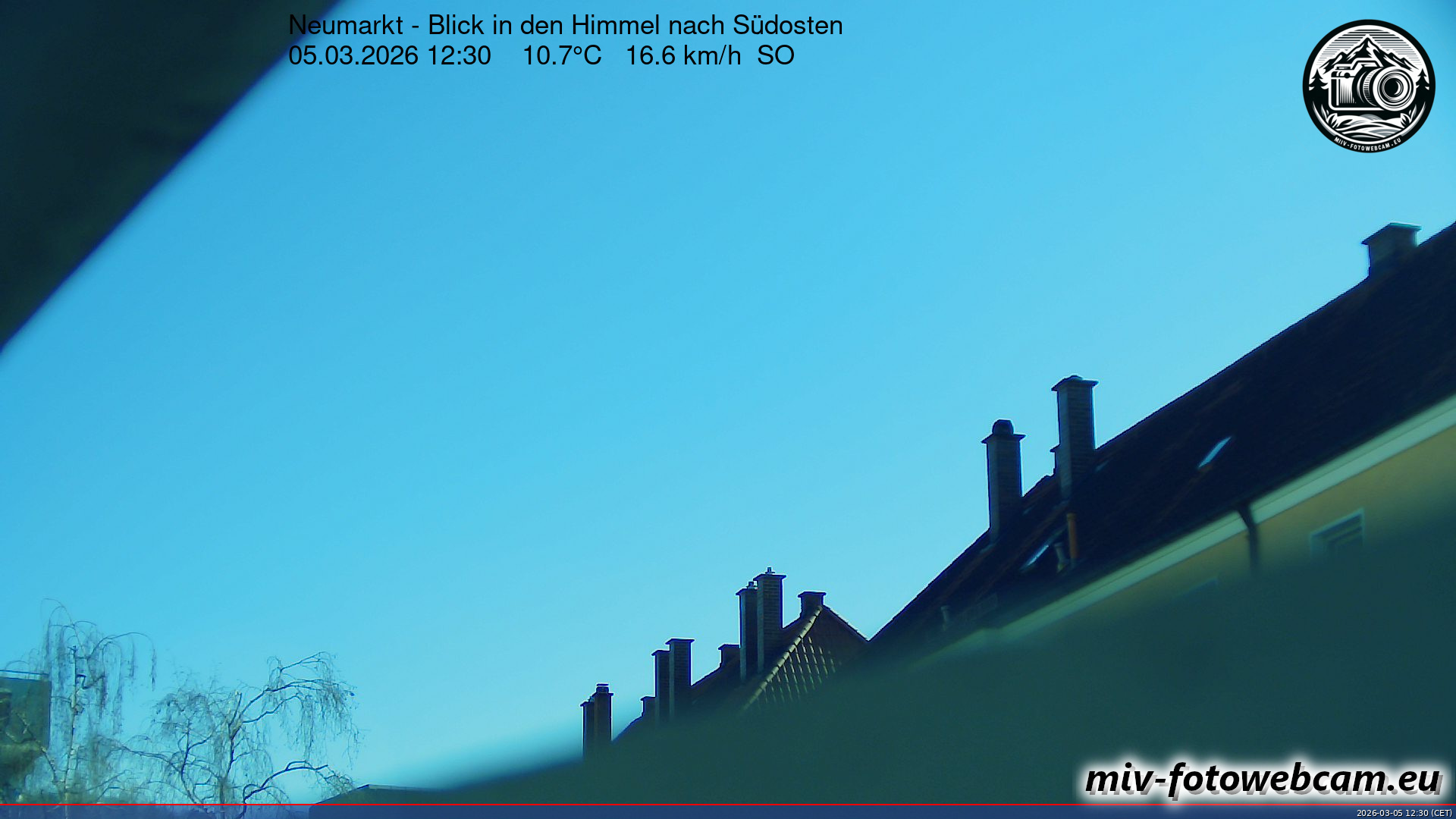 Neumarkt i.d.OPf., Deutschland - 27.9 km von Aichhof: Blick in den Himmel nach Südosten - Die Webcam zeigt den Himmel nach Südosten über Neumarkt. Somit kann man vom schönen blauen Himmel bis Abenddämmerung und atemberaubenden Gewitteralles sehen!