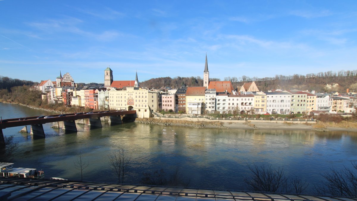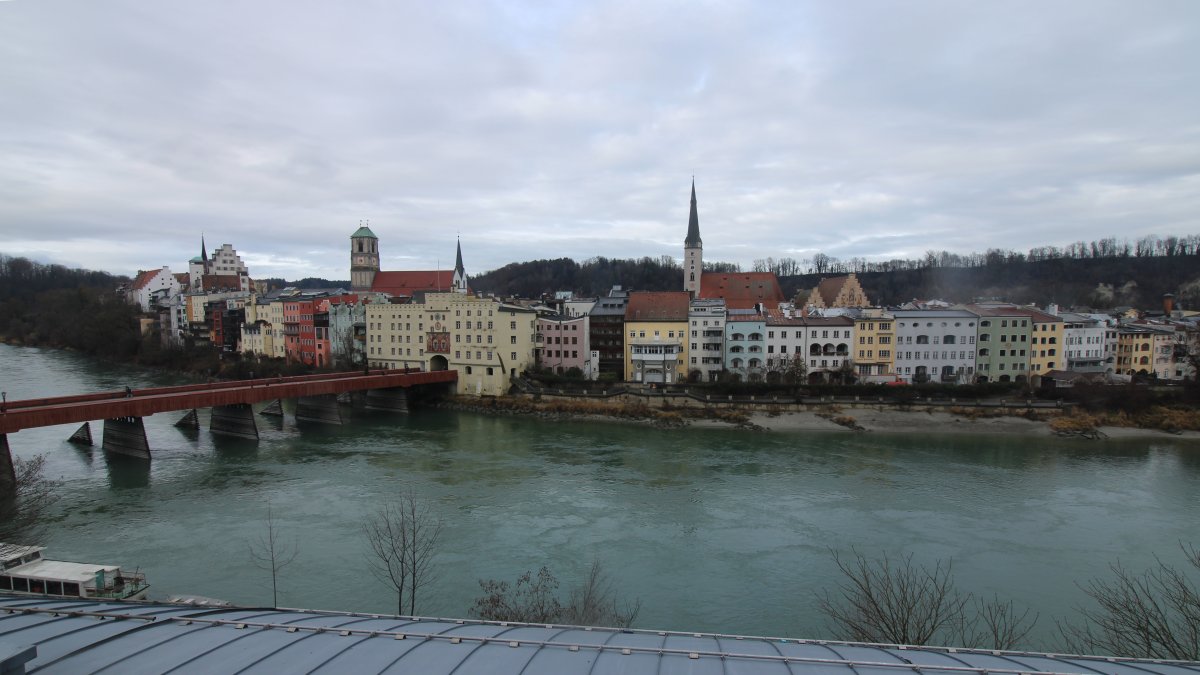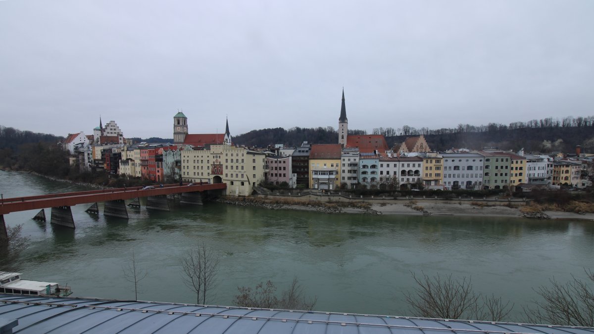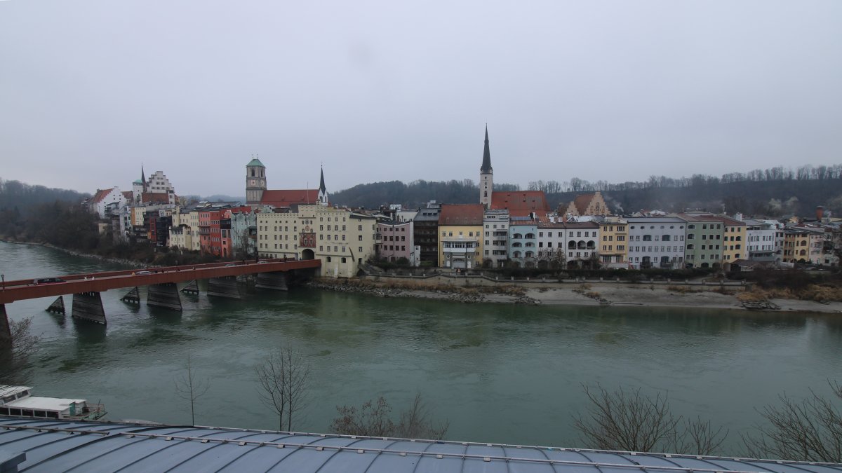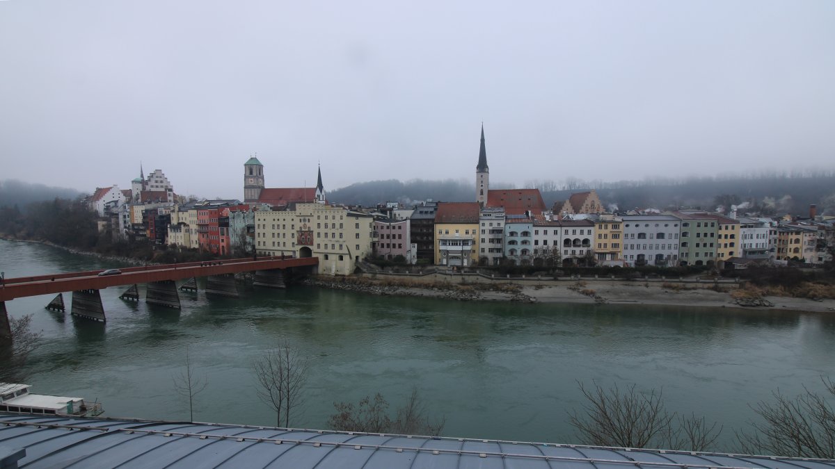 Altenmarkt a. d. Alz, Deutschland - 33.7 km von Albaching: Auberg-CAM - Blick über das südostbayrische Voralpenland (rechts auf dem Berg - Stiftskirche Baumburg).