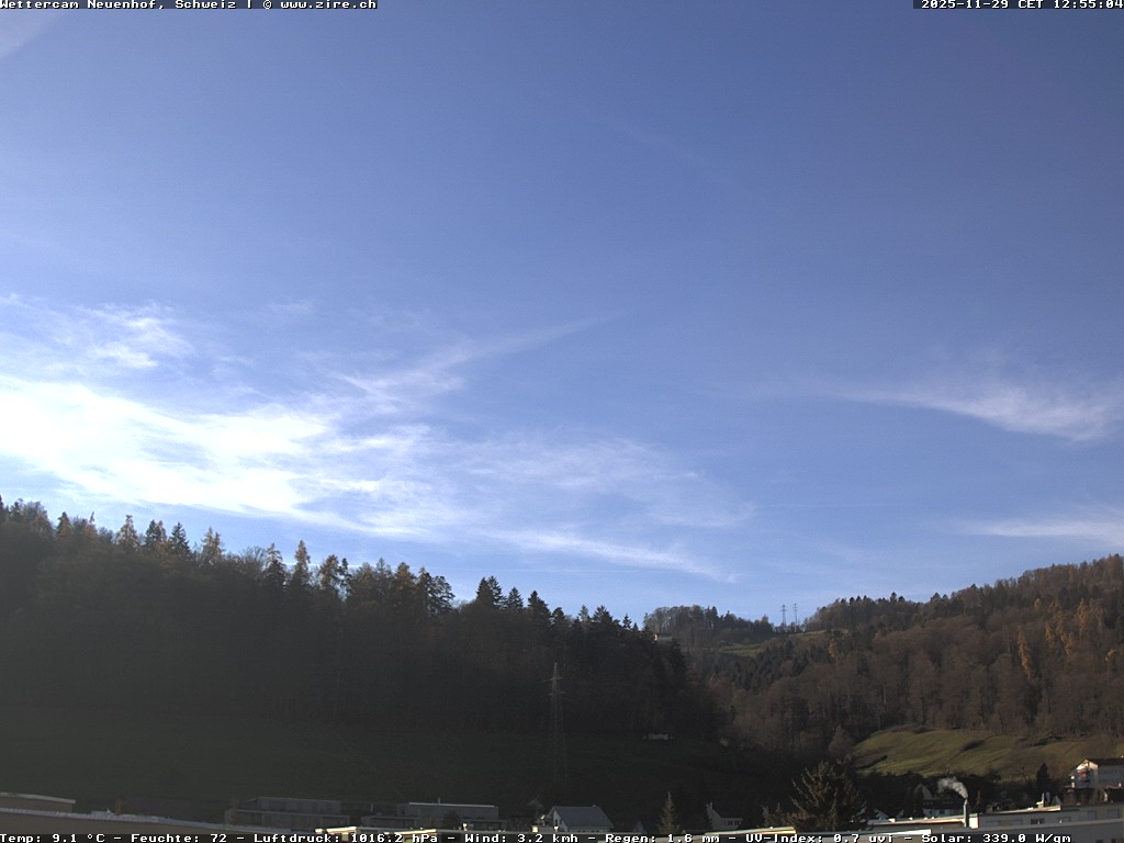 Neuenhof im Aargau, Schweiz - 22.3 km von Albert: Wettercam - Diese Webcam steht am Rande der Gemeinde Neuenhof. Die Blickrichtung ist Südwest. Der Berg im Bild ist der Chrüzliberg.