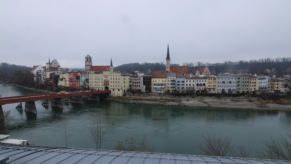 Altenmarkt a. d. Alz, Deutschland - 12.7 km von Albertaich: Auberg-CAM - Blick über das südostbayrische Voralpenland (rechts auf dem Berg - Stiftskirche Baumburg).