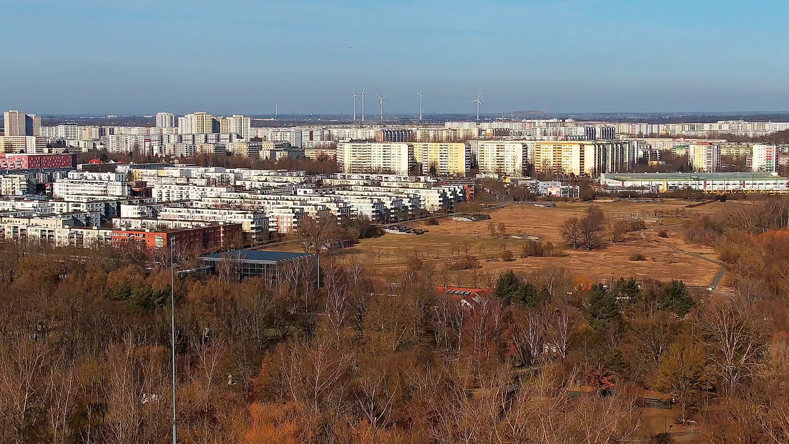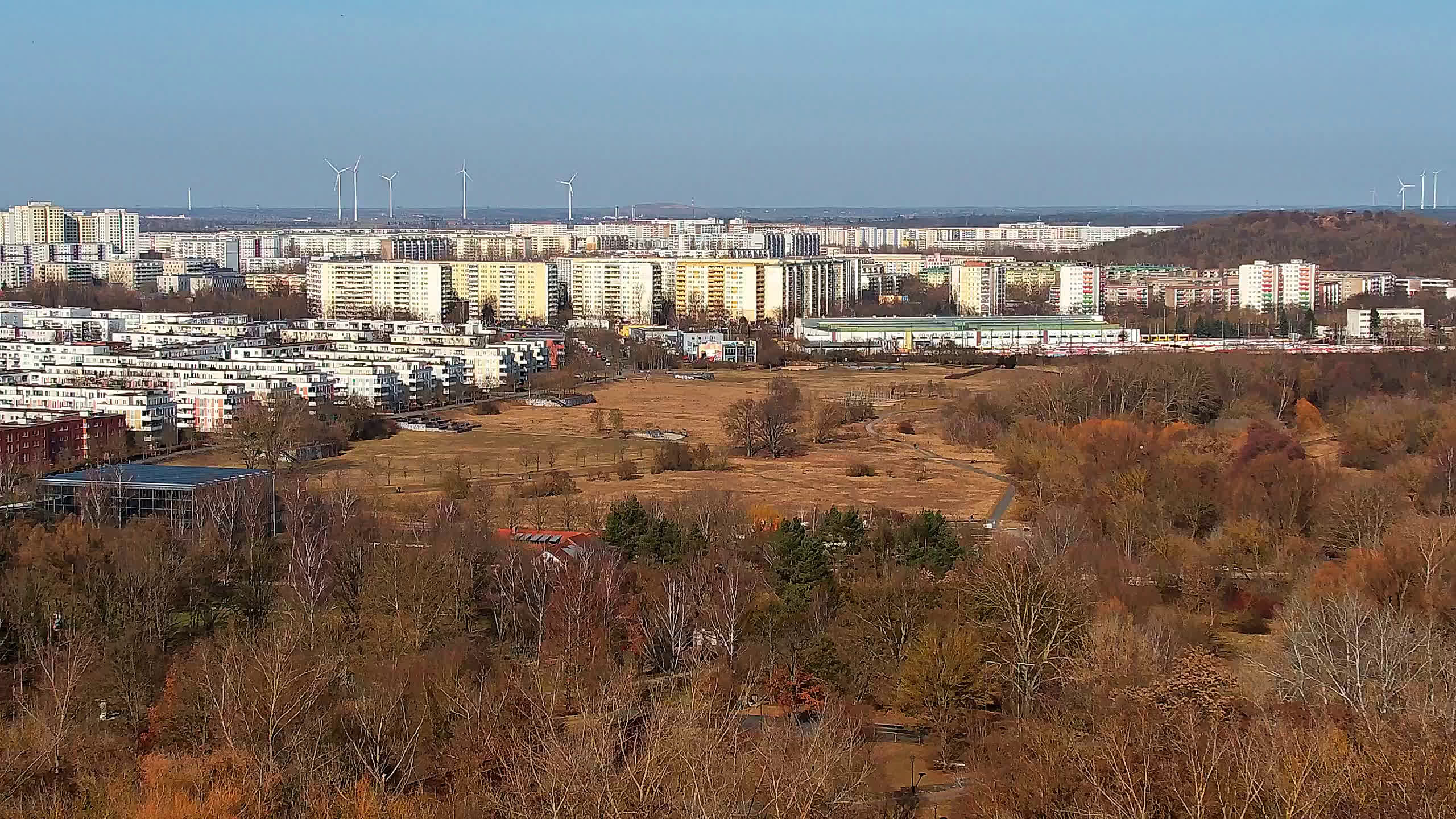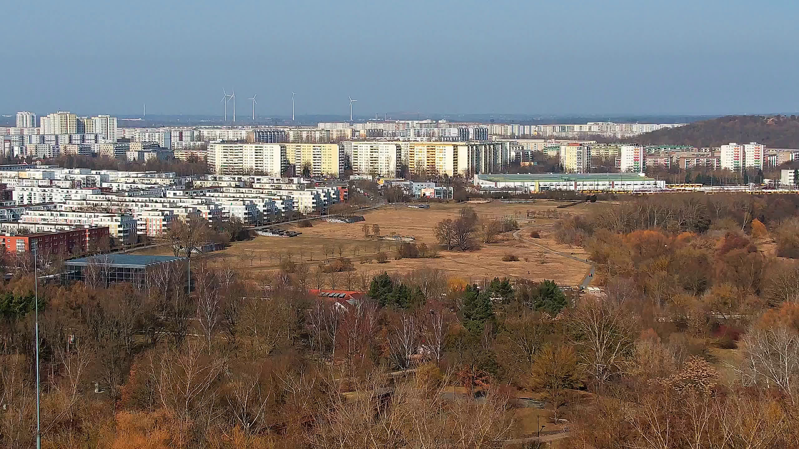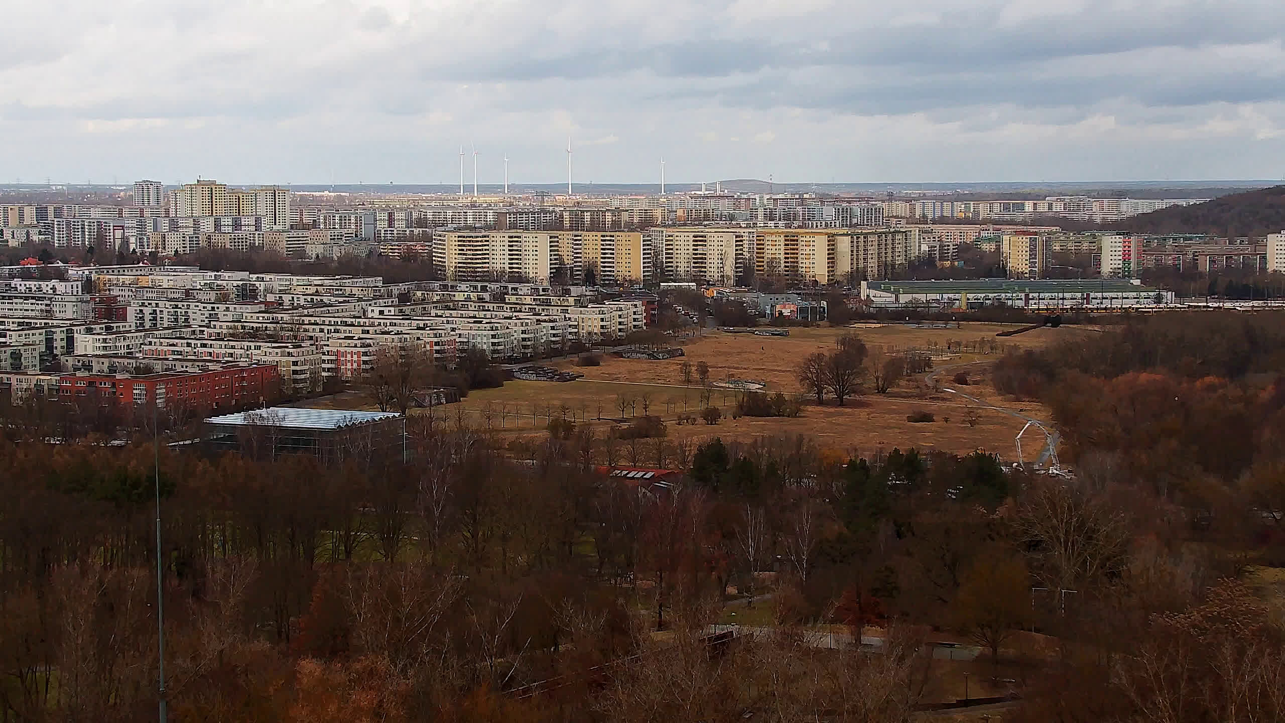 Berlin, Deutschland - 26.2 km von Albertshof: Tempelhofer Feld - Ein Blick über das Tempelhofer Feld in Berlin Kreuzberg aus einem gegenüber dem Park gelegenen Bürogebäude.