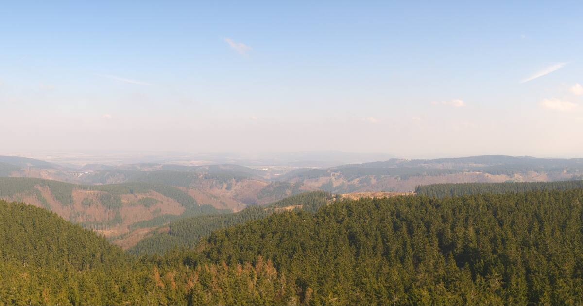 Frauenwald, Deutschland - 16.5 km von Albrechts: Blick vom Großen Riesenhaupt - Blick auf das Fraubachtal und den den westlichen Teil von Frauenwald Richtung Bergbadteiche.