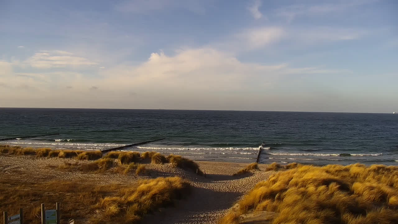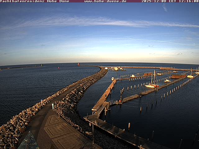 Warnemünde, Deutschland - 27.8 km von Alt Katwin: Alter Strom Warnemünde - HD Streaming Kamera am 'Alten Strom' in Warnemünde bei Rostock an der Ostsee. Im Hintergrund die belebte Hafeneinfahrt des Rostocker Fähr- und Containerhafens. Fähren nach Dänemark, Schweden und alle Baltischen Anreihnerstaaten kommern regelmäßig vorbei. Im Vordergrund der 'Alte Strom' von Warnemünde mit seinen kleinen Fischerbooten, Fischmarkt auf der Mittelmole und der Probmenade. Als Bonus gibts Livewetter in Echtzeit im Videoplayer. Powered by Livespotting.tv in HD Qualität.