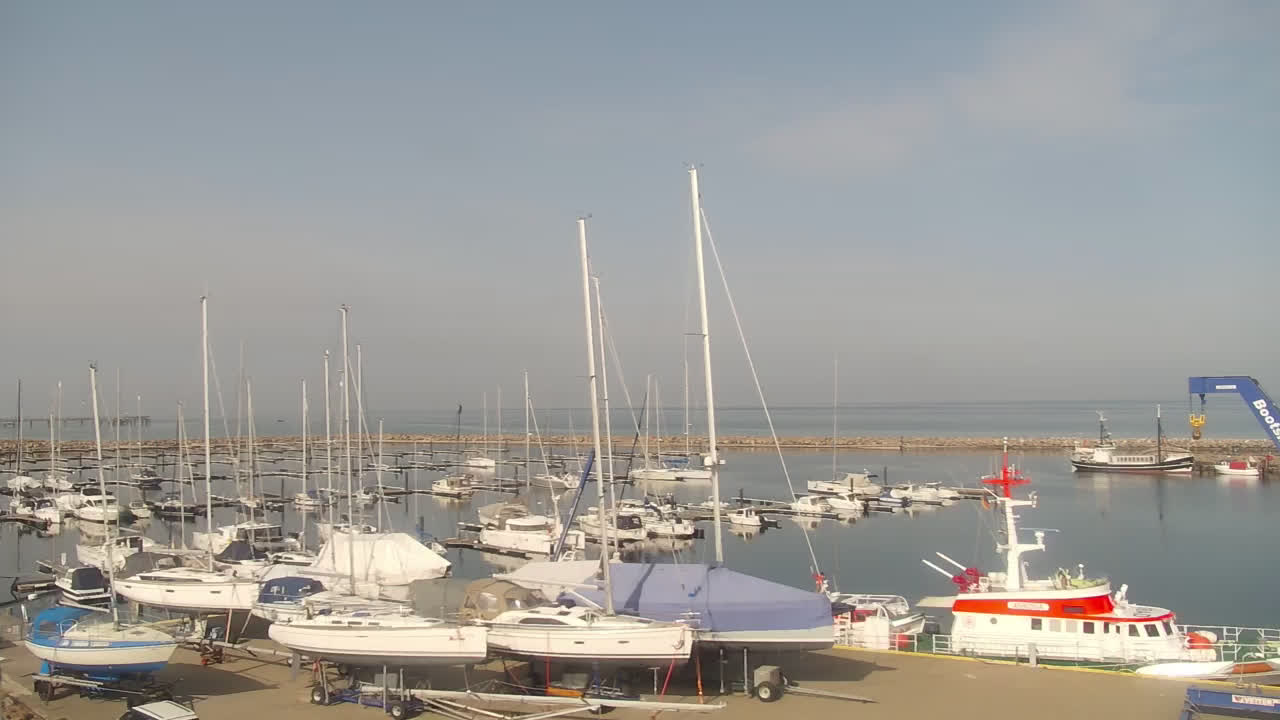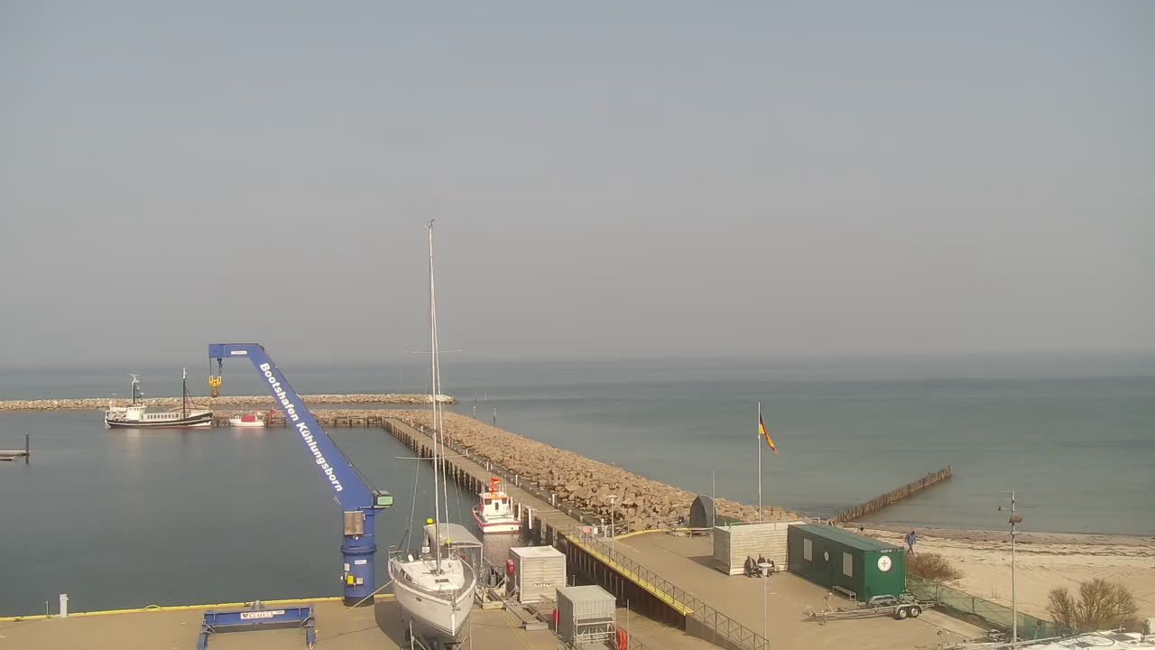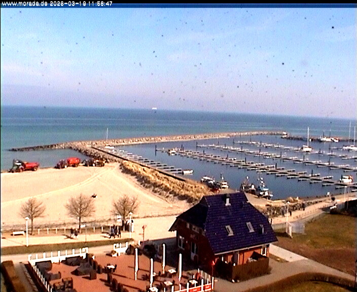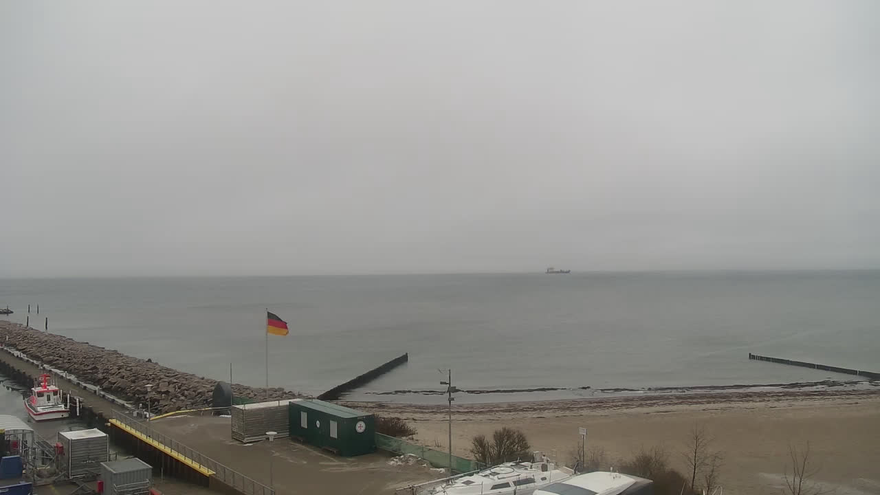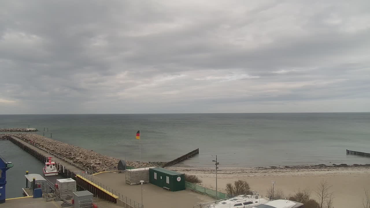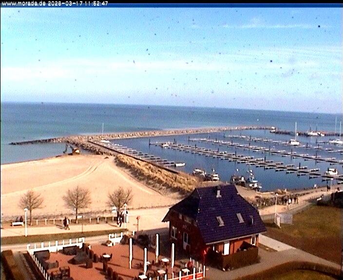 Timmendorf (Insel Poel), Deutschland - 23.9 km von Alt Poorstorf: Hafen & Strand - Die Kamera befindet sich auf der Nordmole in Timmendorf Strand und zeigt den Strand, den Hafen und den Leuchtturm von Timmendorf auf der schönen Insel Poel. Das Bild wird alle 5 Minuten aktuaalisiert.