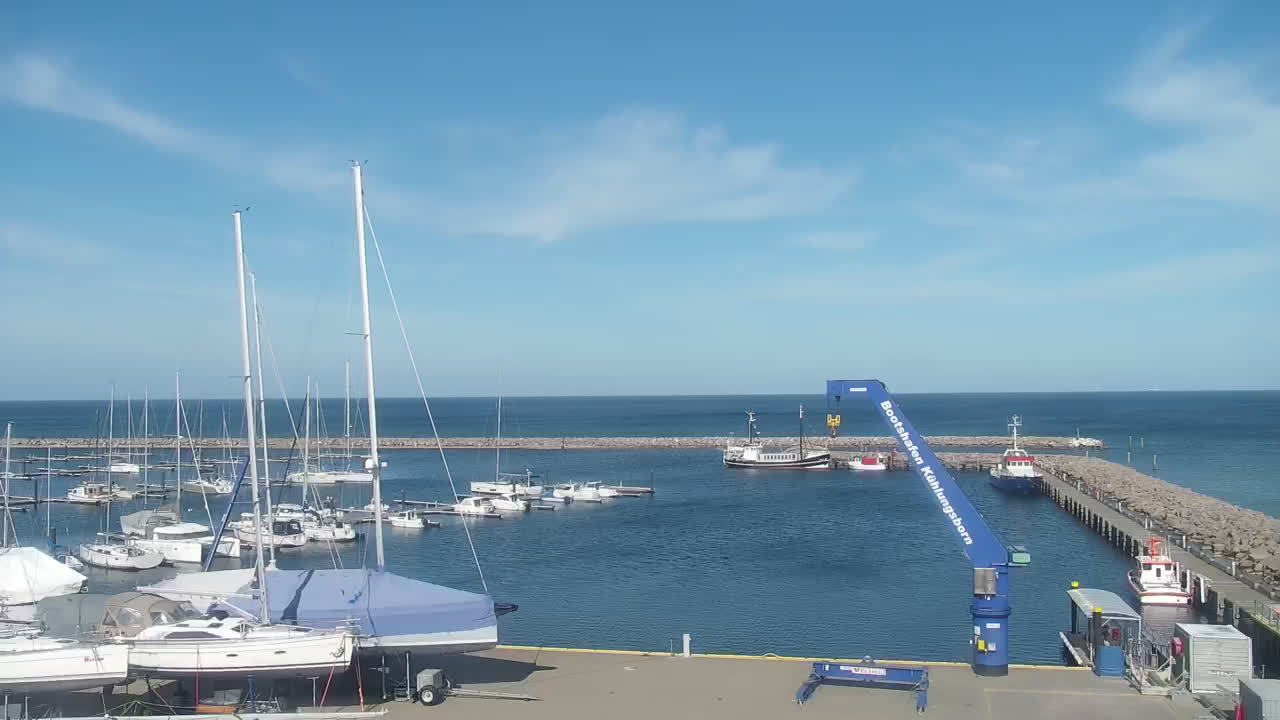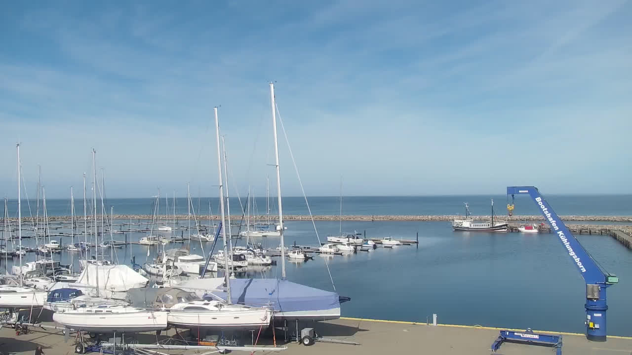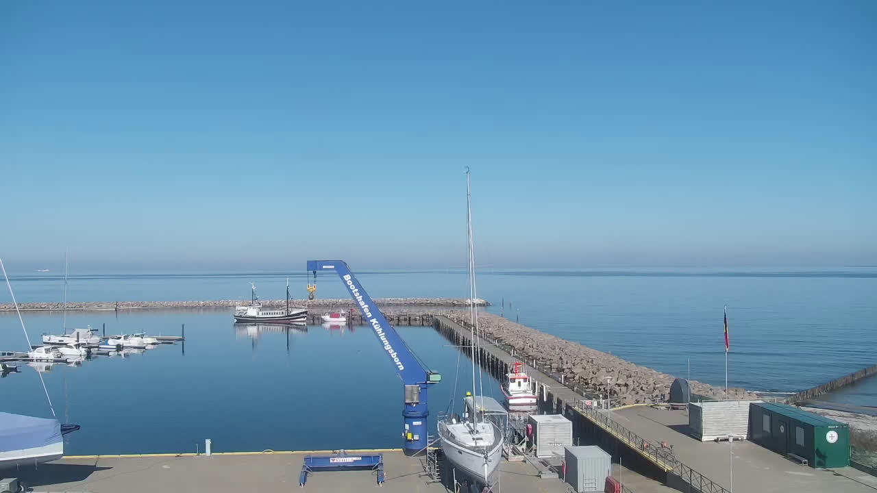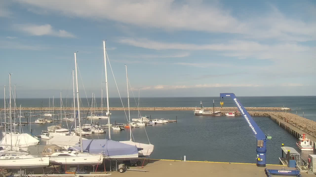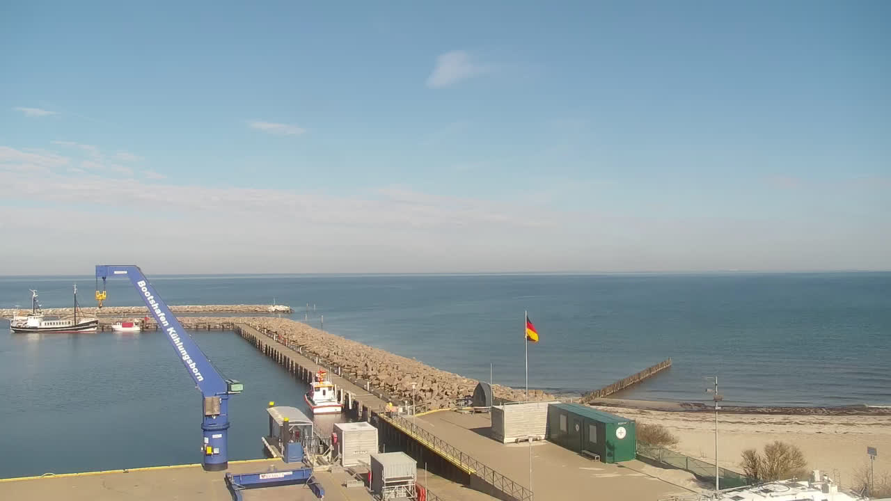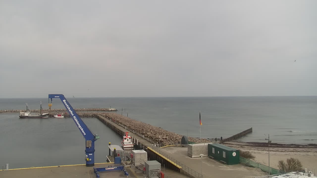 Timmendorf (Insel Poel), Deutschland - 23.9 km von Alt Poorstorf: Hafen & Strand - Die Kamera befindet sich auf der Nordmole in Timmendorf Strand und zeigt den Strand, den Hafen und den Leuchtturm von Timmendorf auf der schönen Insel Poel. Das Bild wird alle 5 Minuten aktuaalisiert.