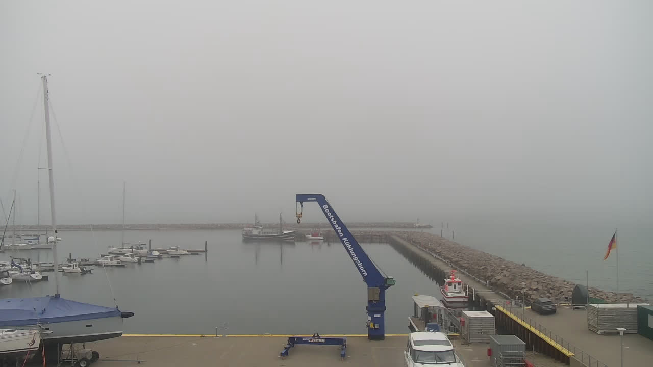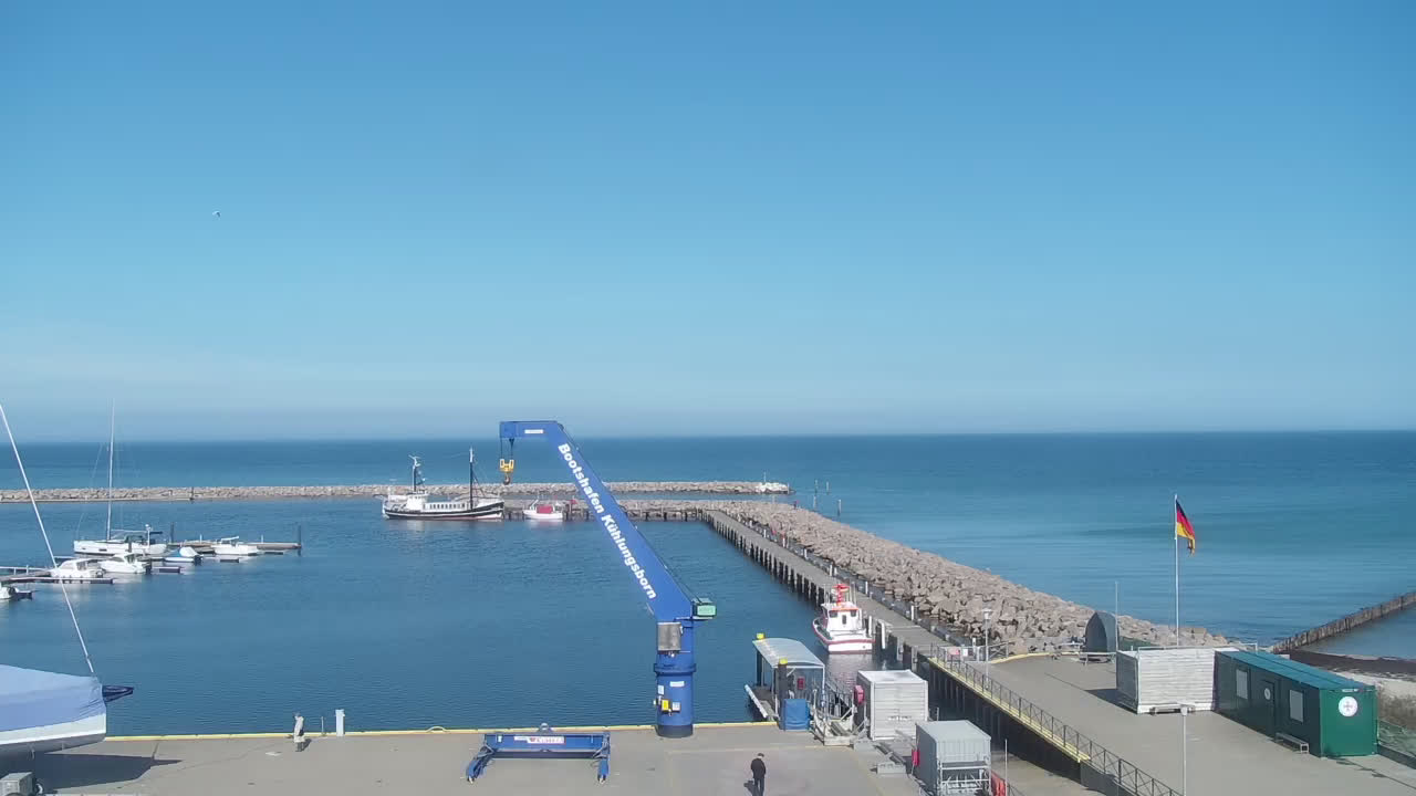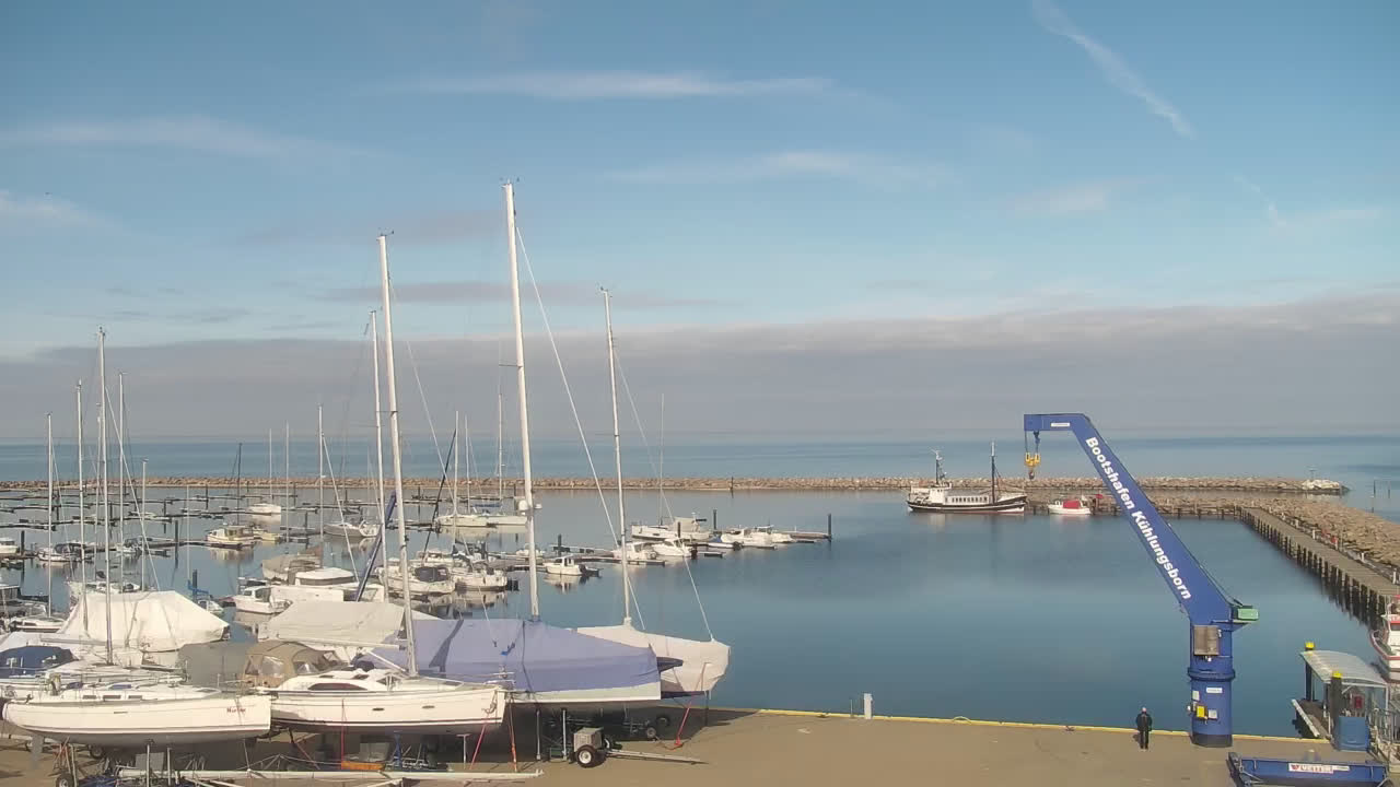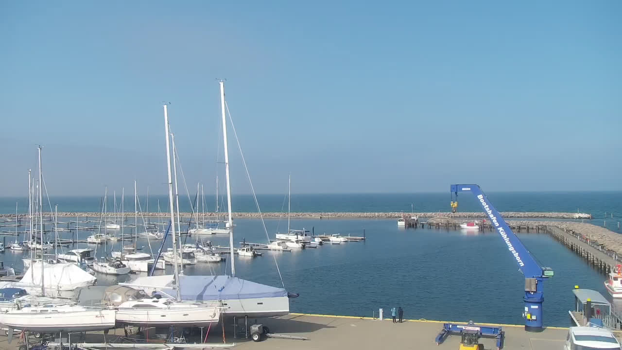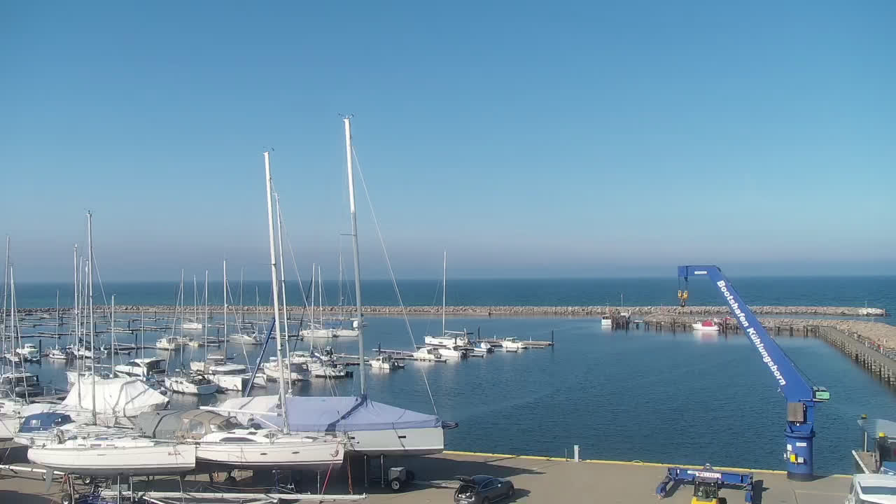 Timmendorf (Insel Poel), Deutschland - 23.9 km von Alt Poorstorf: Hafen & Strand - Die Kamera befindet sich auf der Nordmole in Timmendorf Strand und zeigt den Strand, den Hafen und den Leuchtturm von Timmendorf auf der schönen Insel Poel. Das Bild wird alle 5 Minuten aktuaalisiert.