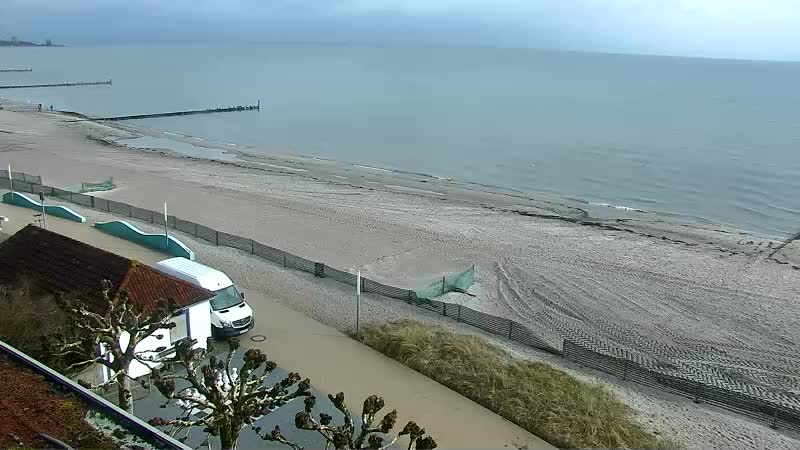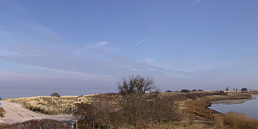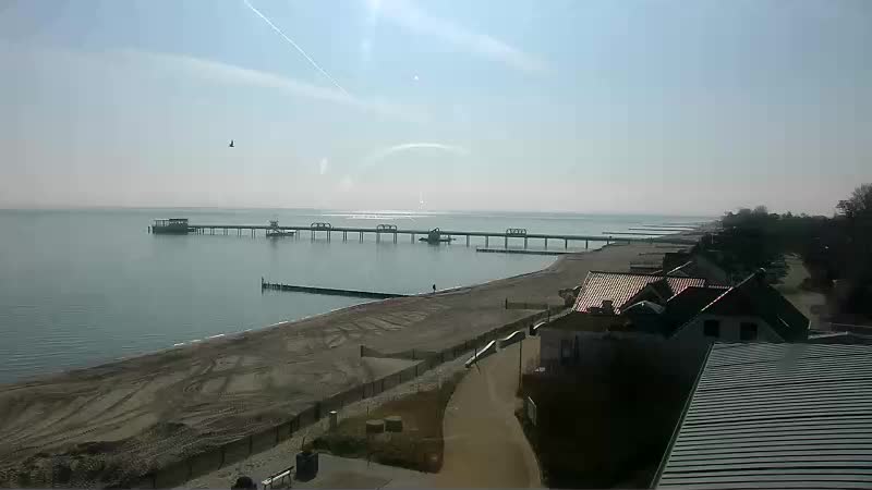 Heiligenhafen, Deutschland - 15.5 km von Alt Rathjensdorf: Panoramakamera Ferienhaus UTKIEK - Die Livecam befindet sich am 5-Sterne-Ferienhaus UTKIEK, dem neuen, barrierefreien Reethaus (138 qm) in exponierter Lage im Strand Resort Heiligenhafen. Unmittelbar an der Ostsee gelegen hat man von hier einen traumhaften Rundumblick auf die große Erlebnis-Seebrücke, dem neuen Highlight Heiligenhafens, auf Fehmarn mit der prägnanten Sundbrücke, auf das Naturschutzgebiet Graswarder mit seiner faszinierende Vogelwelt und den einzigartigen Villen sowie auf den beliebten 5-Sterne Marina Yachthafen mit seinem maritimen Flair.