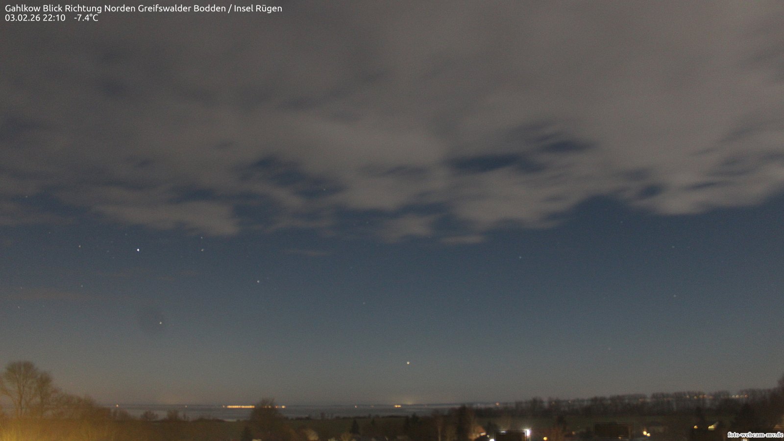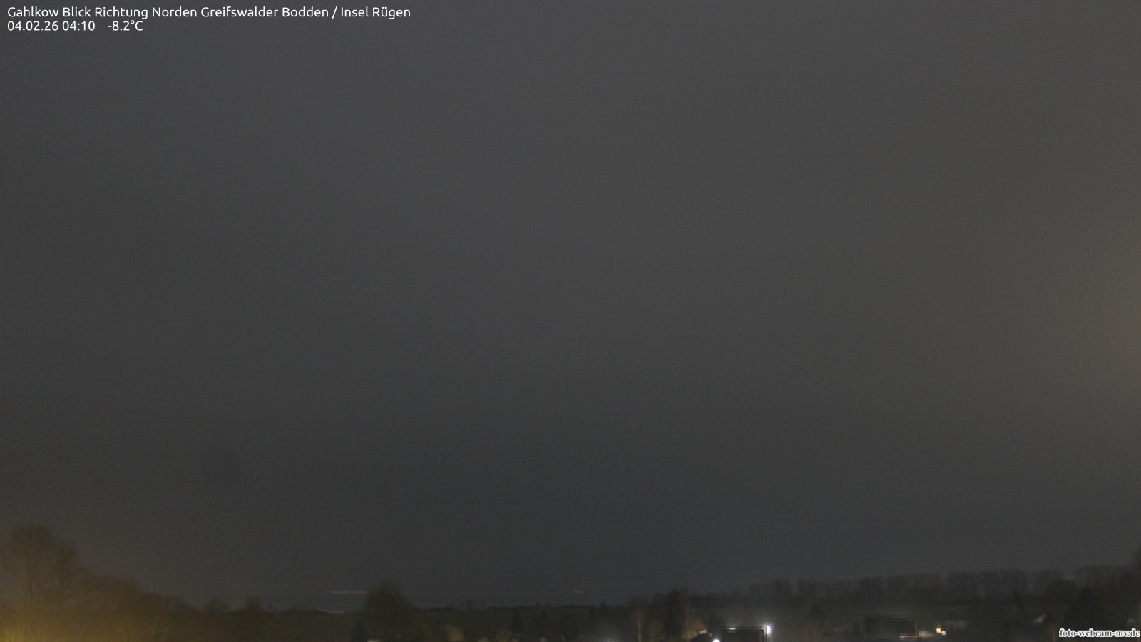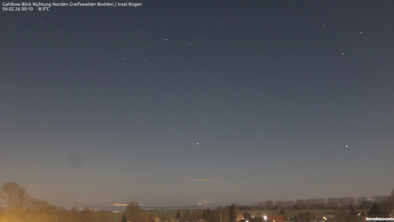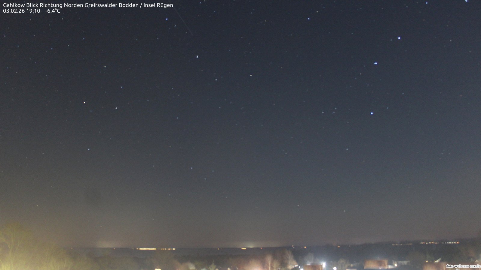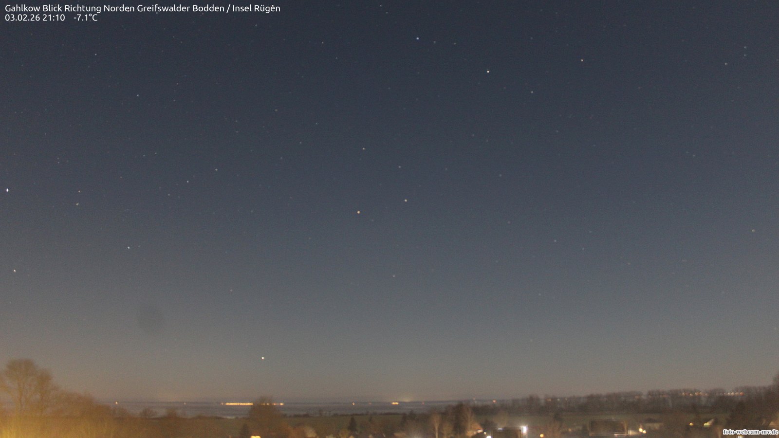 Usedom, Deutschland - 21.8 km von Alt Teterin: Blick Richtung Peenestrom - Die Webcam befindet sich in der Stadt Usedom. Angebracht ist sie in Höhe des Uhrwerkes der Marienkirche. Die Blickrichtung ist über den Dächern Usedoms hinweg in Richtung Peenestrom.