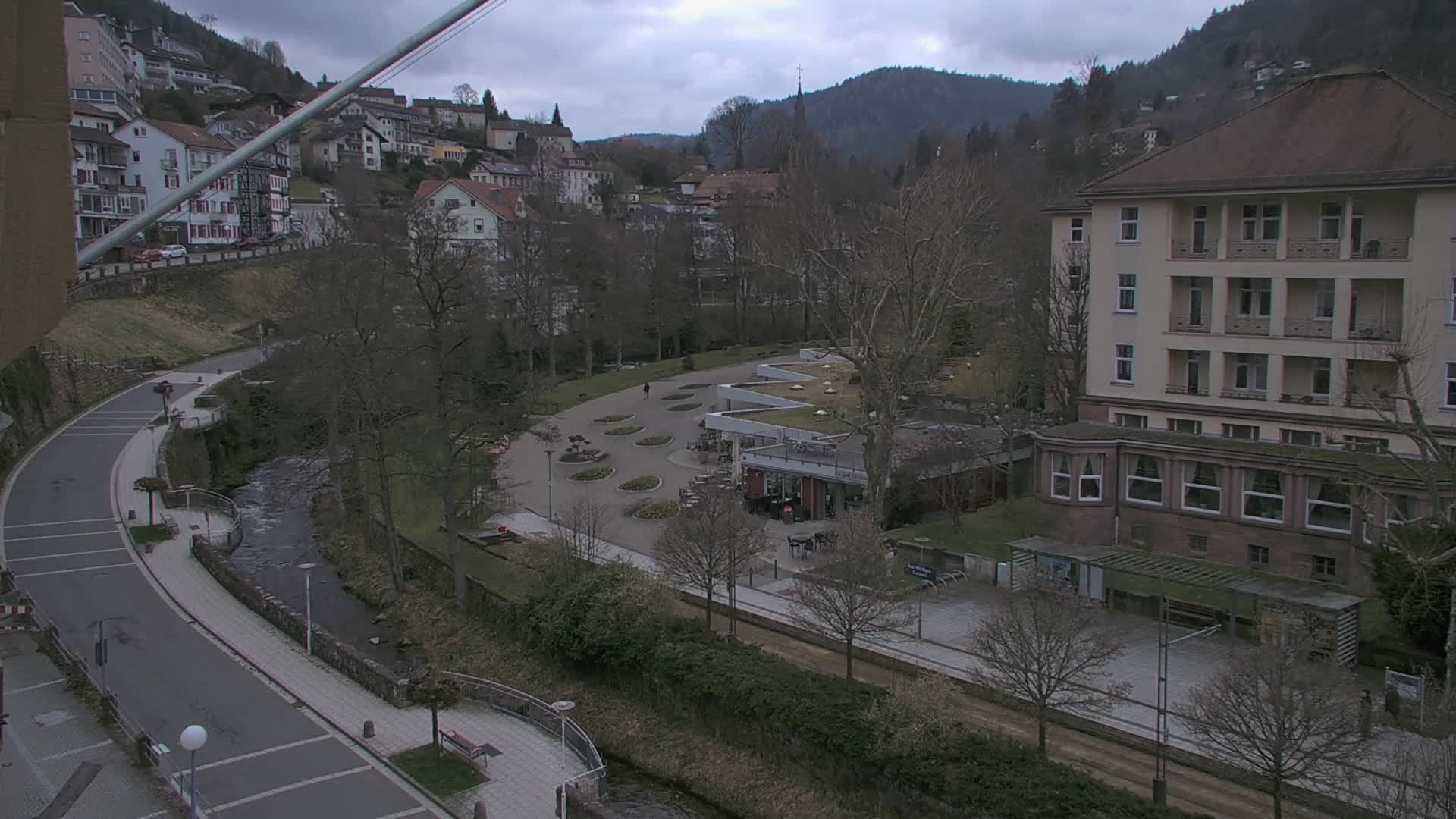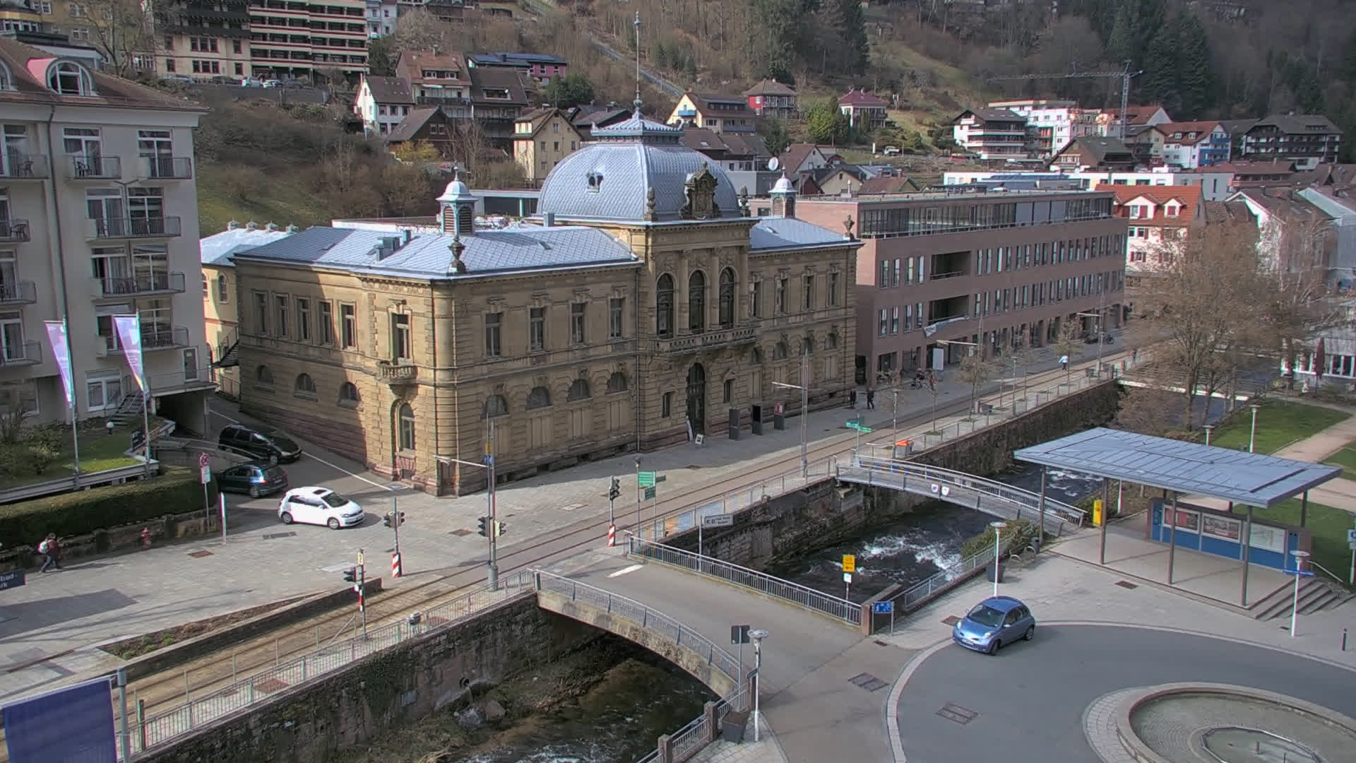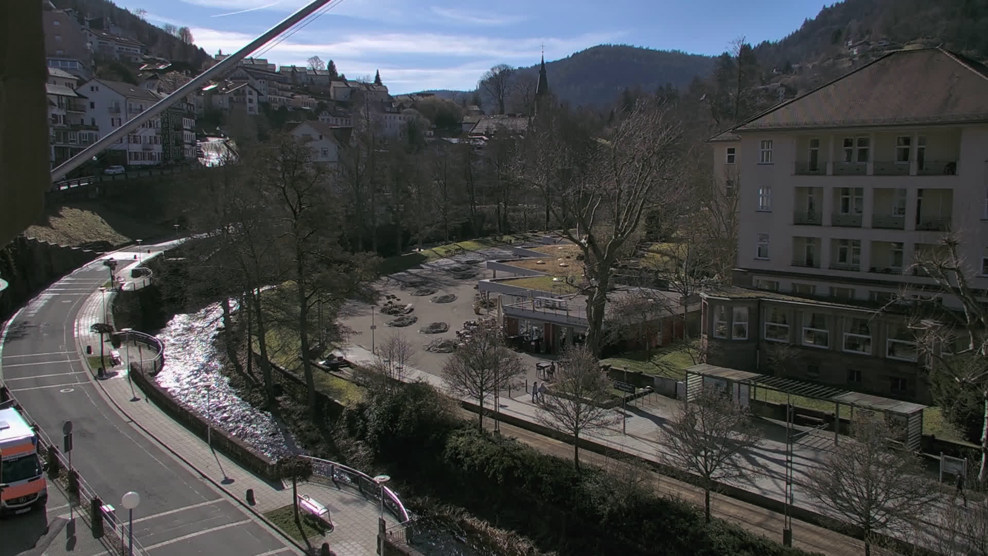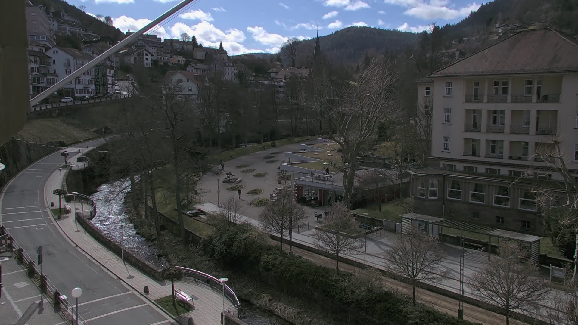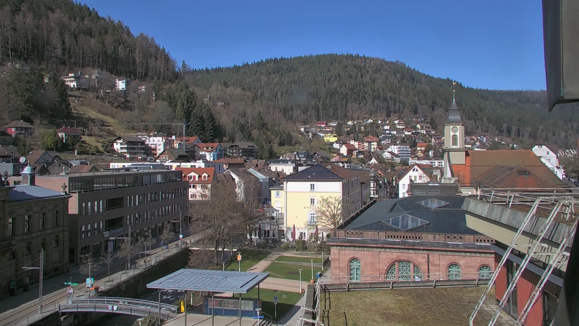 Bad Wildbad, Deutschland - 11.7 km von Altburg: Blick auf den Kurplatz - Live-Stream auf den Kurplatz und die S-Bahnhaltestelle (Flashstream oder Active-X).