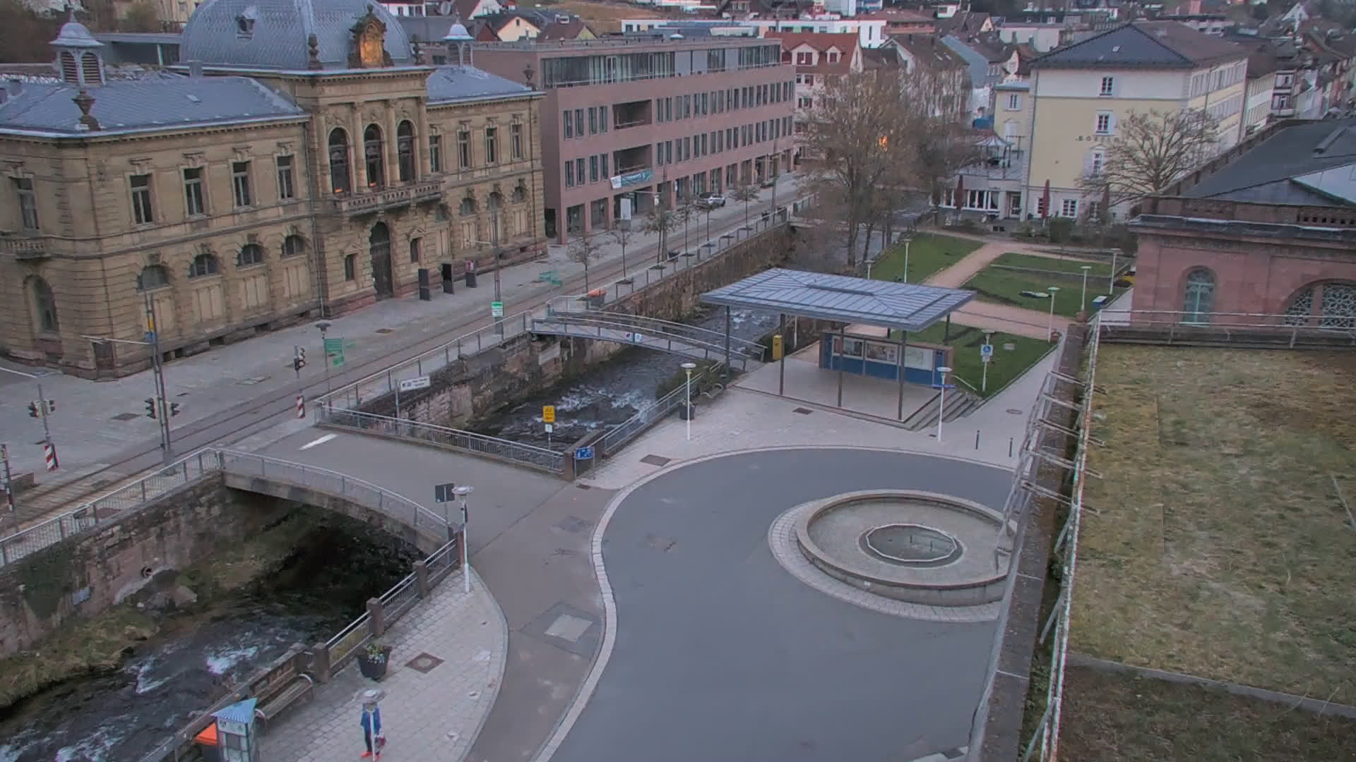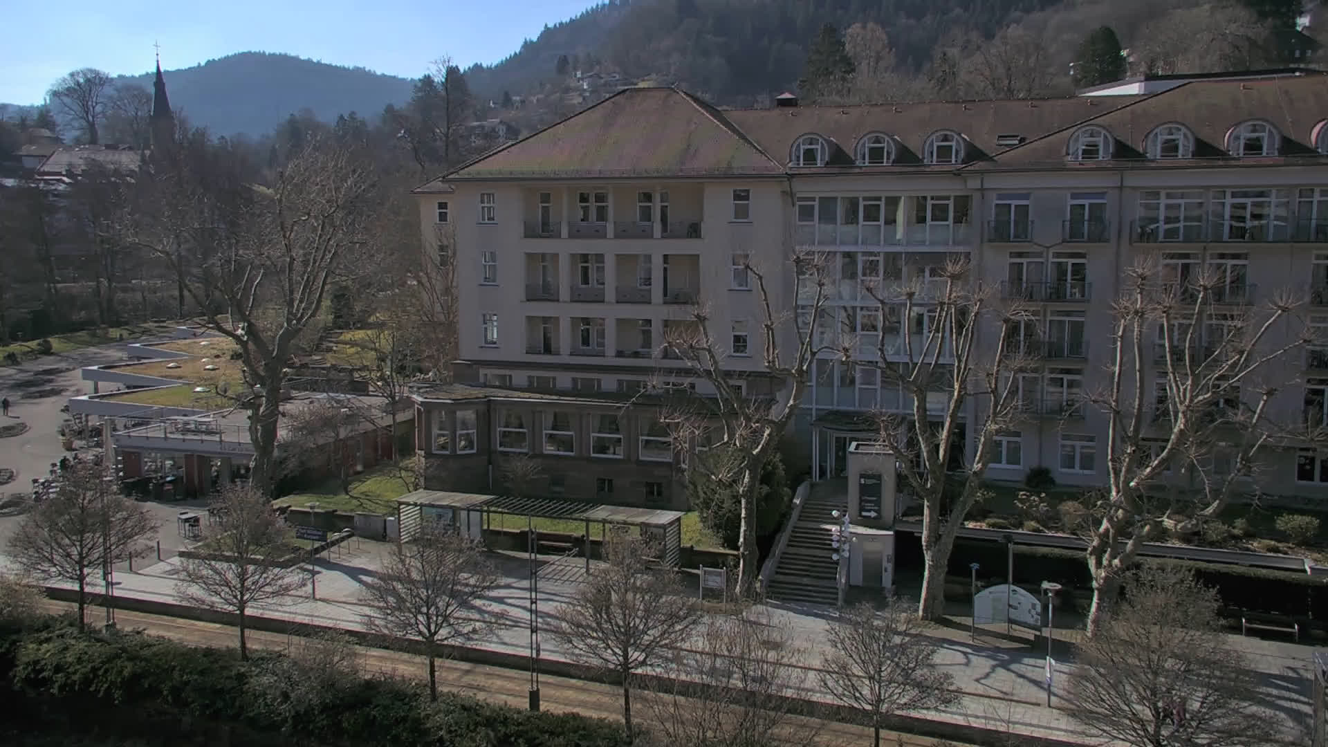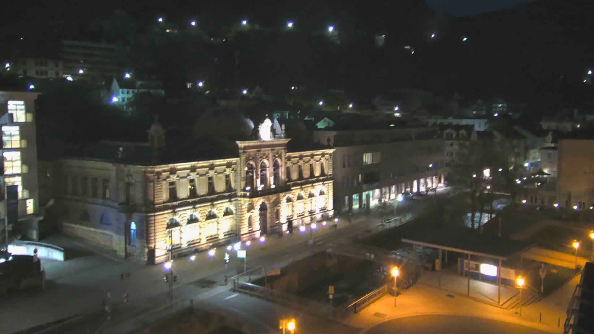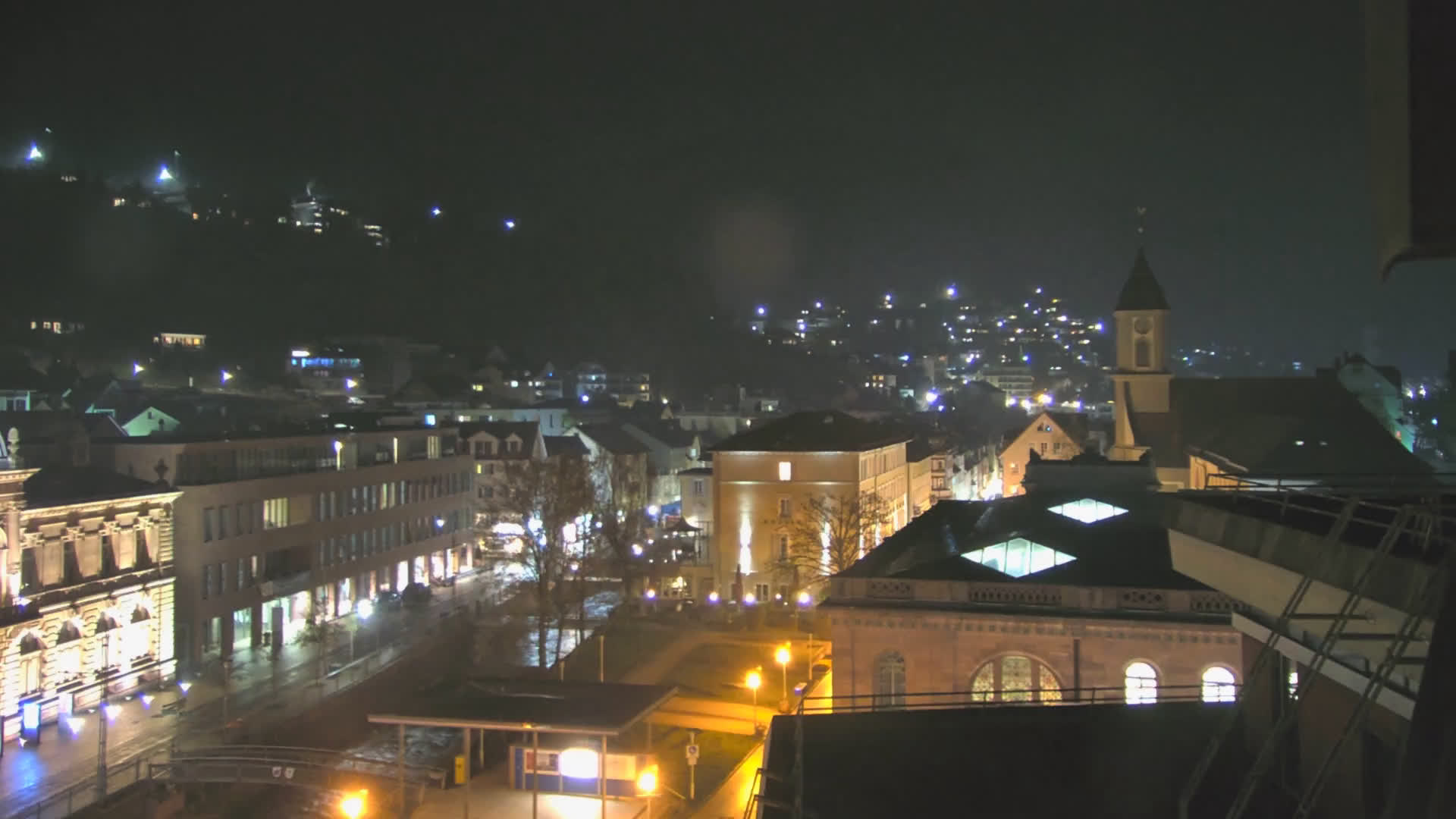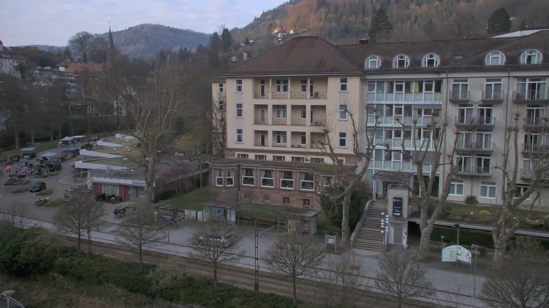 Bad Wildbad, Deutschland - 11.7 km von Altburg: Blick auf den Kurplatz - Live-Stream auf den Kurplatz und die S-Bahnhaltestelle (Flashstream oder Active-X).