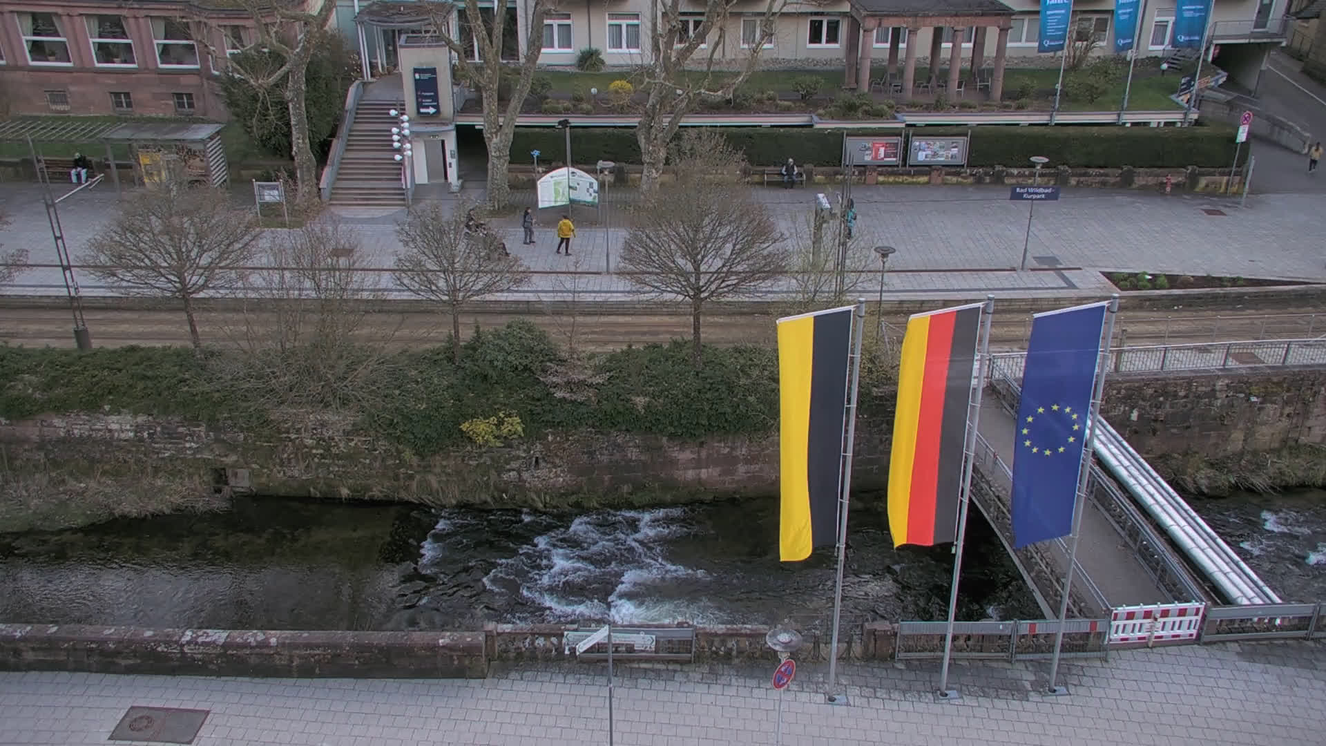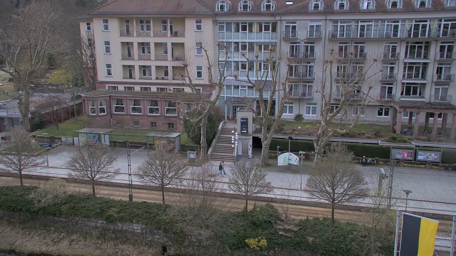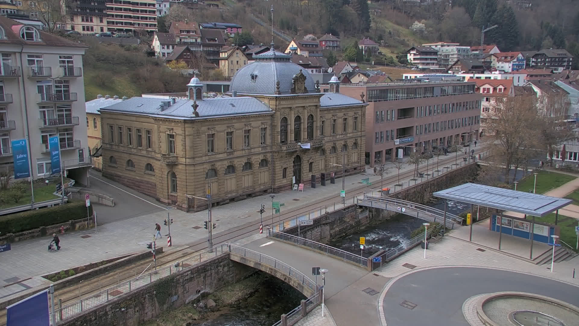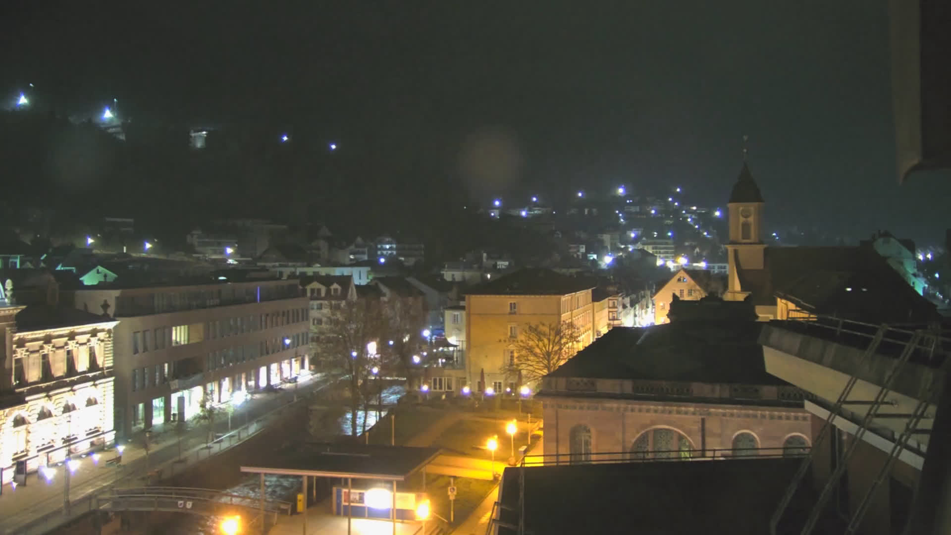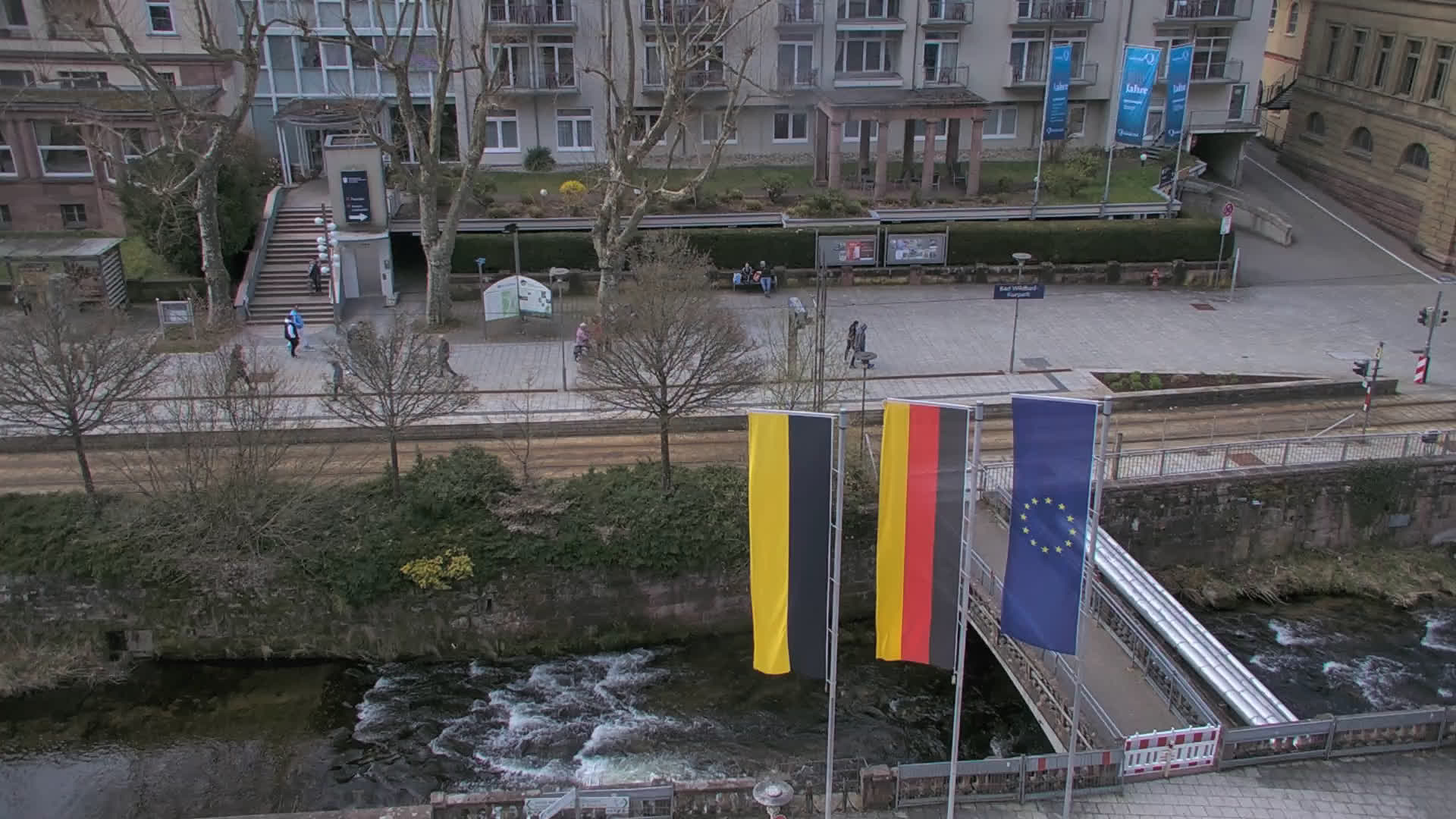 Bad Wildbad, Deutschland - 11.7 km von Altburg: Blick auf den Kurplatz - Live-Stream auf den Kurplatz und die S-Bahnhaltestelle (Flashstream oder Active-X).