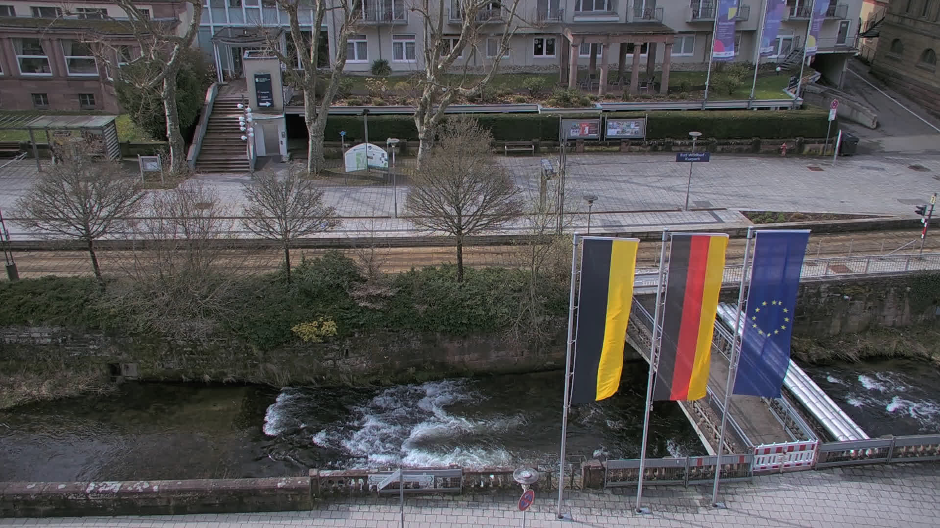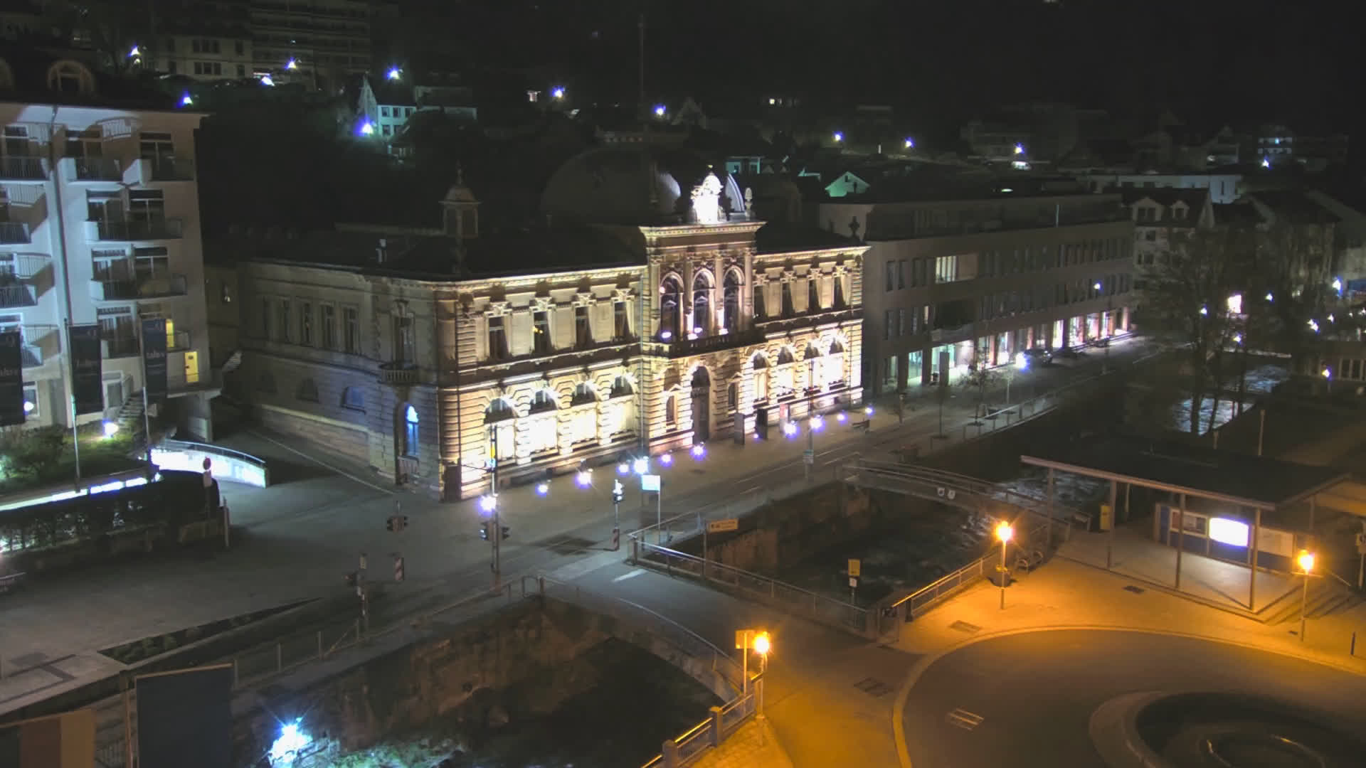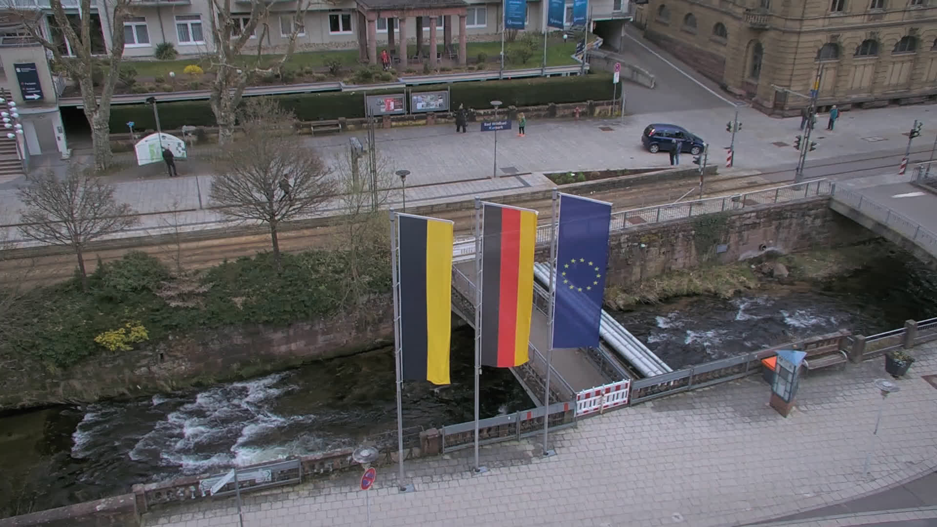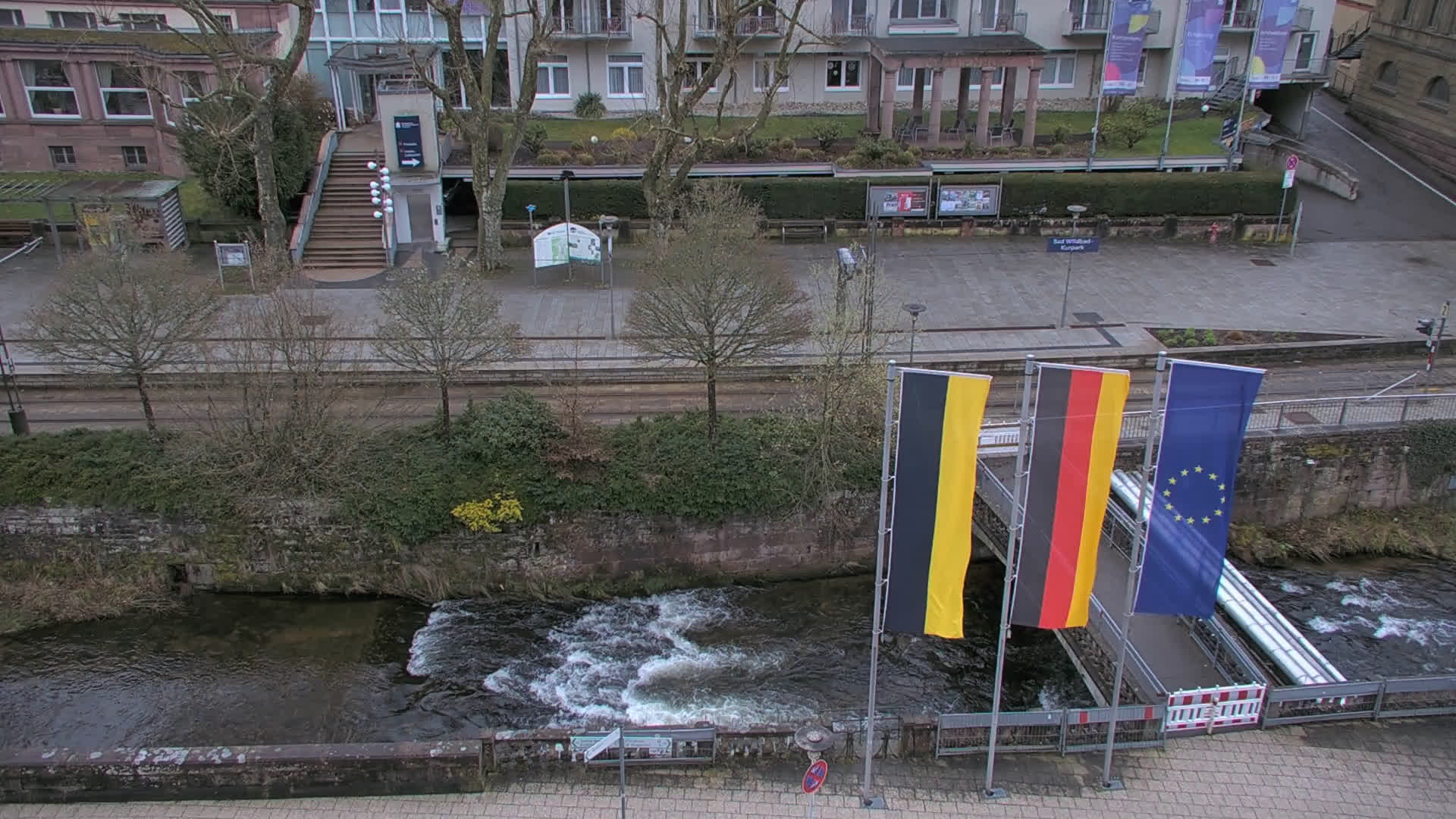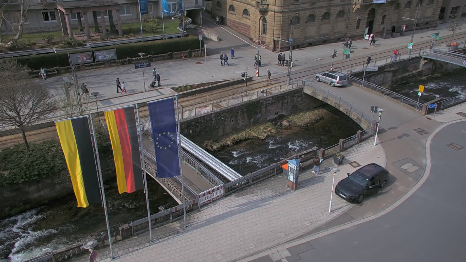 Bad Wildbad, Deutschland - 11.7 km von Altburg: Blick auf den Kurplatz - Live-Stream auf den Kurplatz und die S-Bahnhaltestelle (Flashstream oder Active-X).