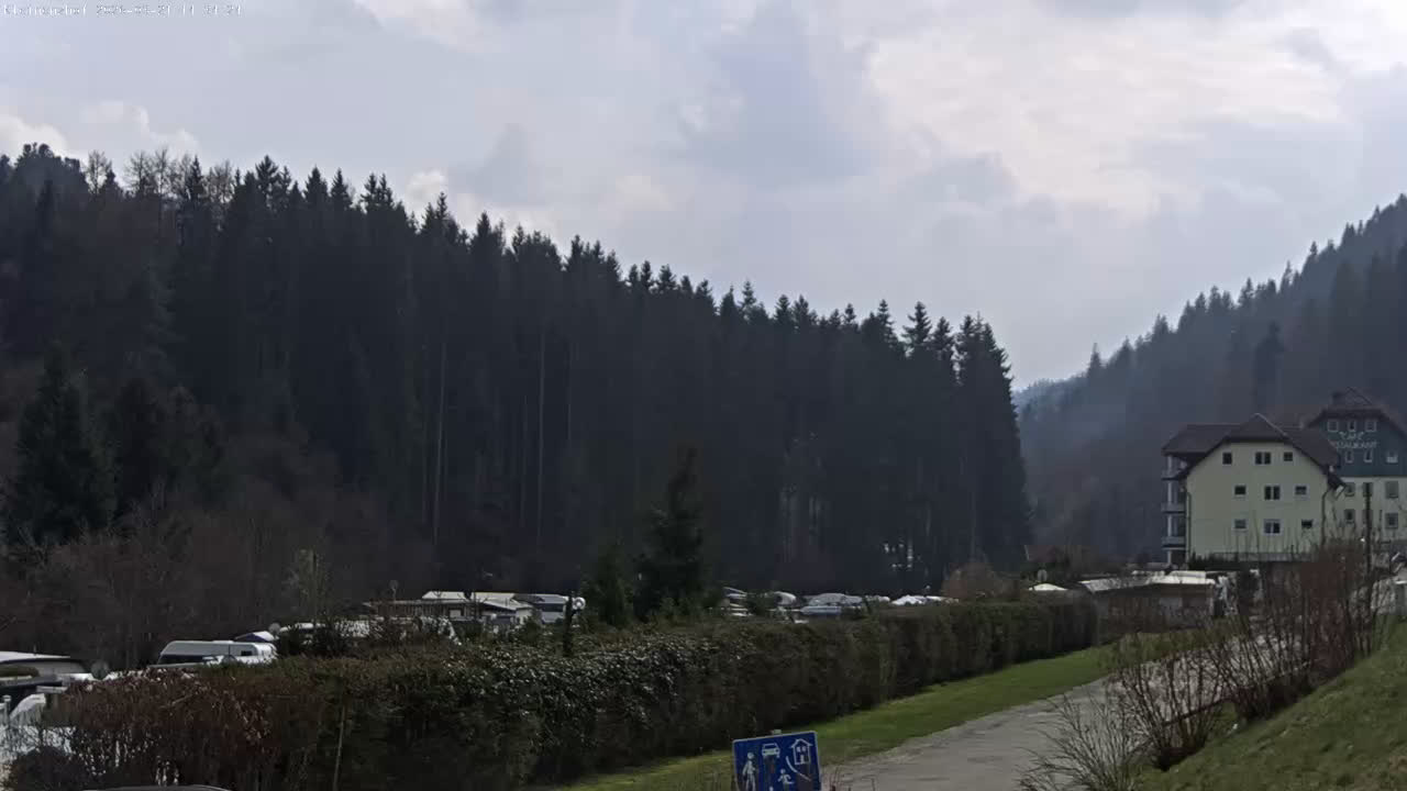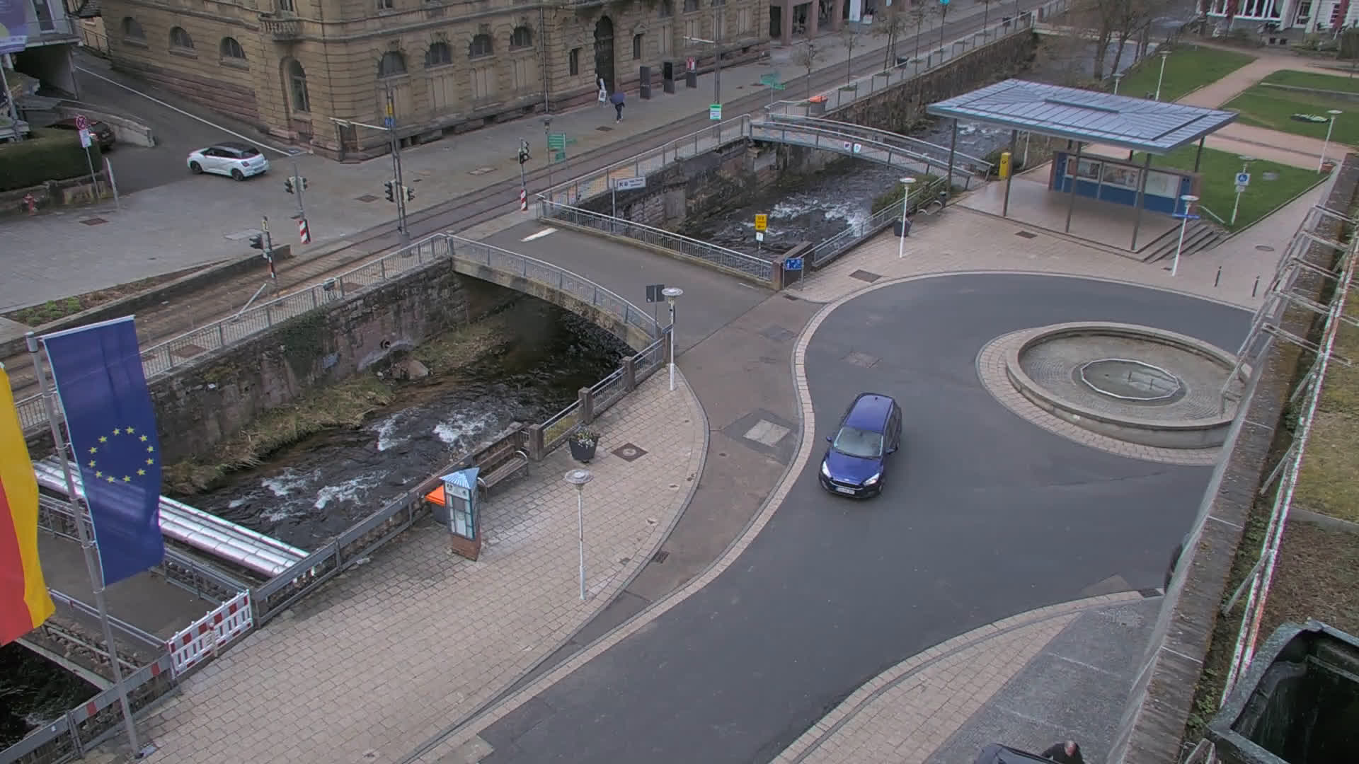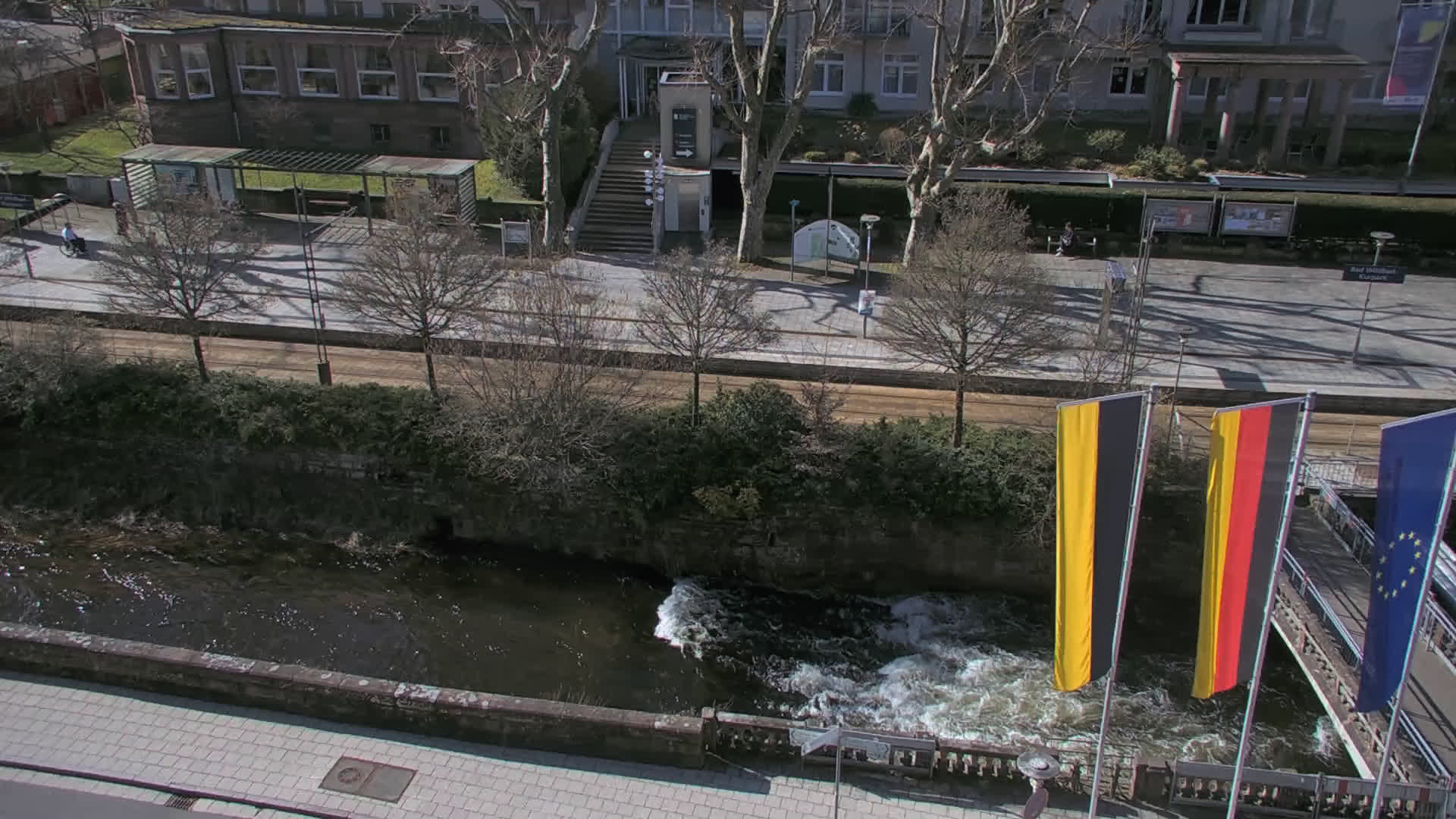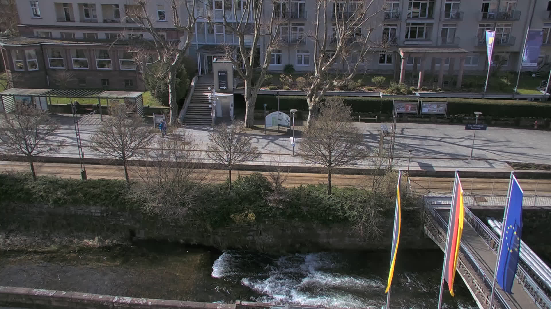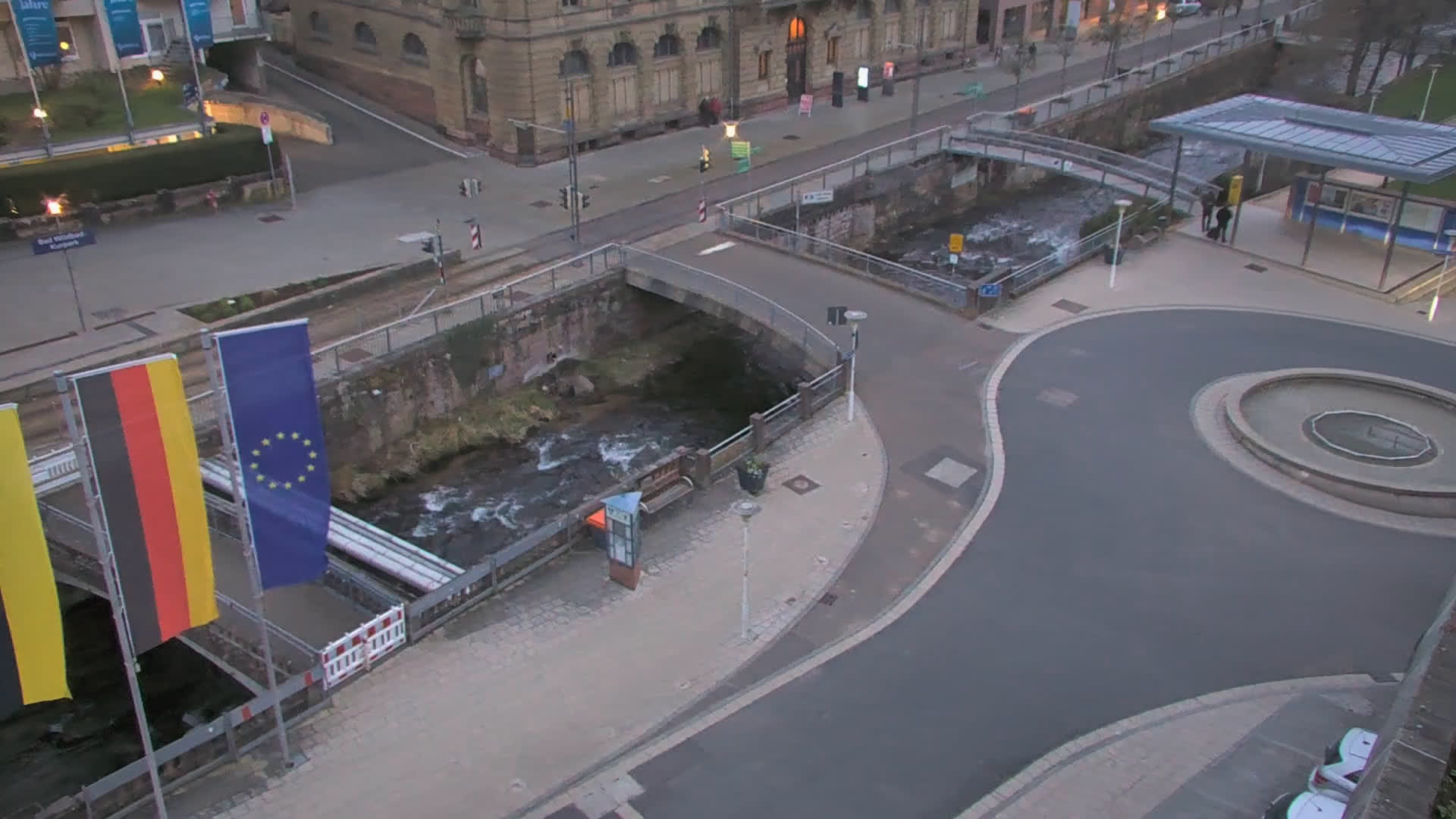 Bad Wildbad, Deutschland - 11.7 km von Altburg: Blick auf den Kurplatz - Live-Stream auf den Kurplatz und die S-Bahnhaltestelle (Flashstream oder Active-X).