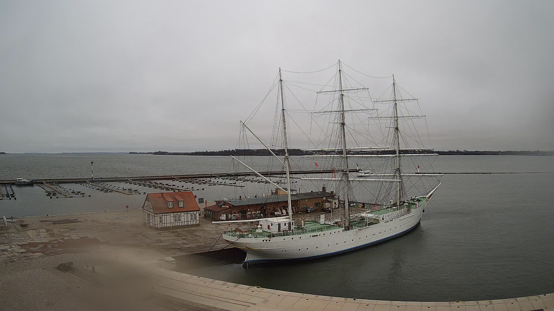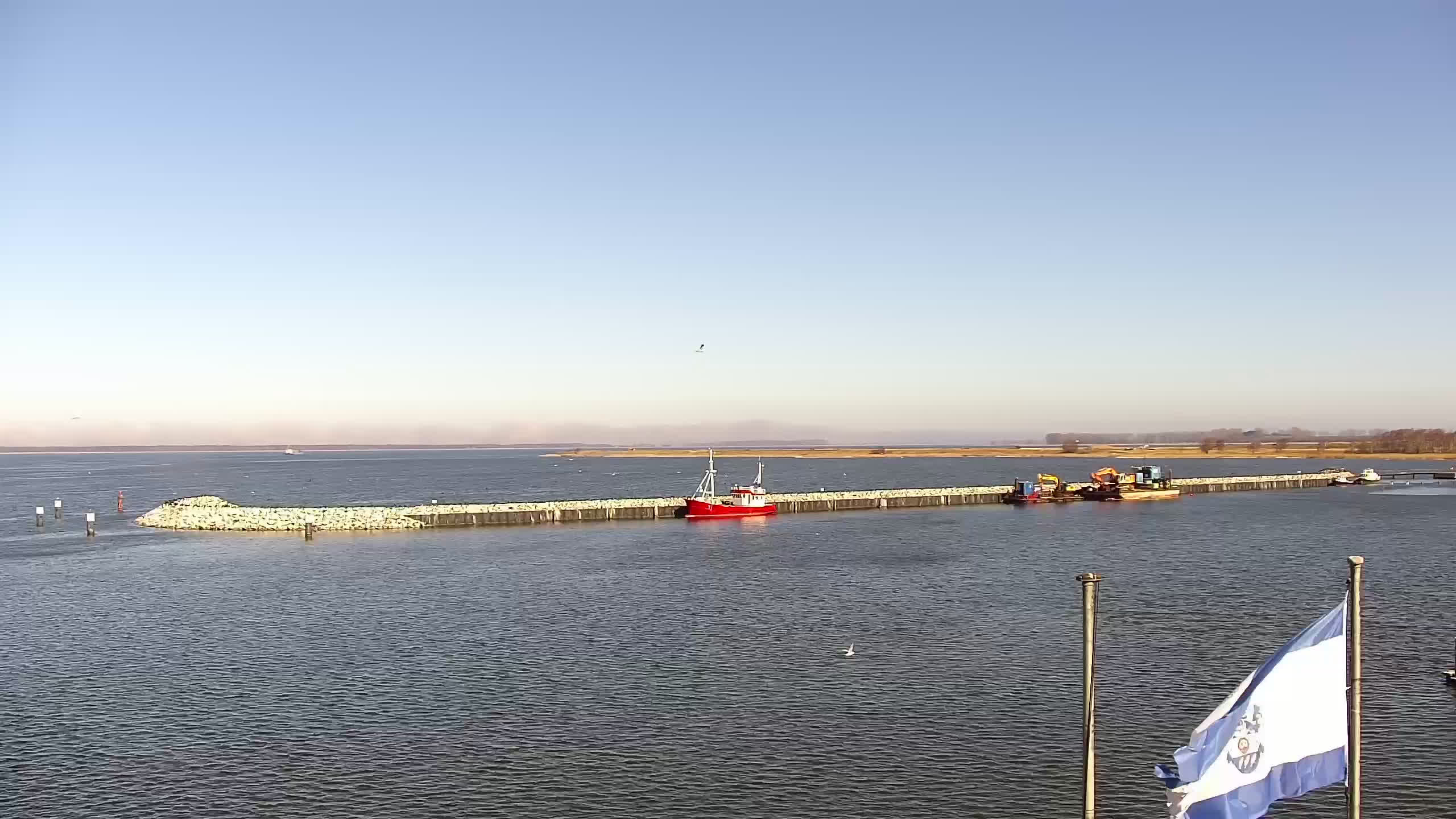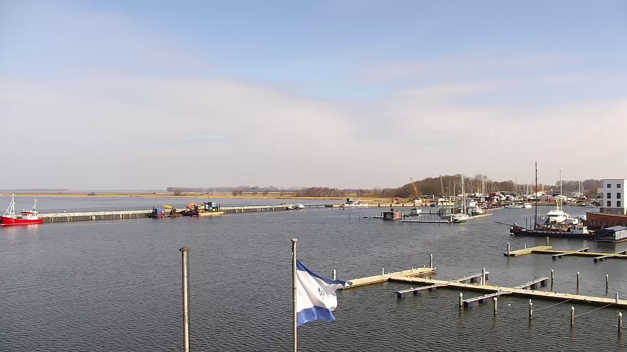 Altefähr (Rügen), Deutschland - 1.6 km von Altefahr: Webcam Altefähr auf Rügen - Panoramablick von Altefähr auf Rügen über den den Strelasund, den Fährterminal von Altefähr und die Rügendammbrücke