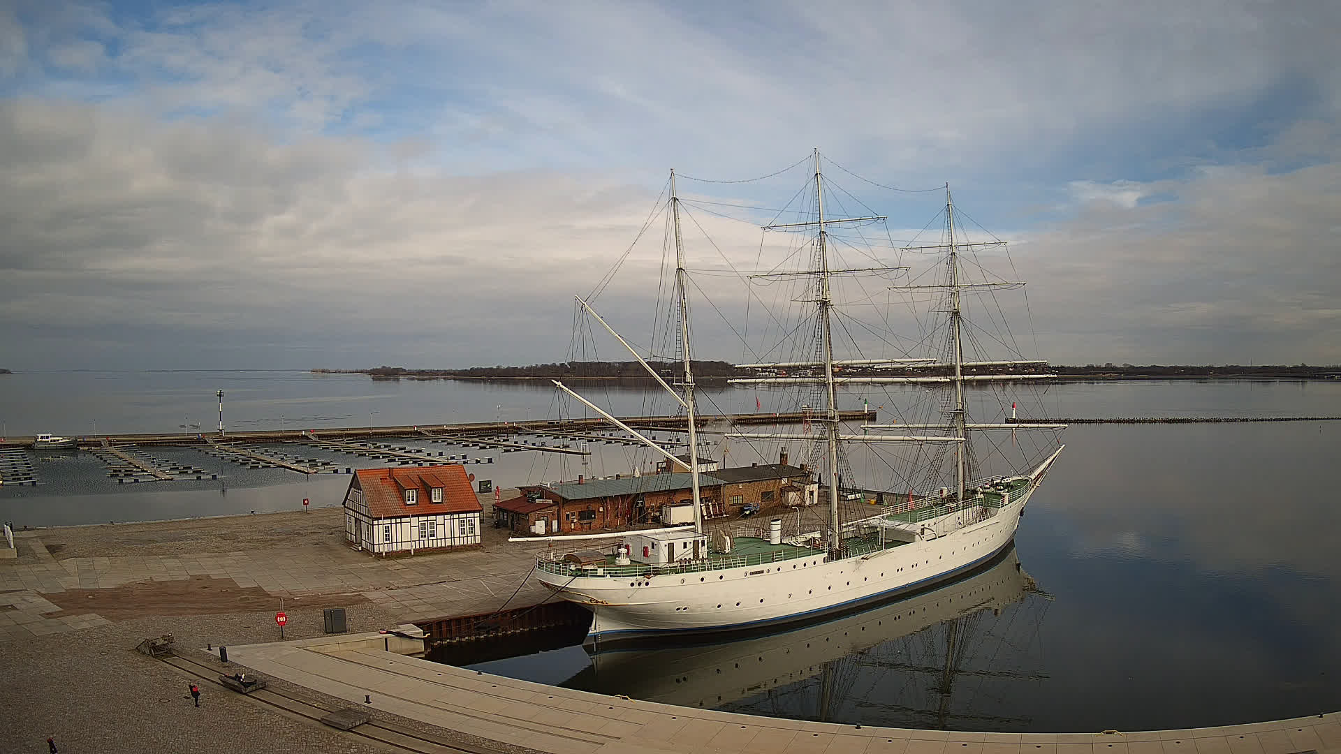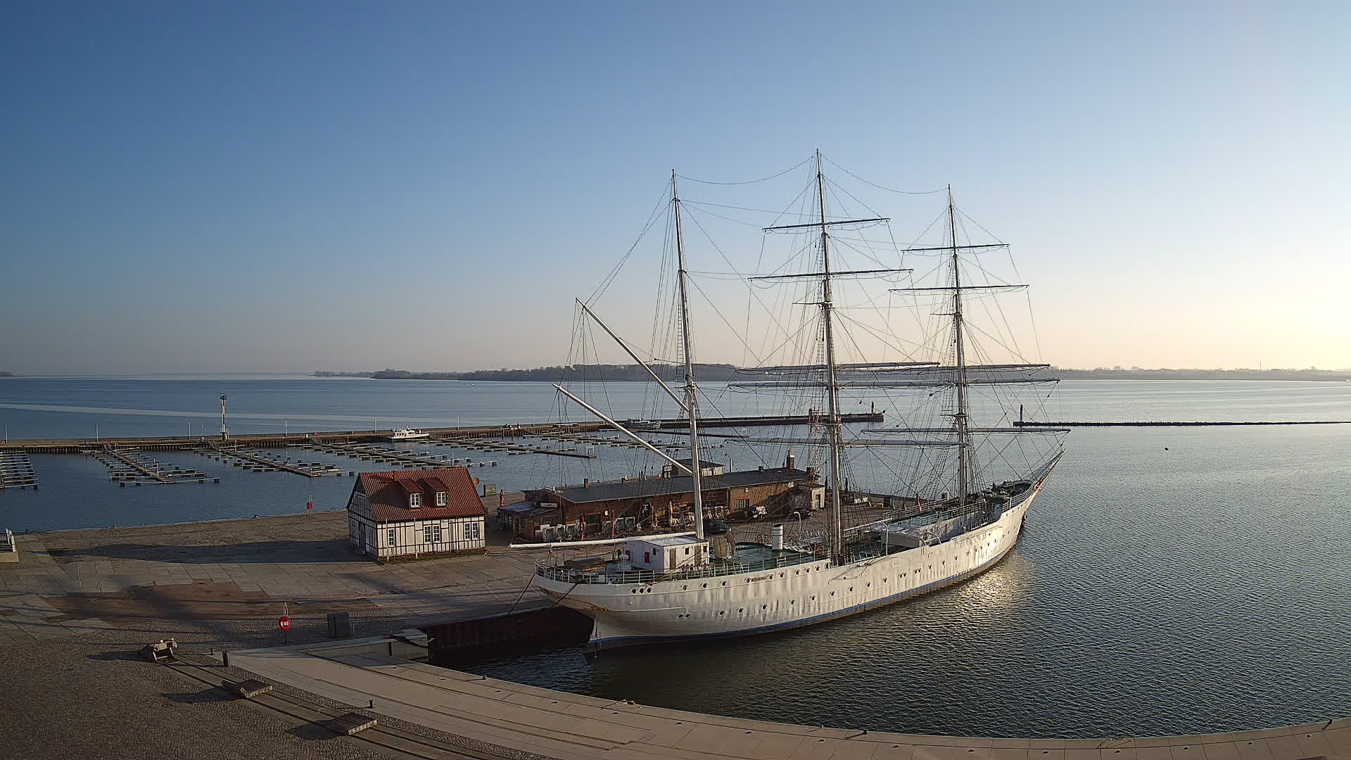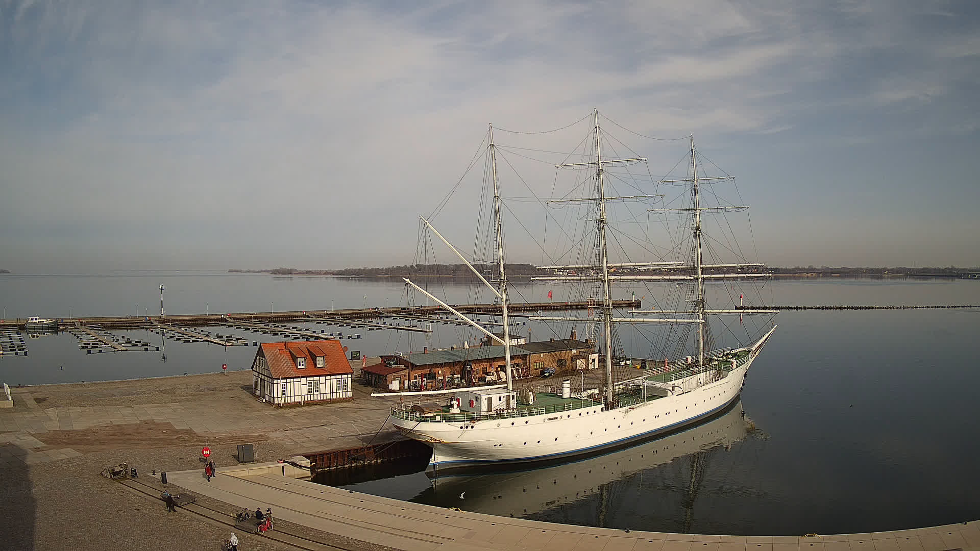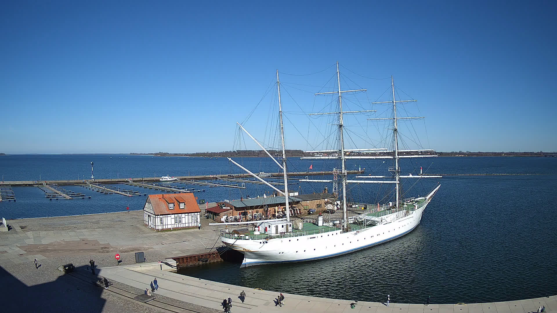 Altefähr (Rügen), Deutschland - 1.6 km von Altefahr: Webcam Altefähr auf Rügen - Panoramablick von Altefähr auf Rügen über den den Strelasund, den Fährterminal von Altefähr und die Rügendammbrücke