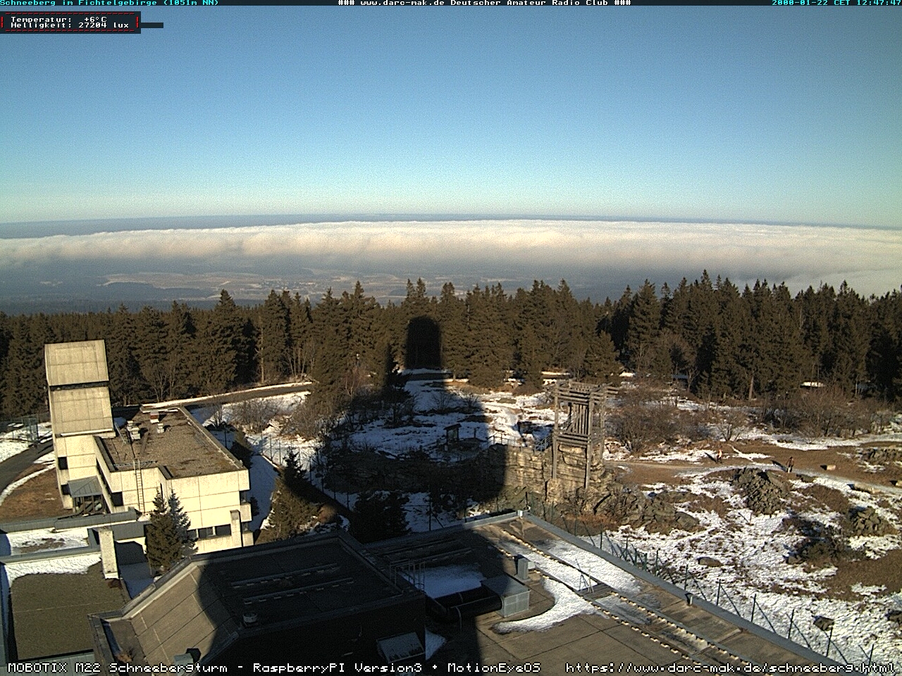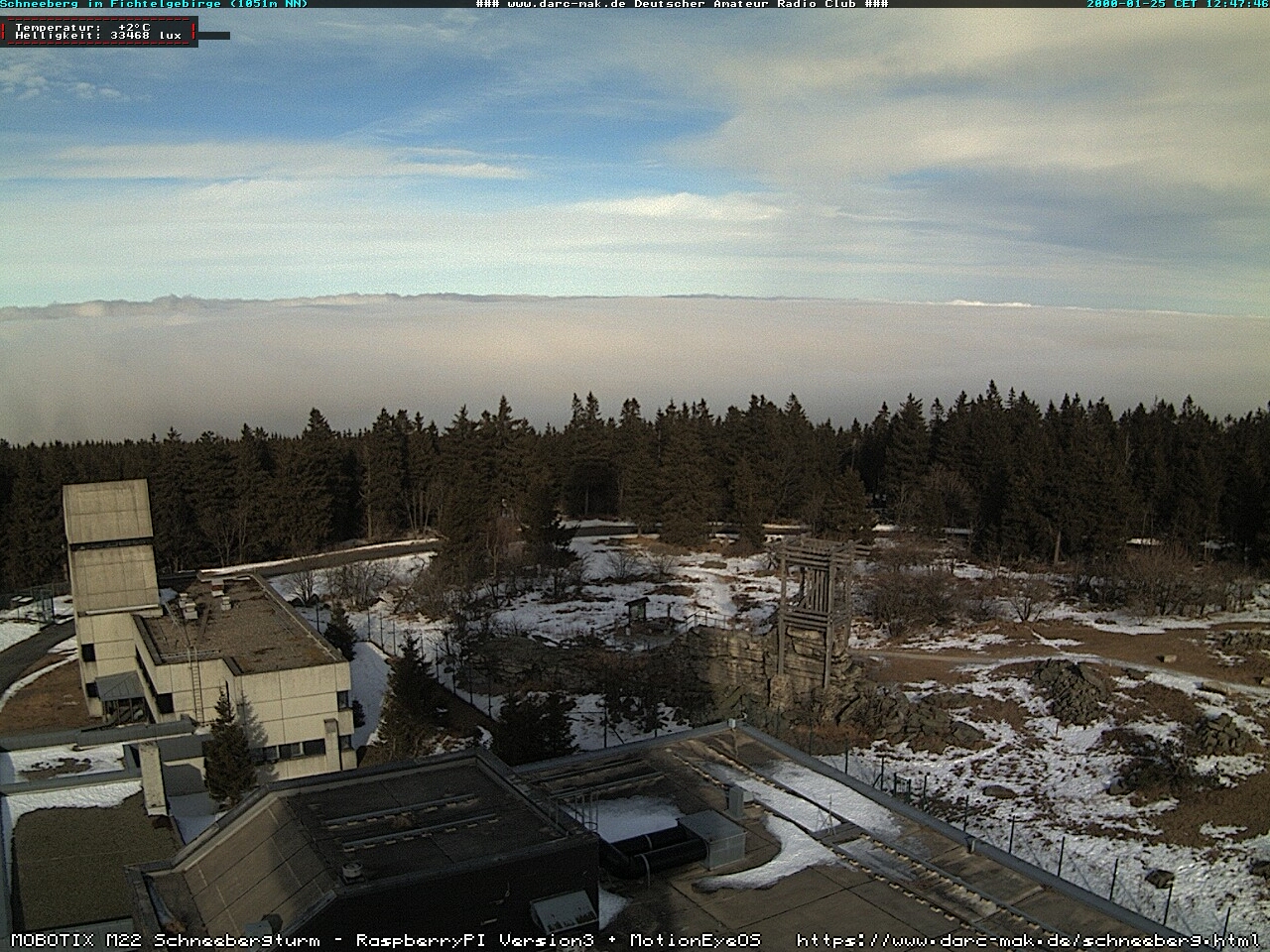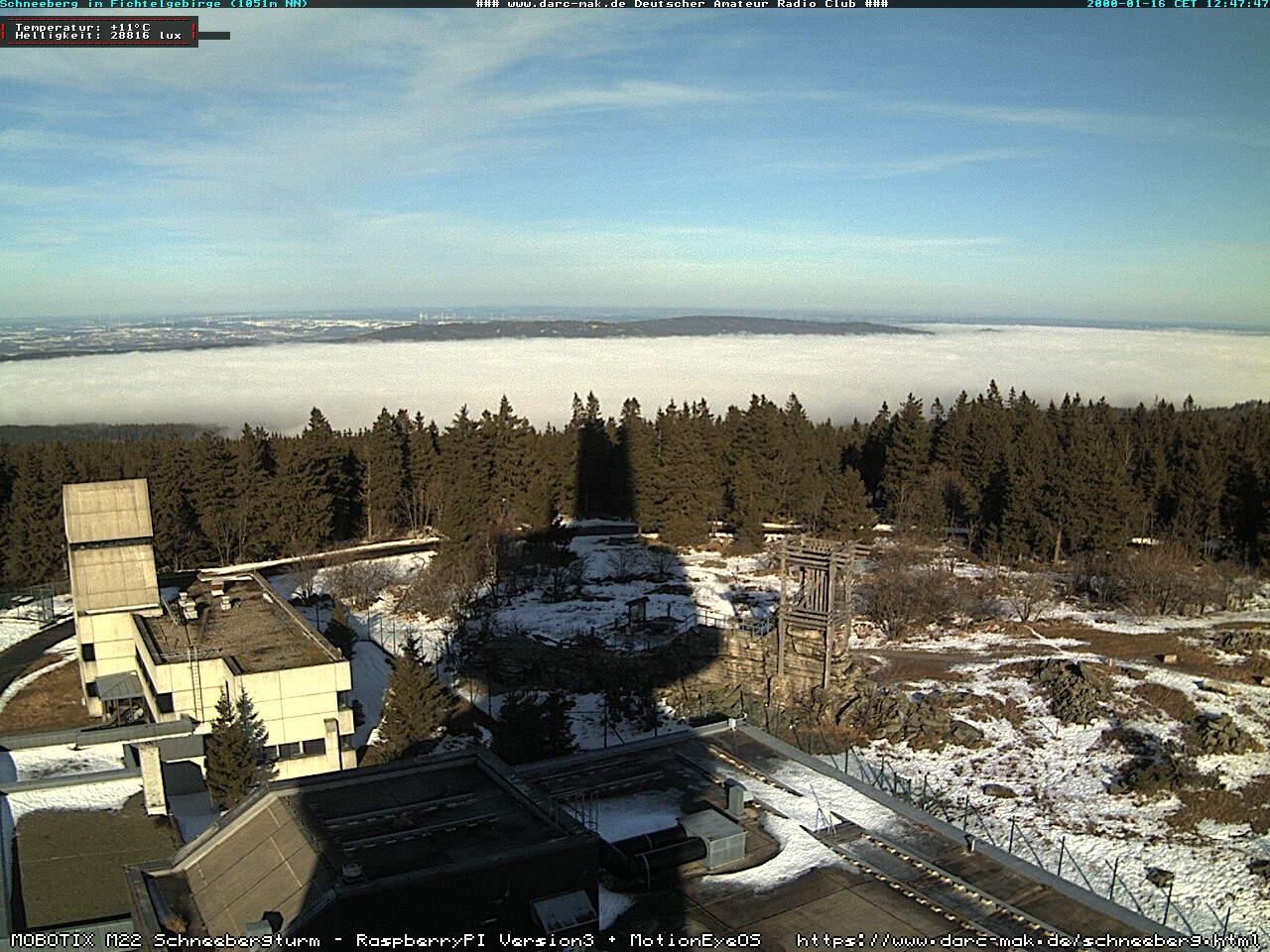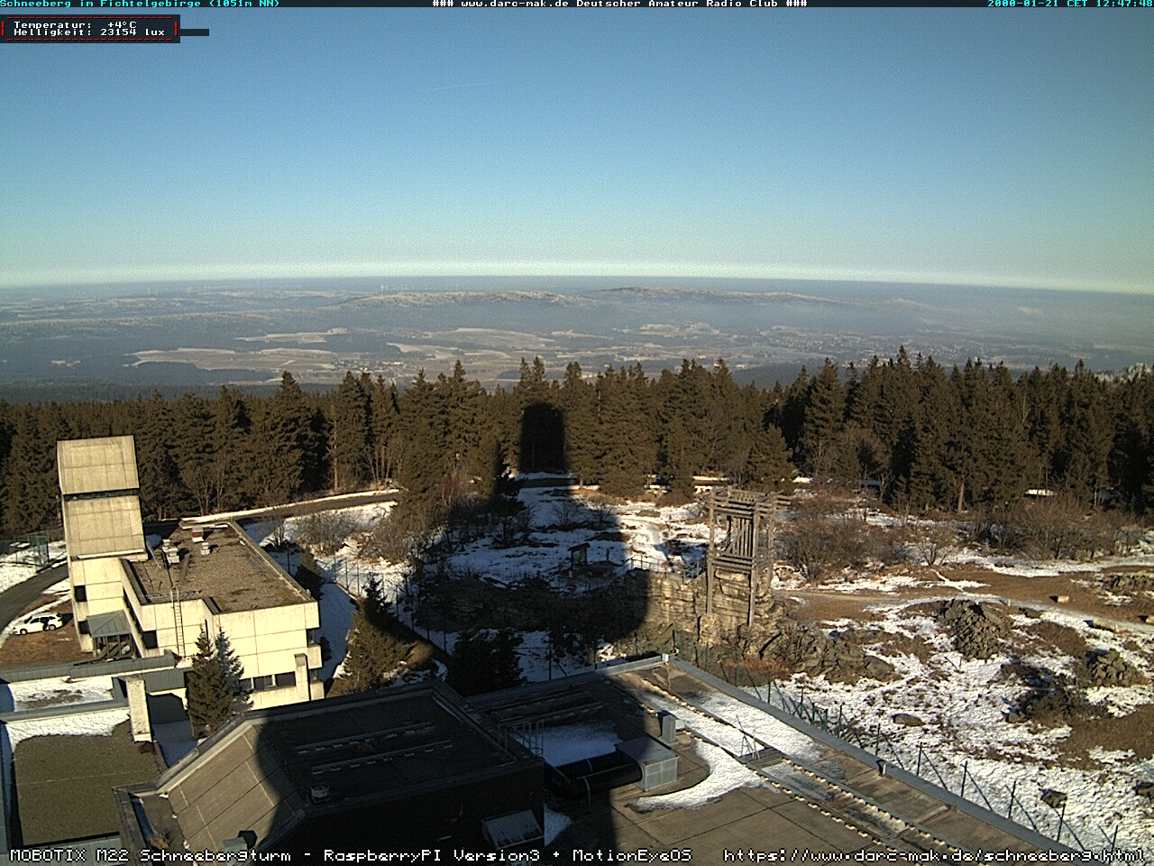 Schneeberg, Deutschland - 34.7 km von Altendorf: Blick vom Schneeberg - Die WebCam befindet sich auf dem Schneeberg, dem höchsten Berg in Franken in Nord-Ost-Bayern. Die Kamera zeigt Richtung Norden nach Weissenstadt mit Weissenstädtersee.