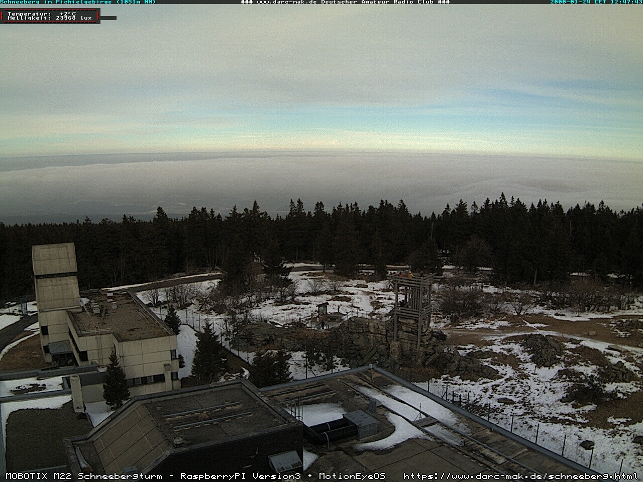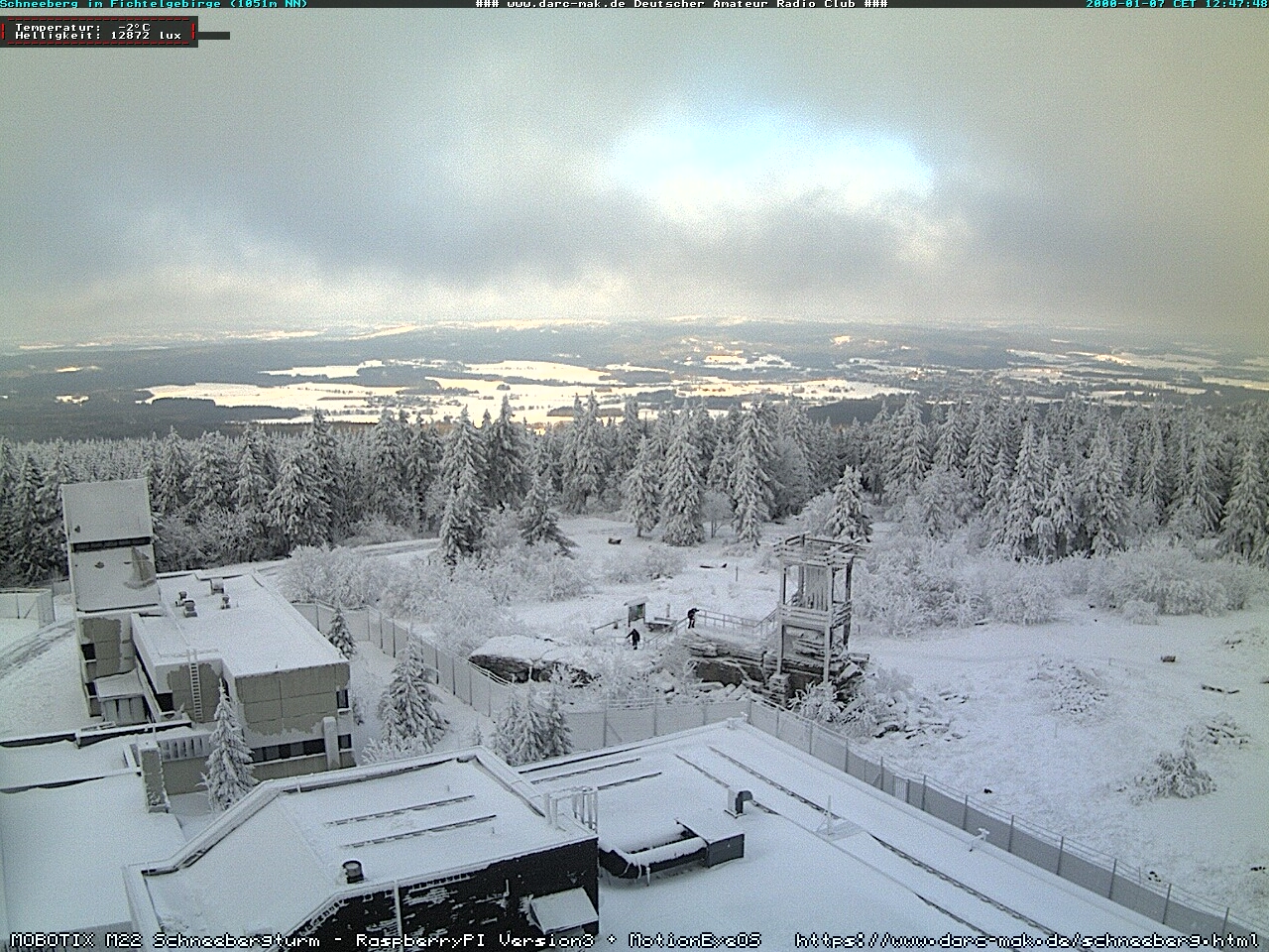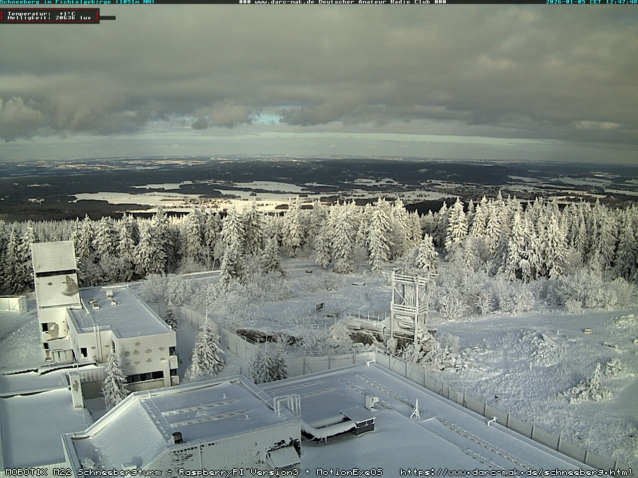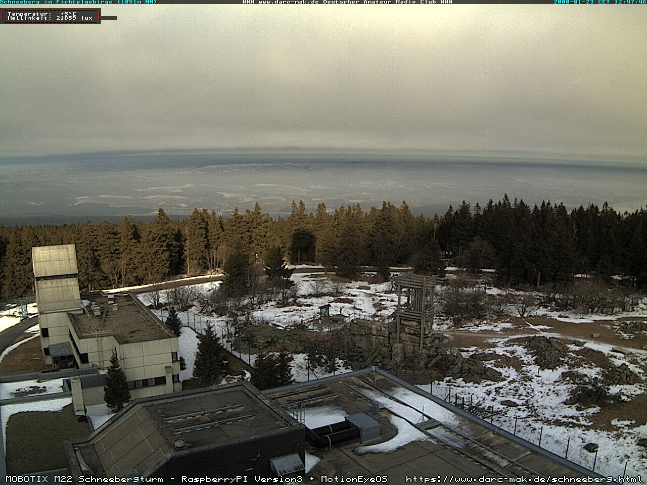 Schneeberg, Deutschland - 34.7 km von Altendorf: Blick vom Schneeberg - Die WebCam befindet sich auf dem Schneeberg, dem höchsten Berg in Franken in Nord-Ost-Bayern. Die Kamera zeigt Richtung Norden nach Weissenstadt mit Weissenstädtersee.