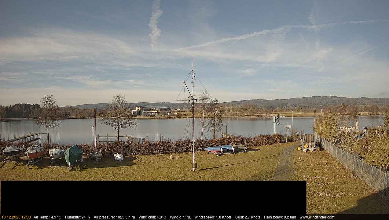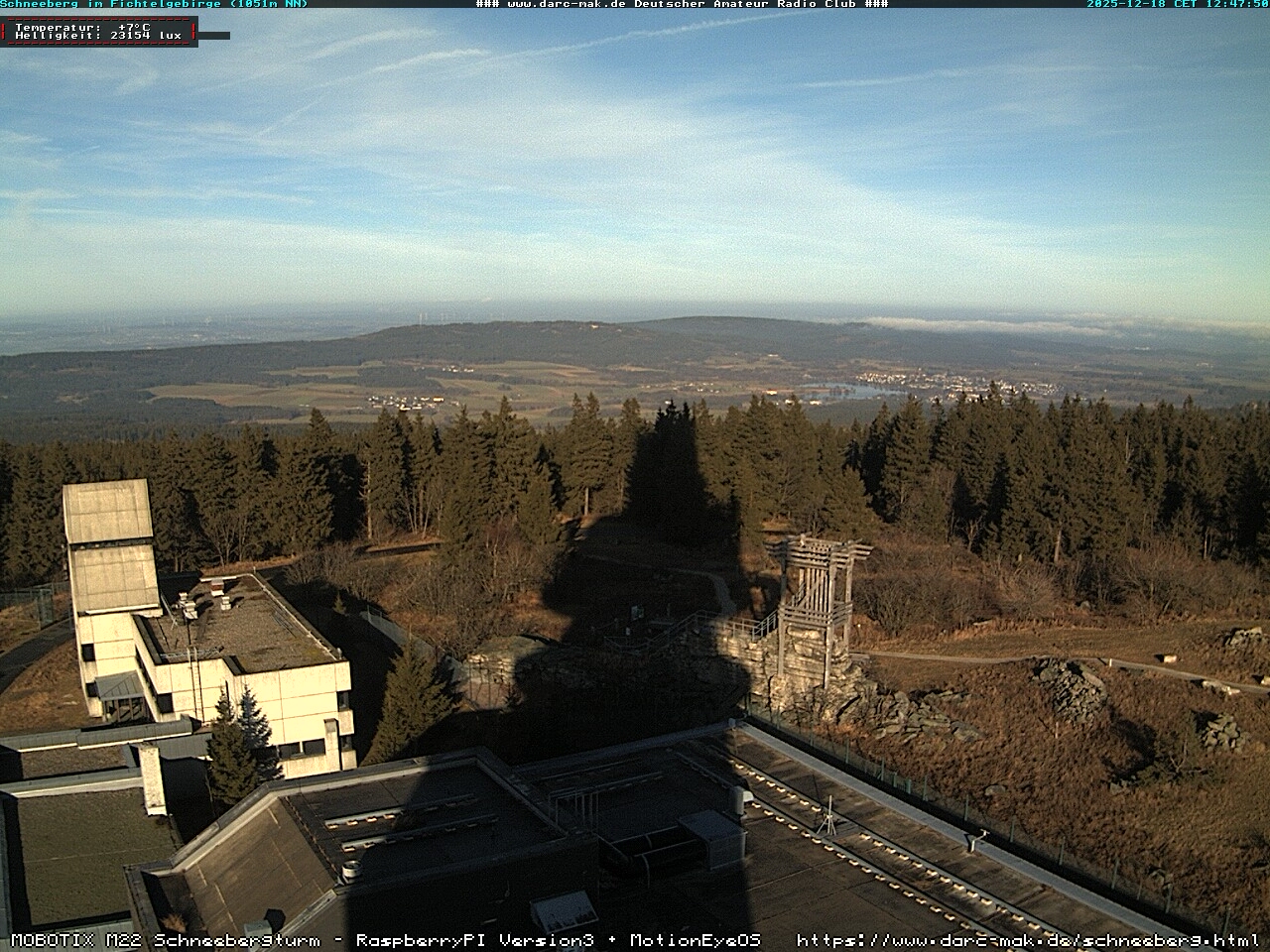 Schneeberg, Deutschland - 25.8 km von Altenstadt: Blick vom Schneeberg - Die WebCam befindet sich auf dem Schneeberg, dem höchsten Berg in Franken in Nord-Ost-Bayern. Die Kamera zeigt Richtung Norden nach Weissenstadt mit Weissenstädtersee.