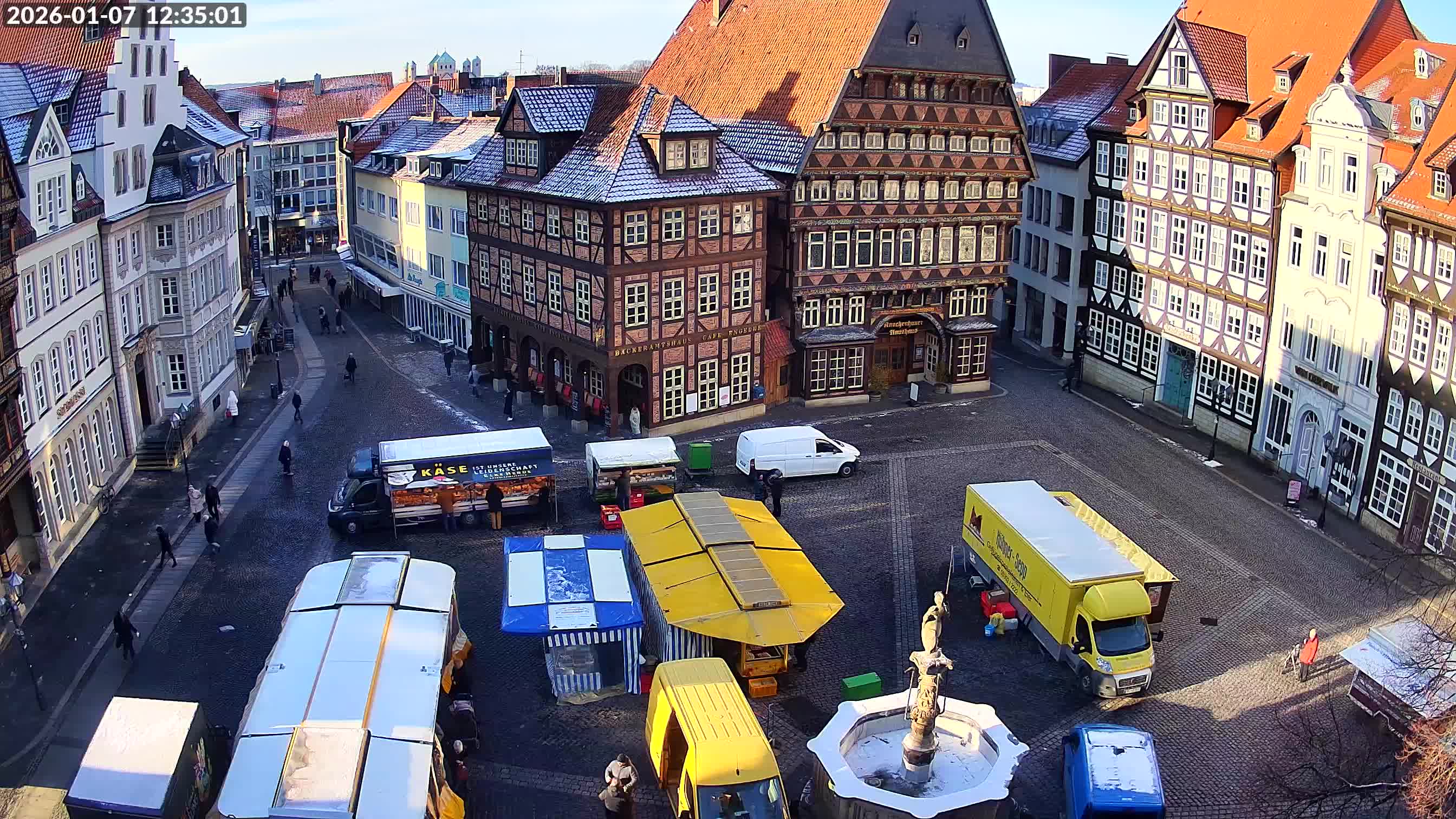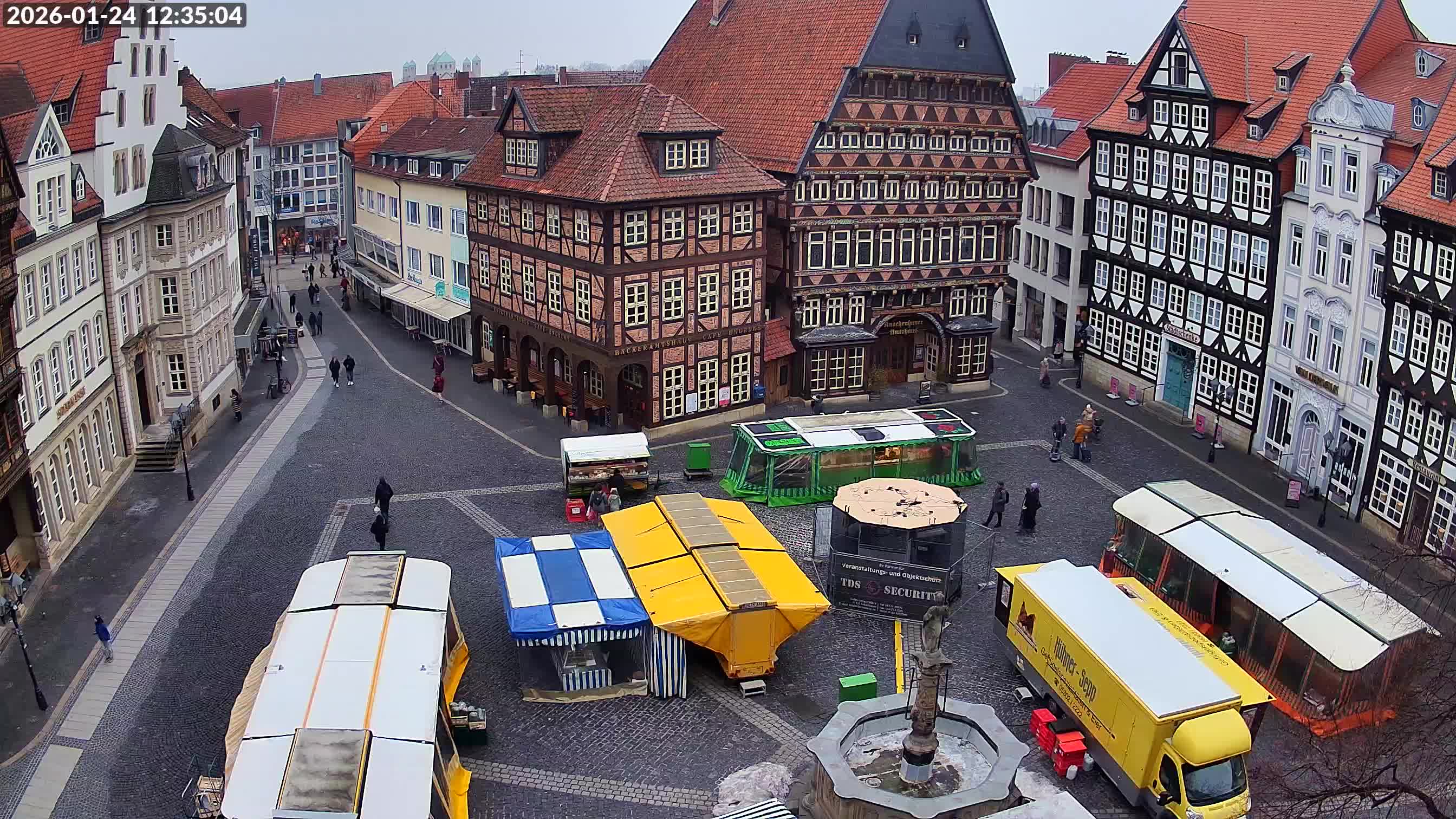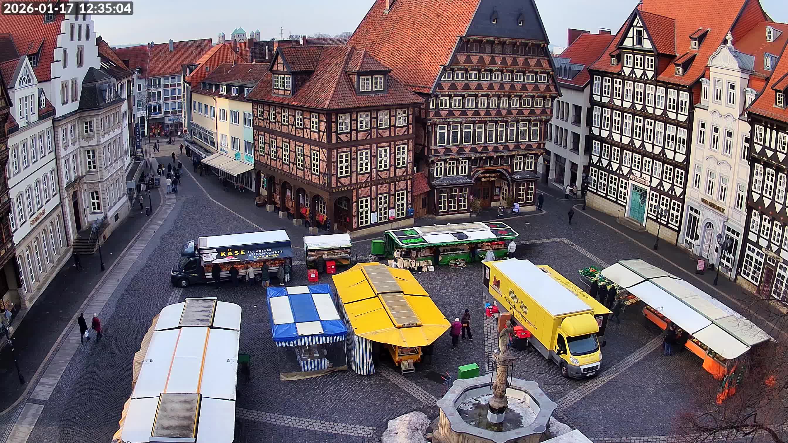 Osterode am Harz, Deutschland - 23.7 km von Altgandersheim: Kornmarkt Osterode - Blick vom Marktkirchturm auf die Fußgängerzone mit dem Kornmarkt in Osterode.