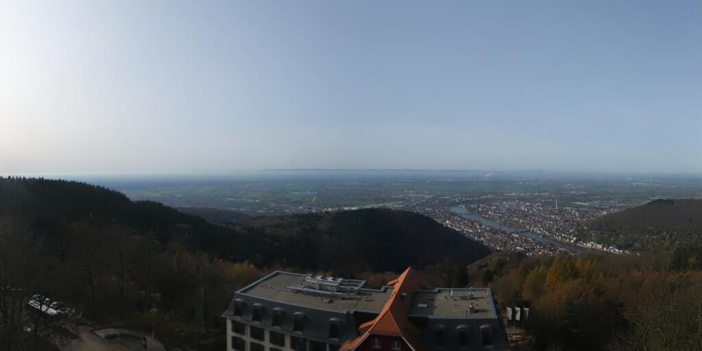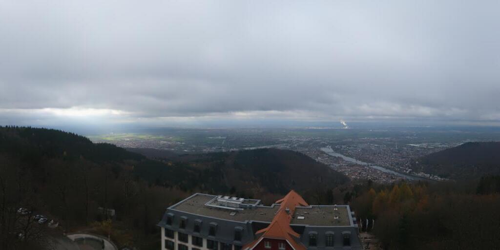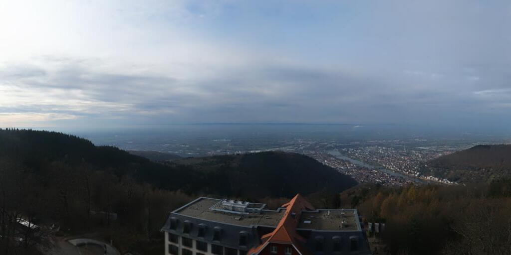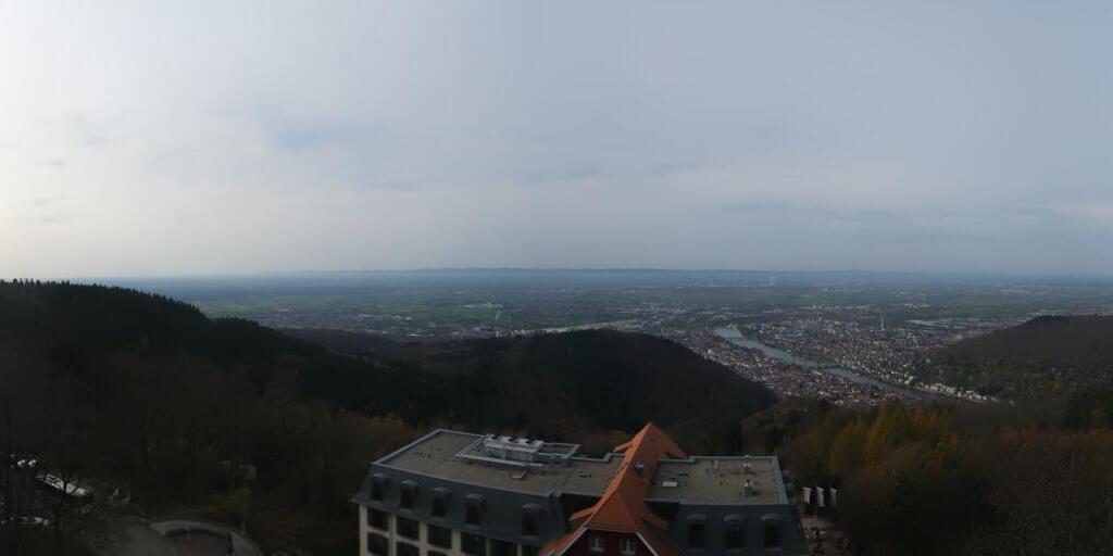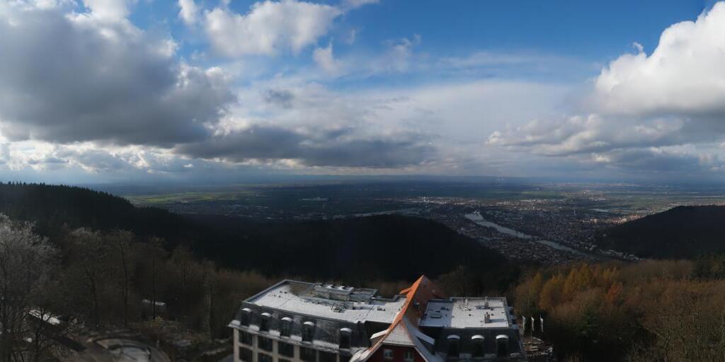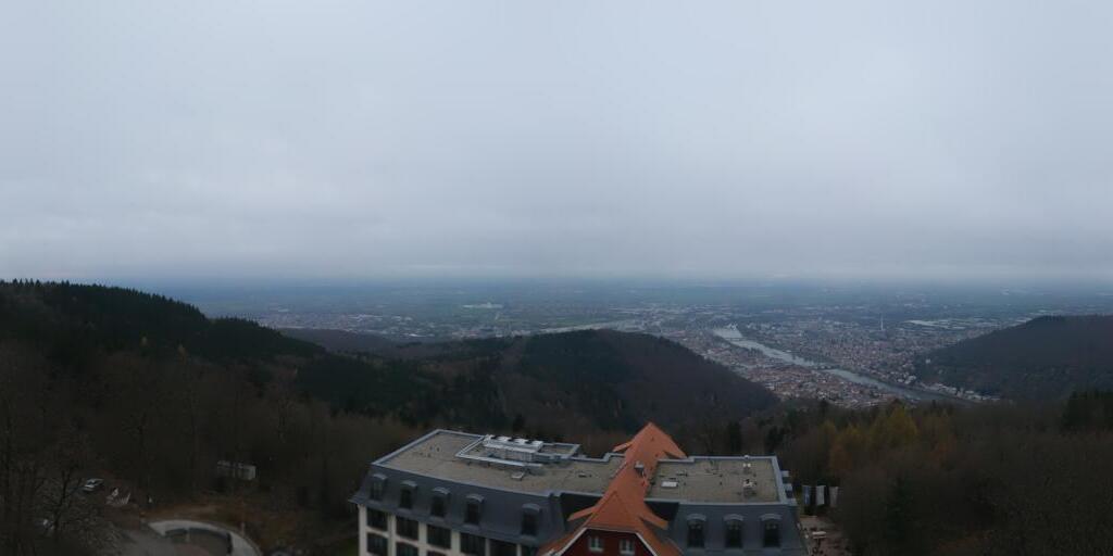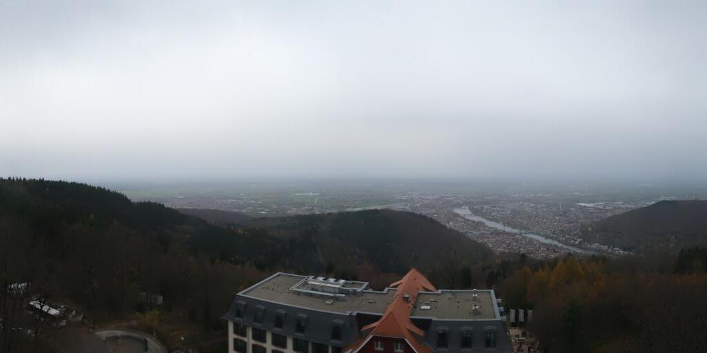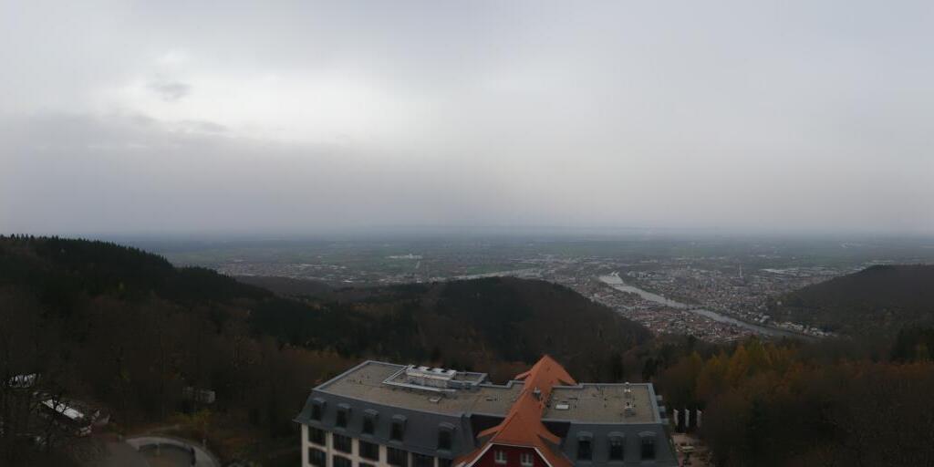 Heidelberg, Deutschland - 11.2 km von Altneudorf: Altstadt und Schloss - Die Webcam befindet sich am Nordufer des Neckar und zeigt die Altstadt von Heidelberg, das Schloss, die Heiliggeistkirche und Bergbahn.