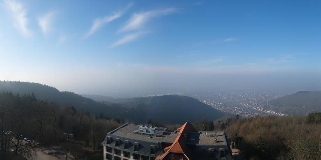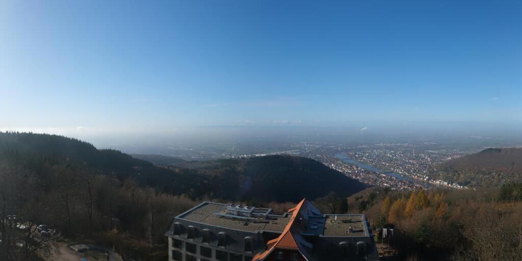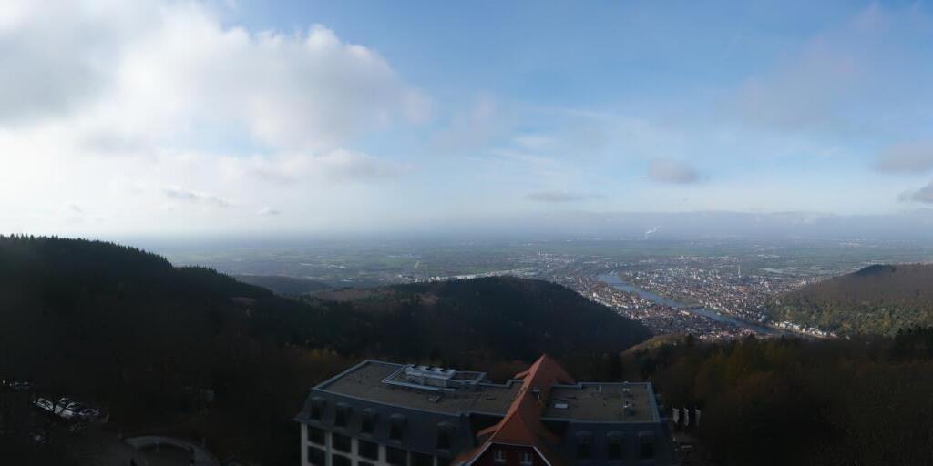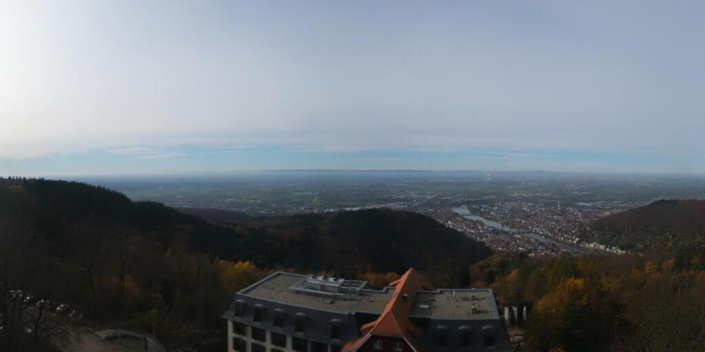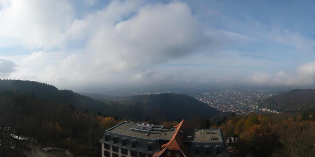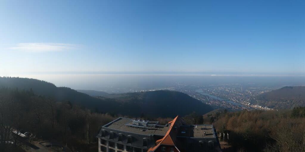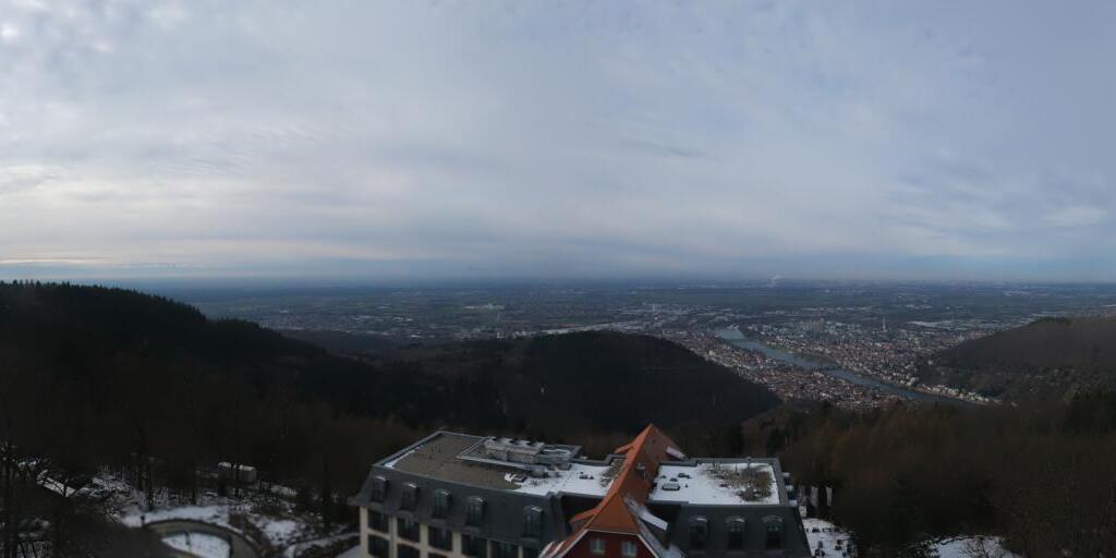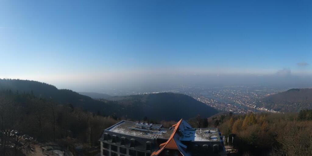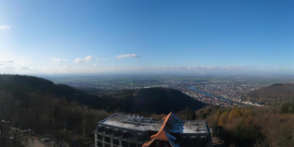 Heidelberg, Deutschland - 11.2 km von Altneudorf: Altstadt und Schloss - Die Webcam befindet sich am Nordufer des Neckar und zeigt die Altstadt von Heidelberg, das Schloss, die Heiliggeistkirche und Bergbahn.