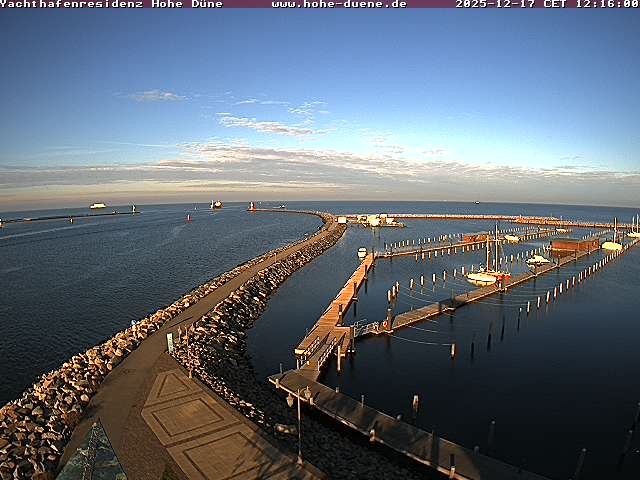 Warnemünde, Deutschland - 47.7 km von Amalienhof: Alter Strom Warnemünde - HD Streaming Kamera am 'Alten Strom' in Warnemünde bei Rostock an der Ostsee. Im Hintergrund die belebte Hafeneinfahrt des Rostocker Fähr- und Containerhafens. Fähren nach Dänemark, Schweden und alle Baltischen Anreihnerstaaten kommern regelmäßig vorbei. Im Vordergrund der 'Alte Strom' von Warnemünde mit seinen kleinen Fischerbooten, Fischmarkt auf der Mittelmole und der Probmenade. Als Bonus gibts Livewetter in Echtzeit im Videoplayer. Powered by Livespotting.tv in HD Qualität.