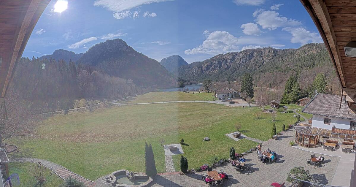 Bad Reichenhall, Deutschland - 8.7 km von Anger: HD Foto-Webcam Bad Reichenhall - Reichenhaller Haus am Hochstaufen - Blick über Bad Reichenhall nach Süden.
