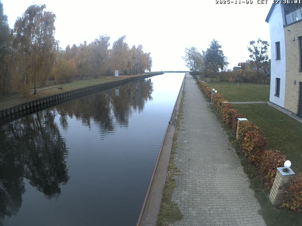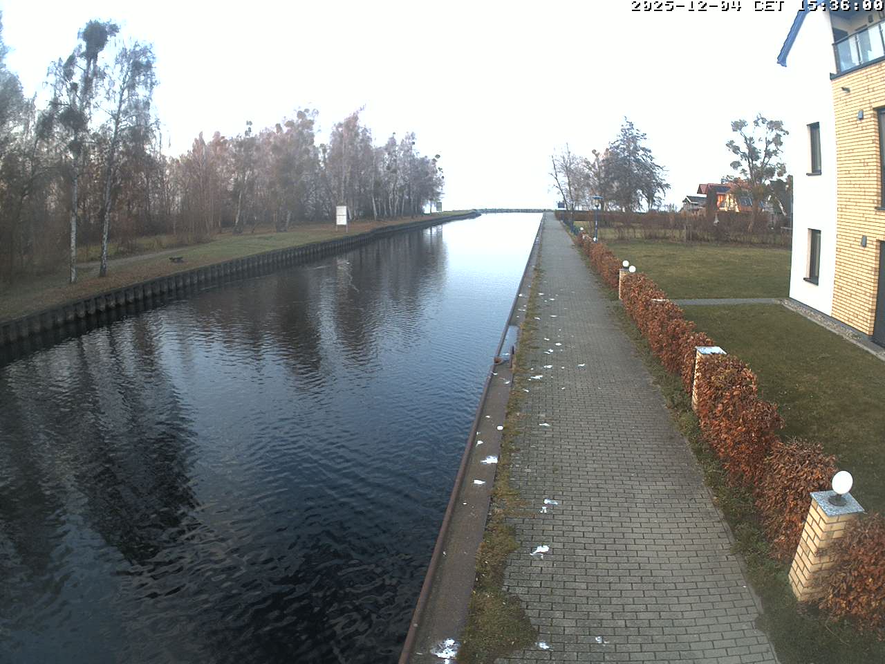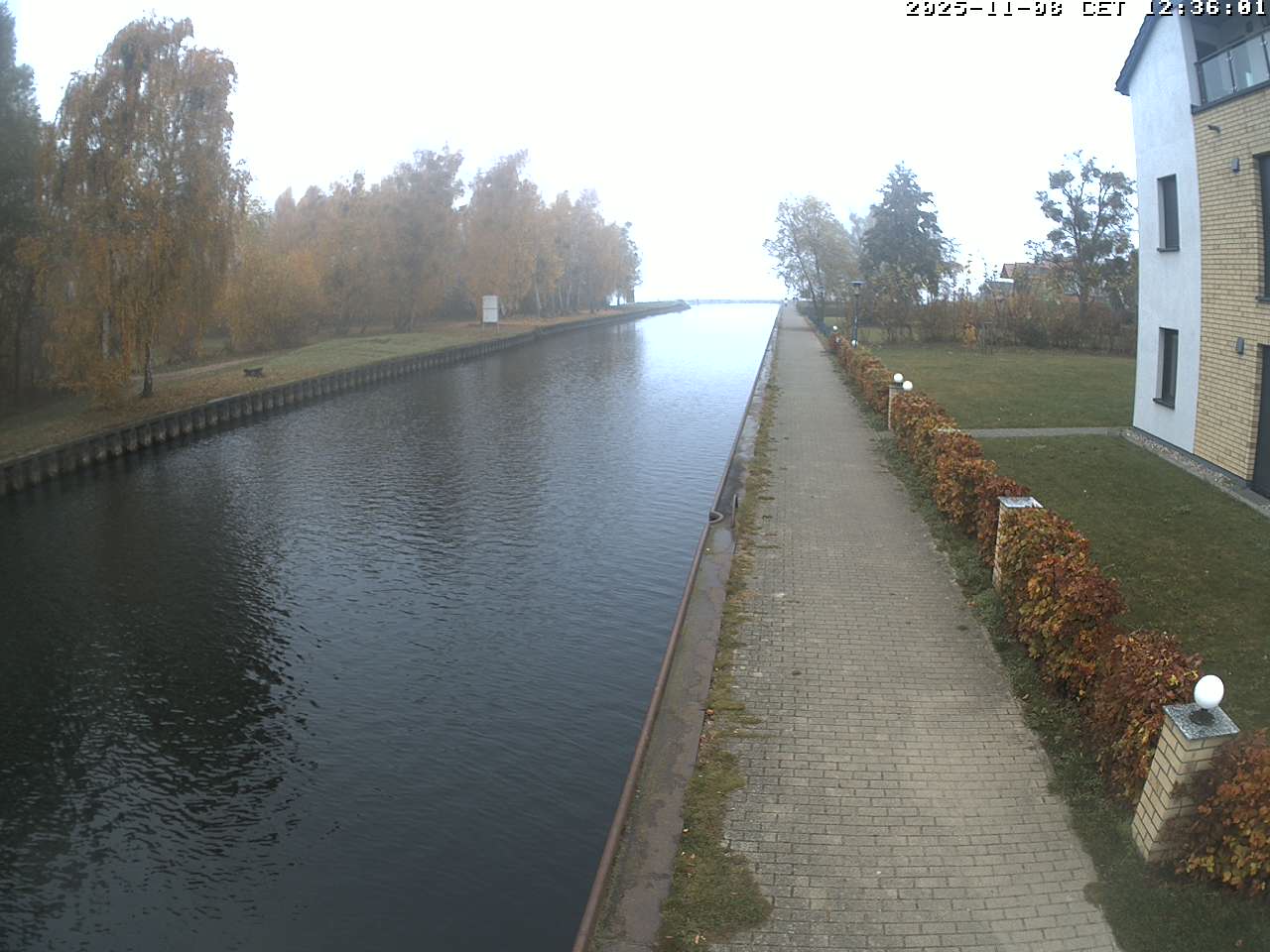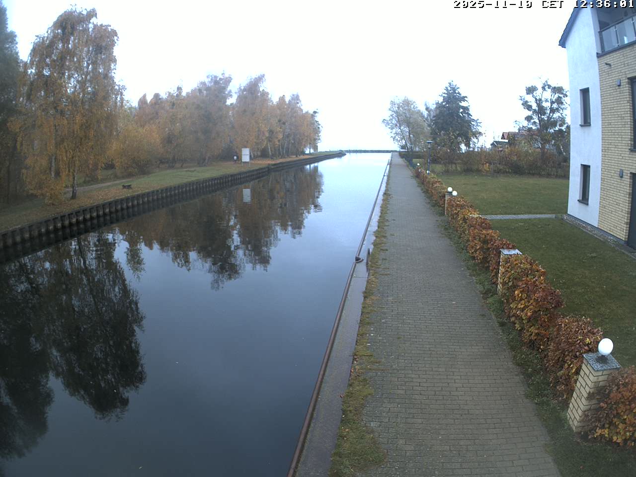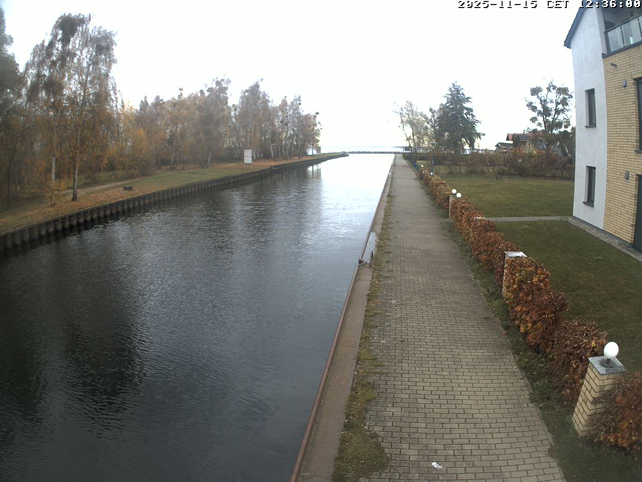 Rechlin, Deutschland - 49.2 km von Annenwalde: Webcam Hafendorf Müritz - Mit dieser Webcam sehen Sie die Ausfahrt aus der Marina Müritz. Der sogenannte Stichkanal ist etwa 180 Meter lang und verbindet den Claassee mit der Müritz.