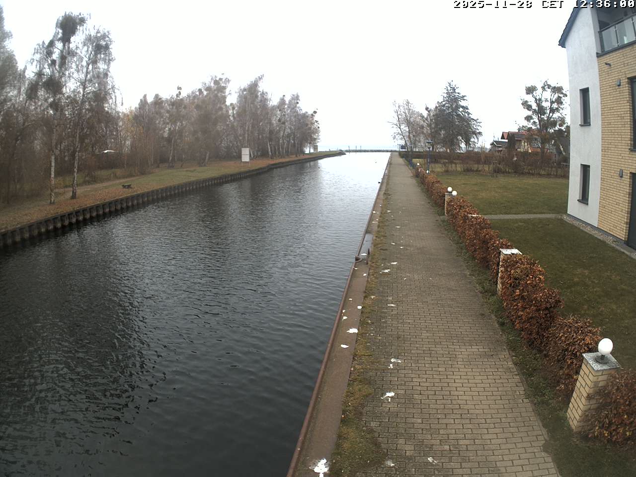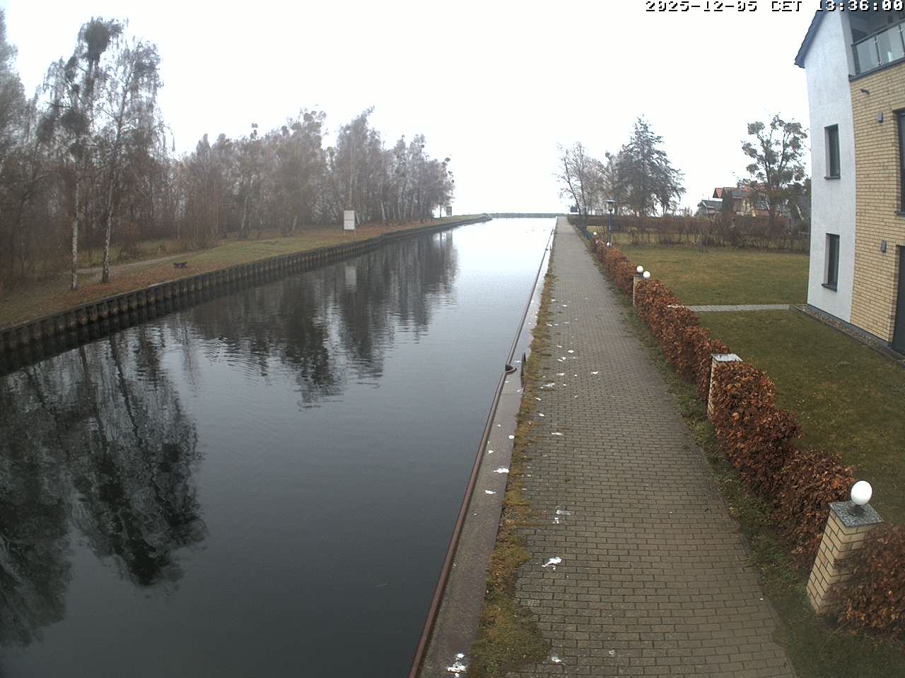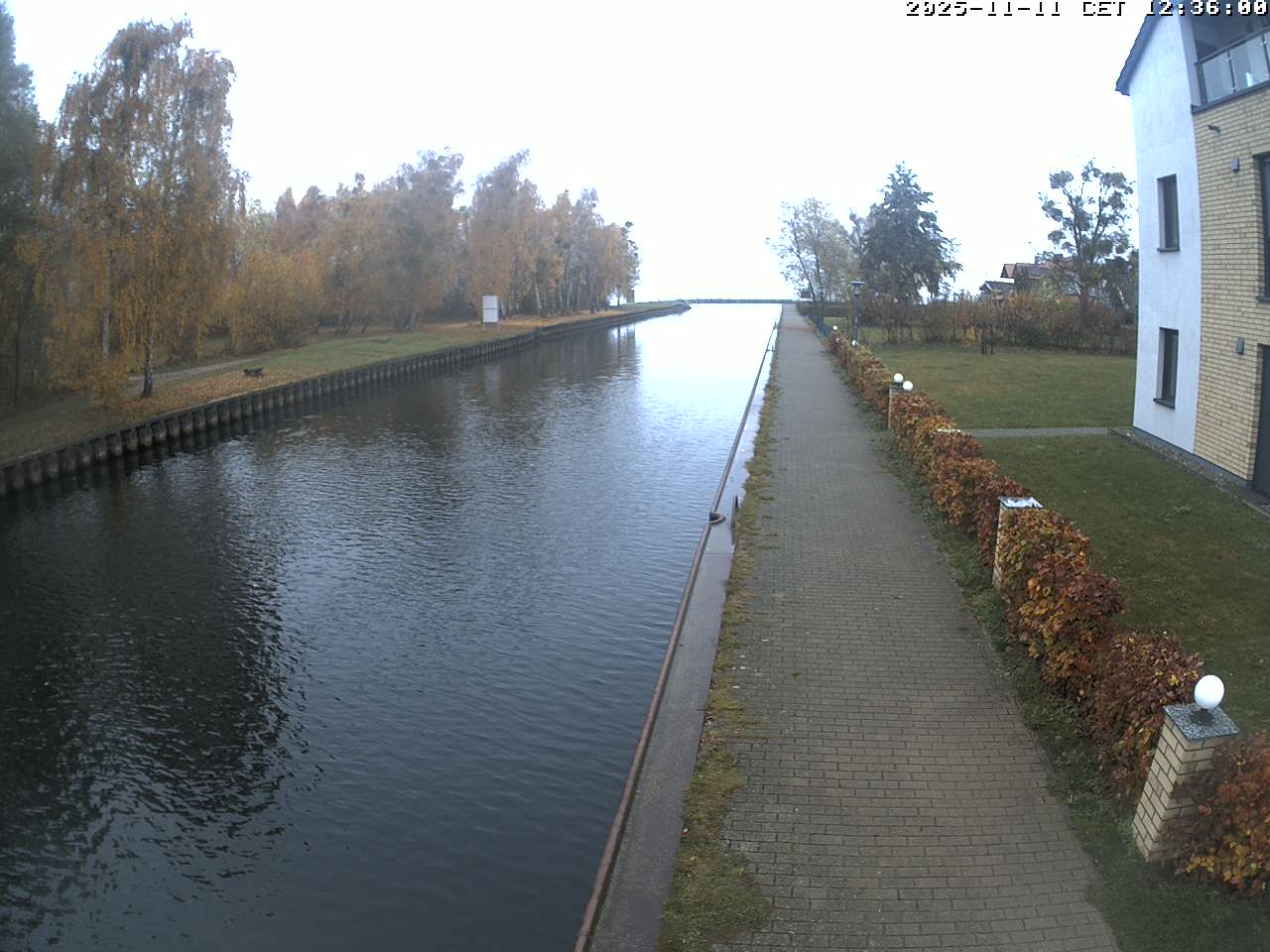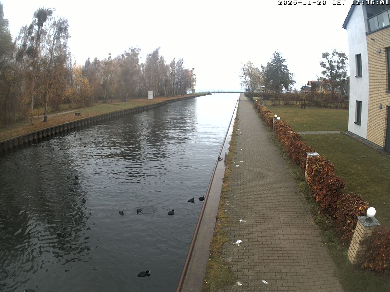 Rechlin, Deutschland - 49.2 km von Annenwalde: Webcam Hafendorf Müritz - Mit dieser Webcam sehen Sie die Ausfahrt aus der Marina Müritz. Der sogenannte Stichkanal ist etwa 180 Meter lang und verbindet den Claassee mit der Müritz.
