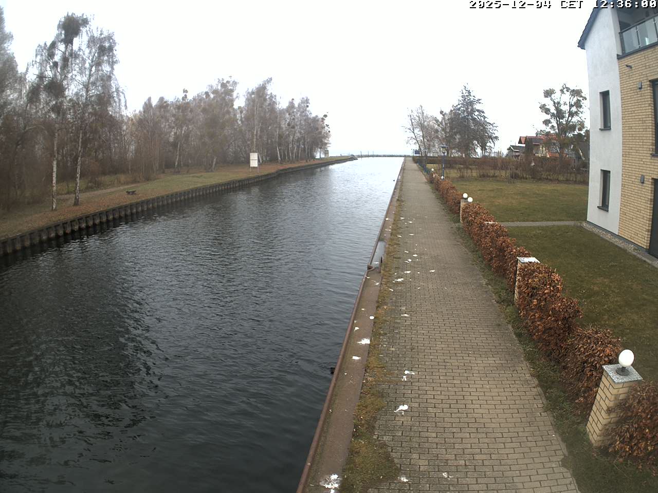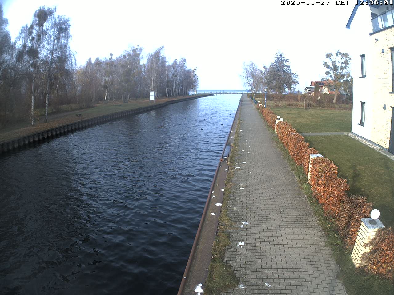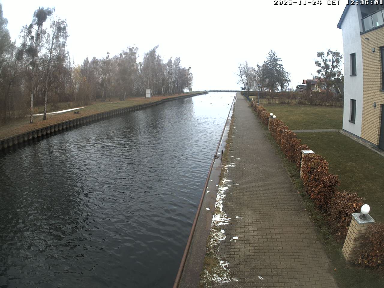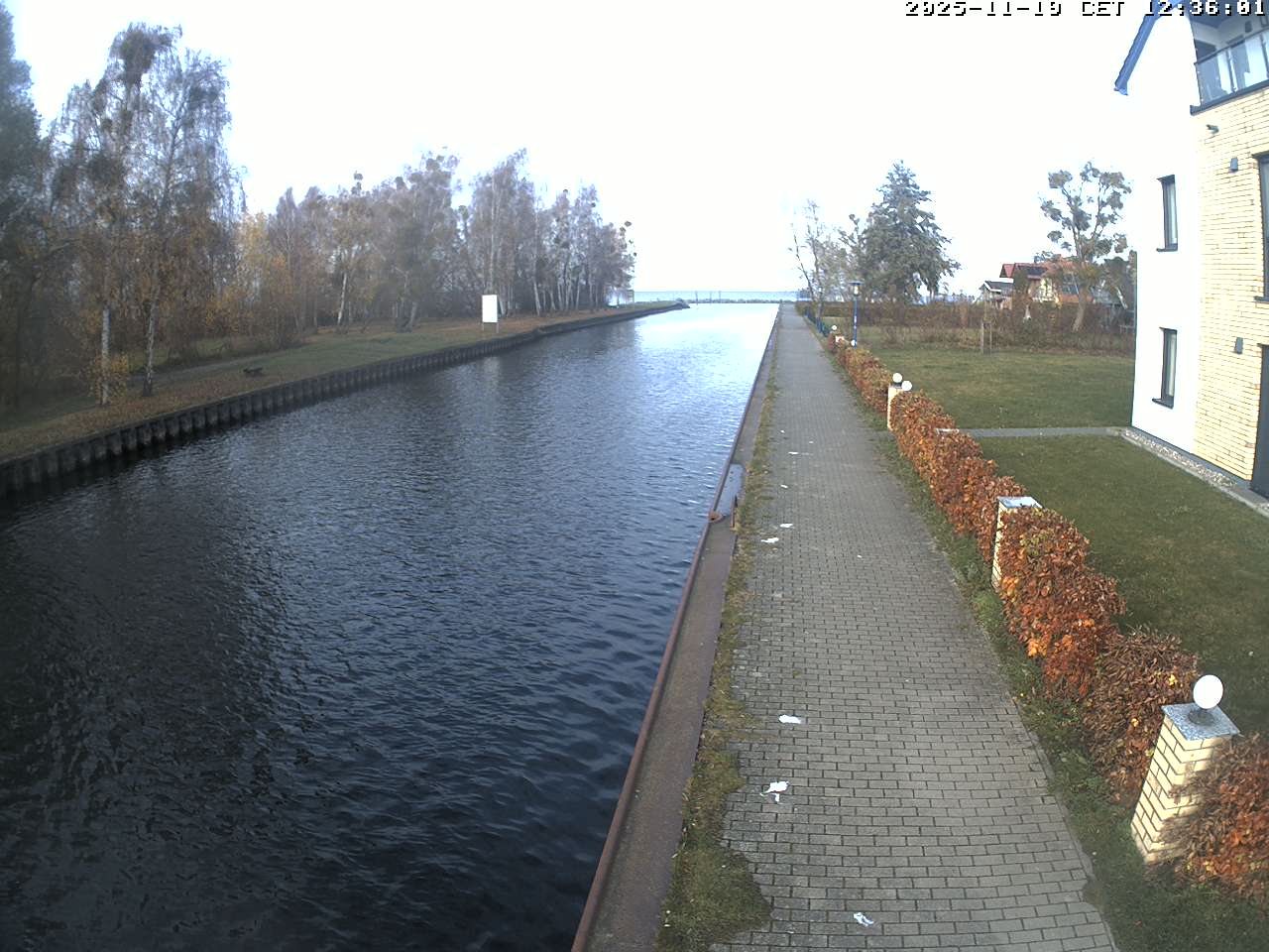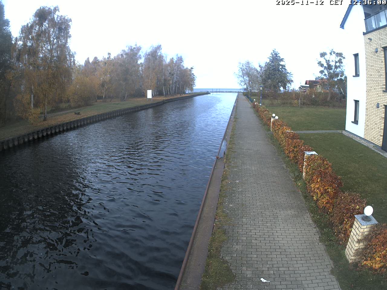 Rechlin, Deutschland - 49.2 km von Annenwalde: Webcam Hafendorf Müritz - Mit dieser Webcam sehen Sie die Ausfahrt aus der Marina Müritz. Der sogenannte Stichkanal ist etwa 180 Meter lang und verbindet den Claassee mit der Müritz.