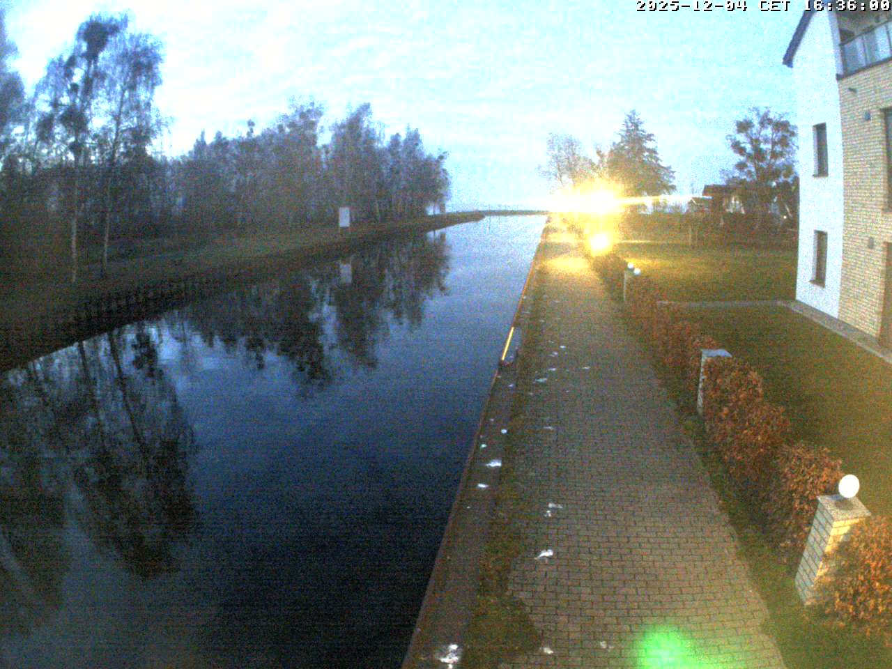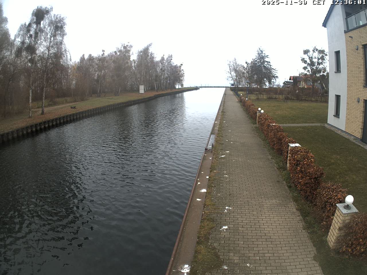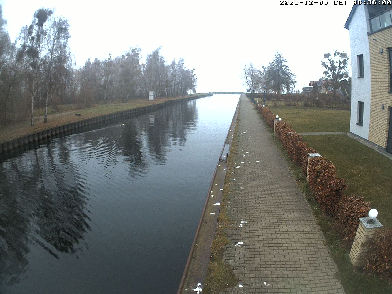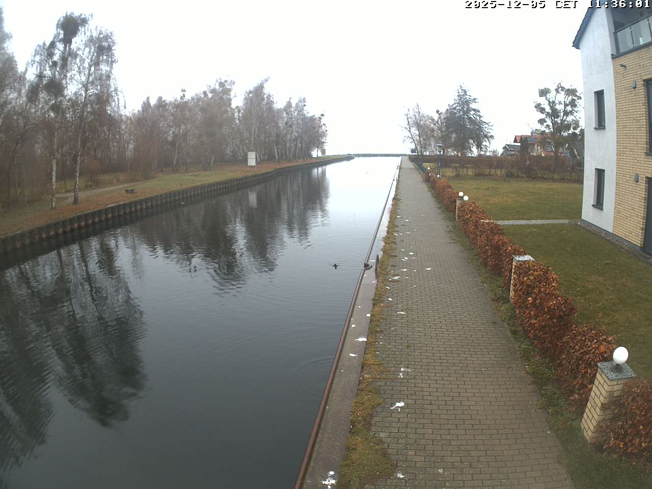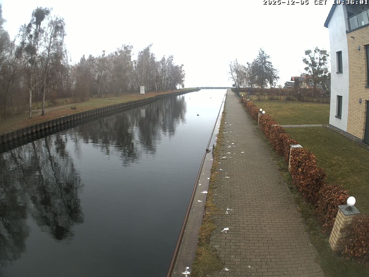 Rechlin, Deutschland - 49.2 km von Annenwalde: Webcam Hafendorf Müritz - Mit dieser Webcam sehen Sie die Ausfahrt aus der Marina Müritz. Der sogenannte Stichkanal ist etwa 180 Meter lang und verbindet den Claassee mit der Müritz.