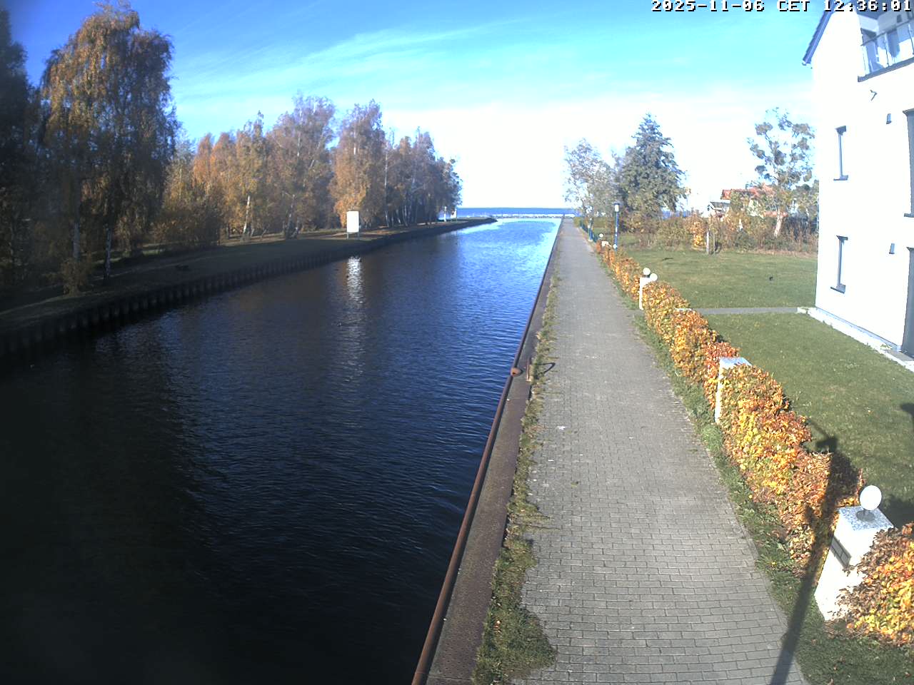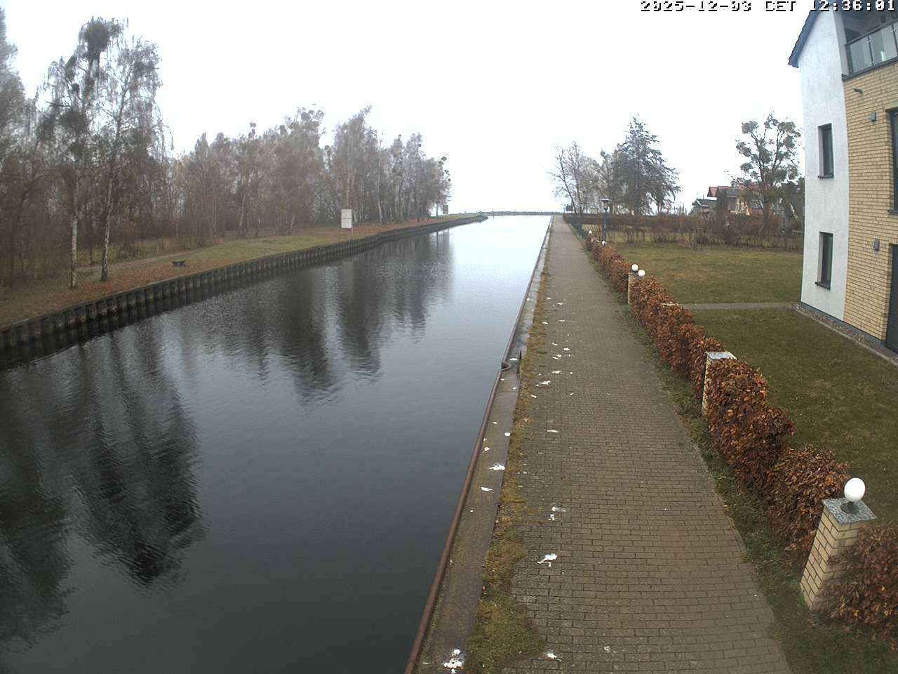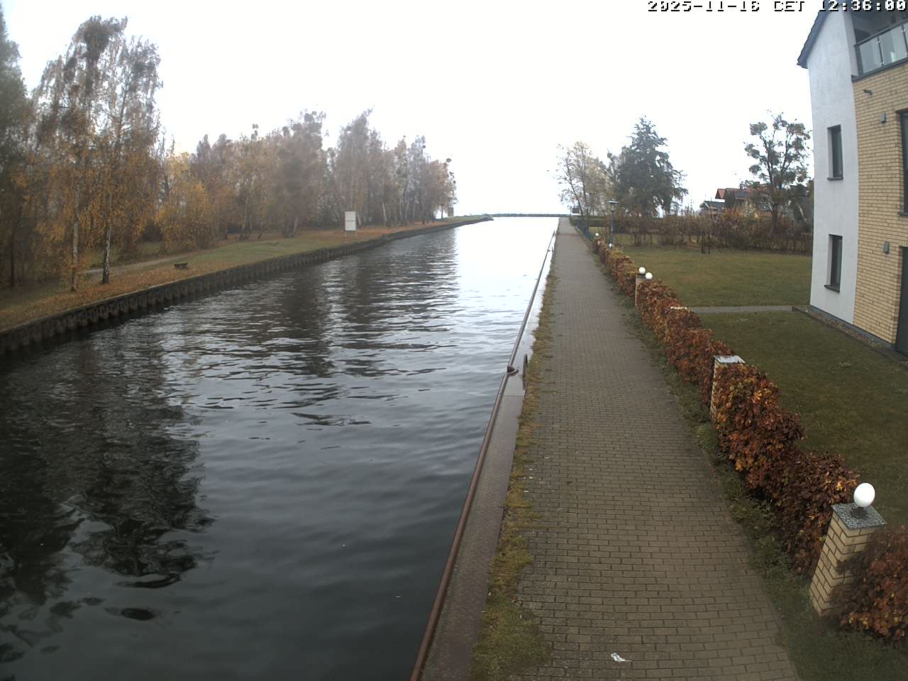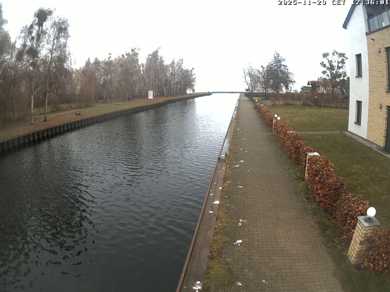 Rechlin, Deutschland - 49.2 km von Annenwalde: Webcam Hafendorf Müritz - Mit dieser Webcam sehen Sie die Ausfahrt aus der Marina Müritz. Der sogenannte Stichkanal ist etwa 180 Meter lang und verbindet den Claassee mit der Müritz.