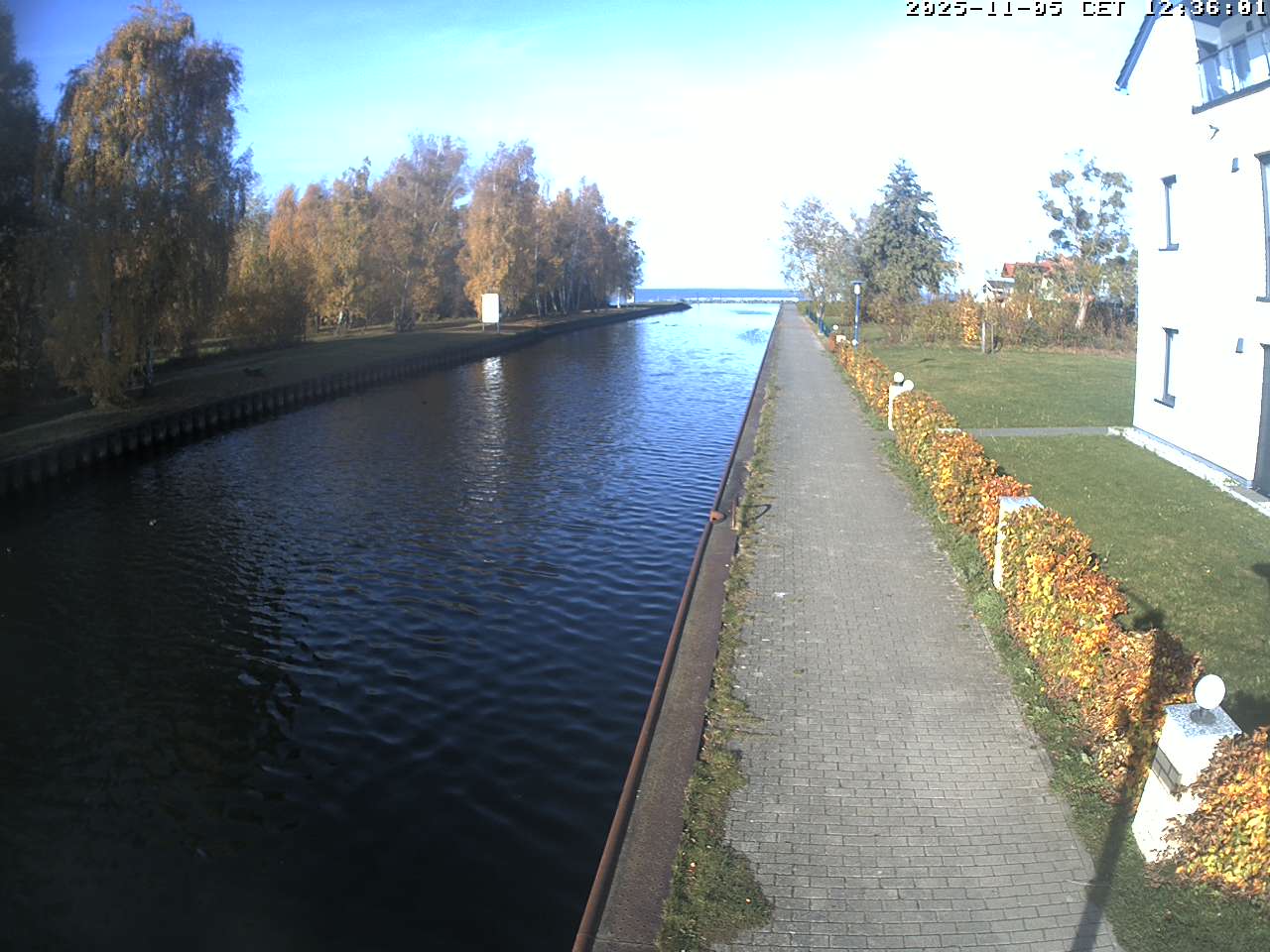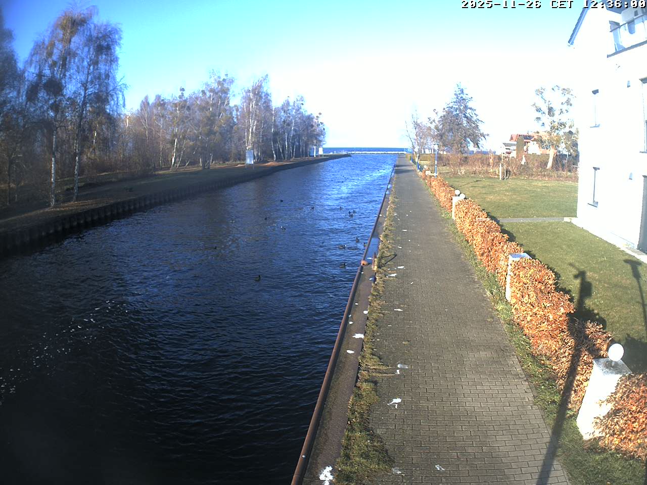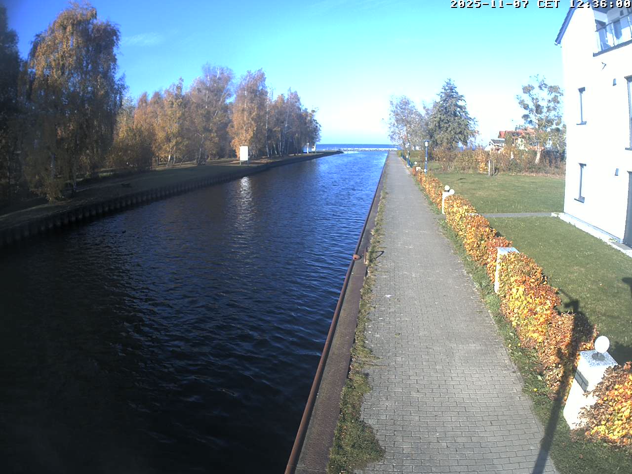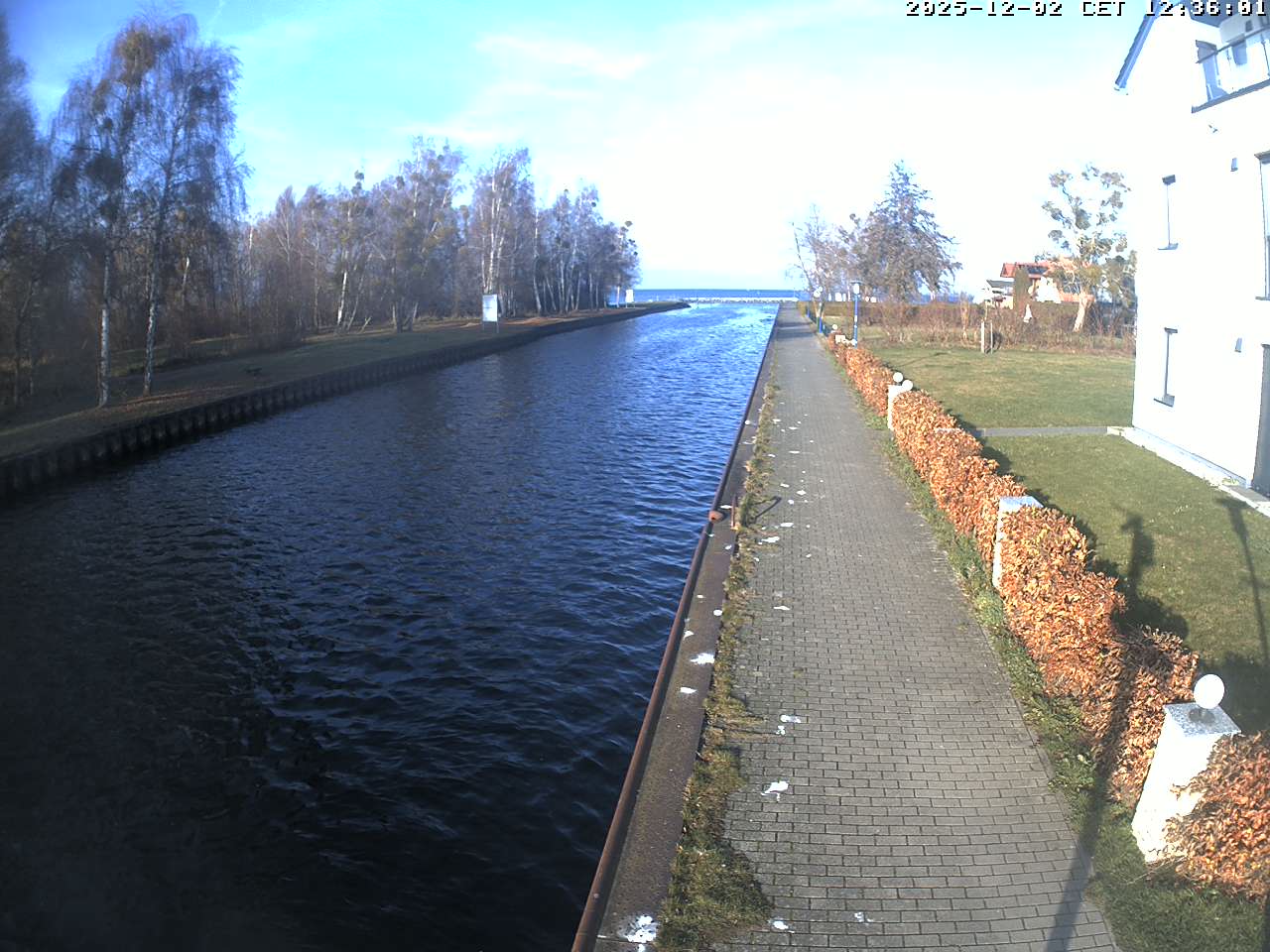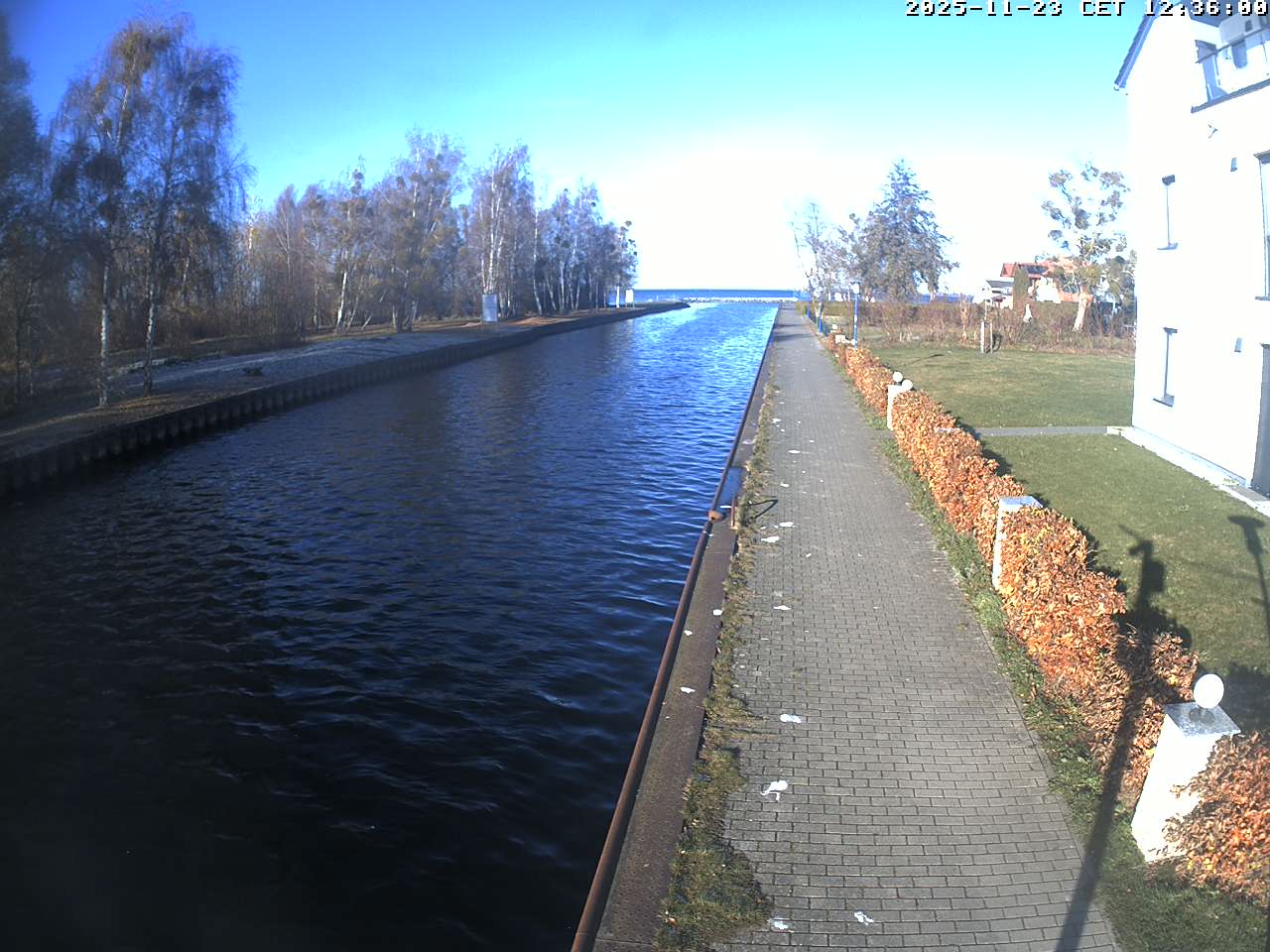 Rechlin, Deutschland - 49.2 km von Annenwalde: Webcam Hafendorf Müritz - Mit dieser Webcam sehen Sie die Ausfahrt aus der Marina Müritz. Der sogenannte Stichkanal ist etwa 180 Meter lang und verbindet den Claassee mit der Müritz.