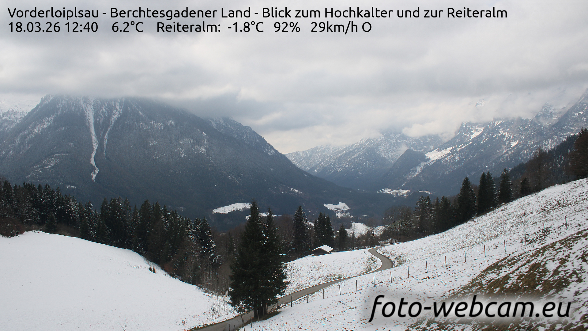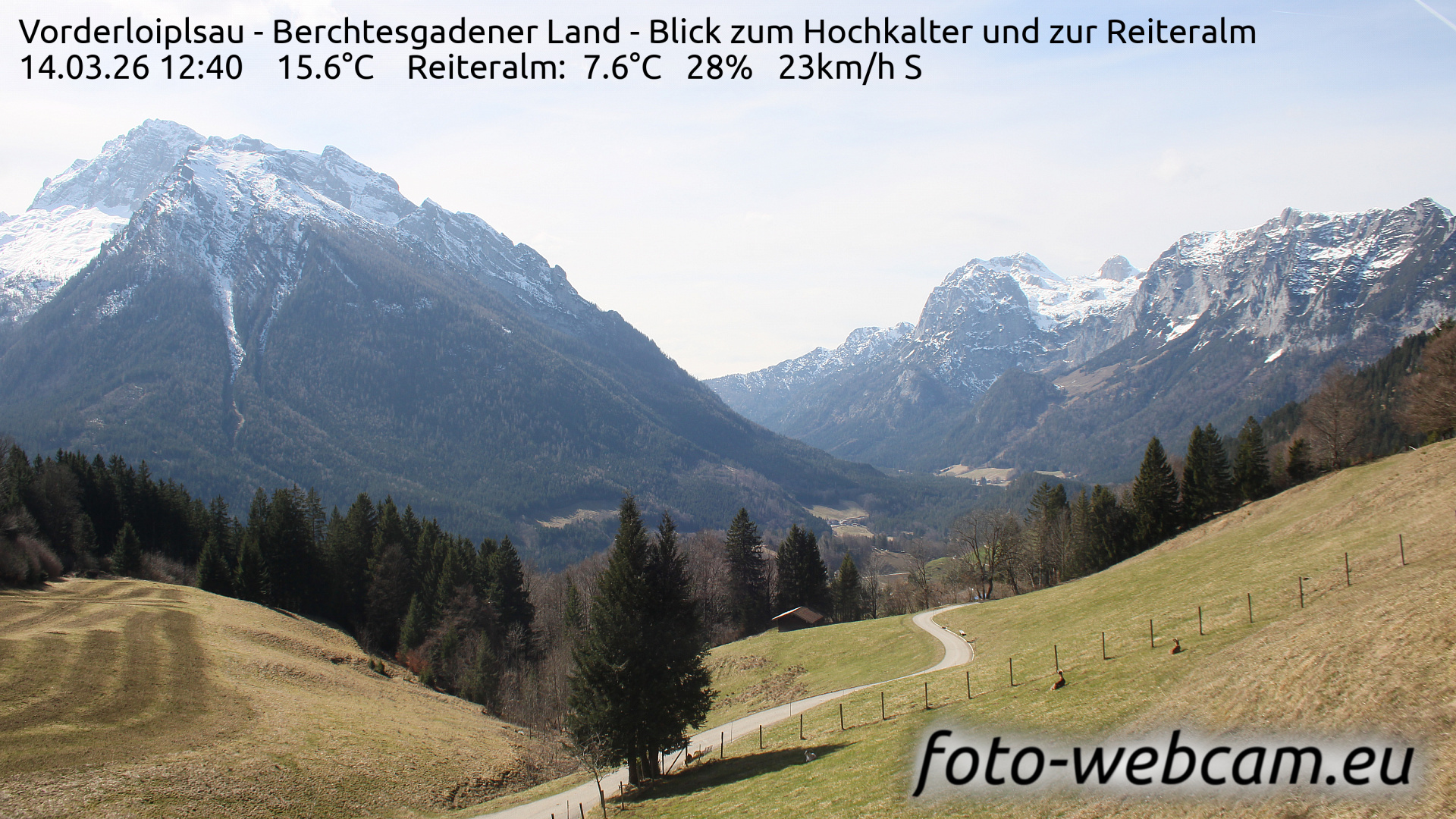 Ramsau bei Berchtesgaden, Deutschland - 2.7 km von Antenbichl: HD Foto-Webcam Vorderloiplsau - Vorderloiplsau - Berchtesgadener Land - Blick zum Hochkalter und zur Reiteralm.