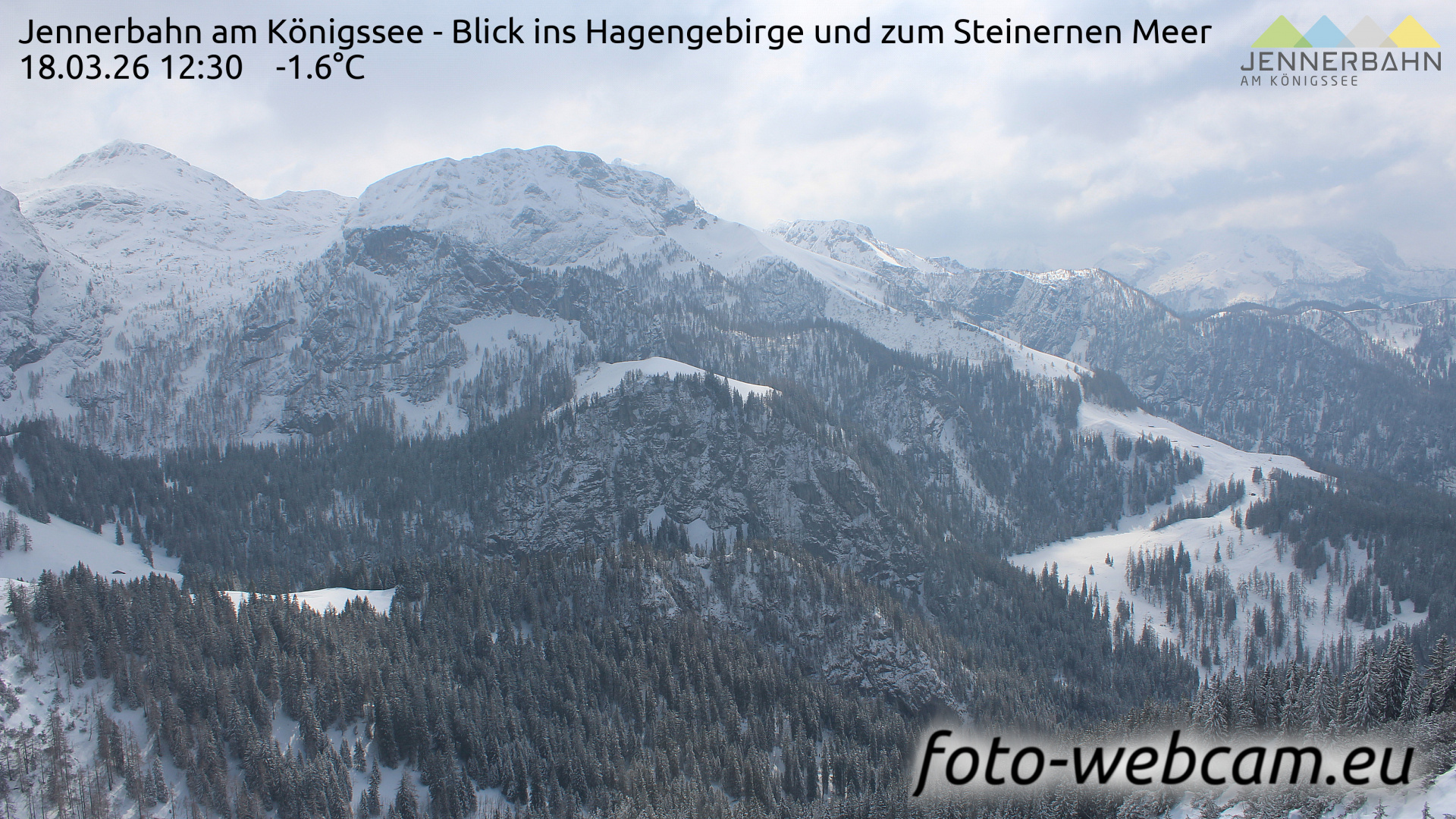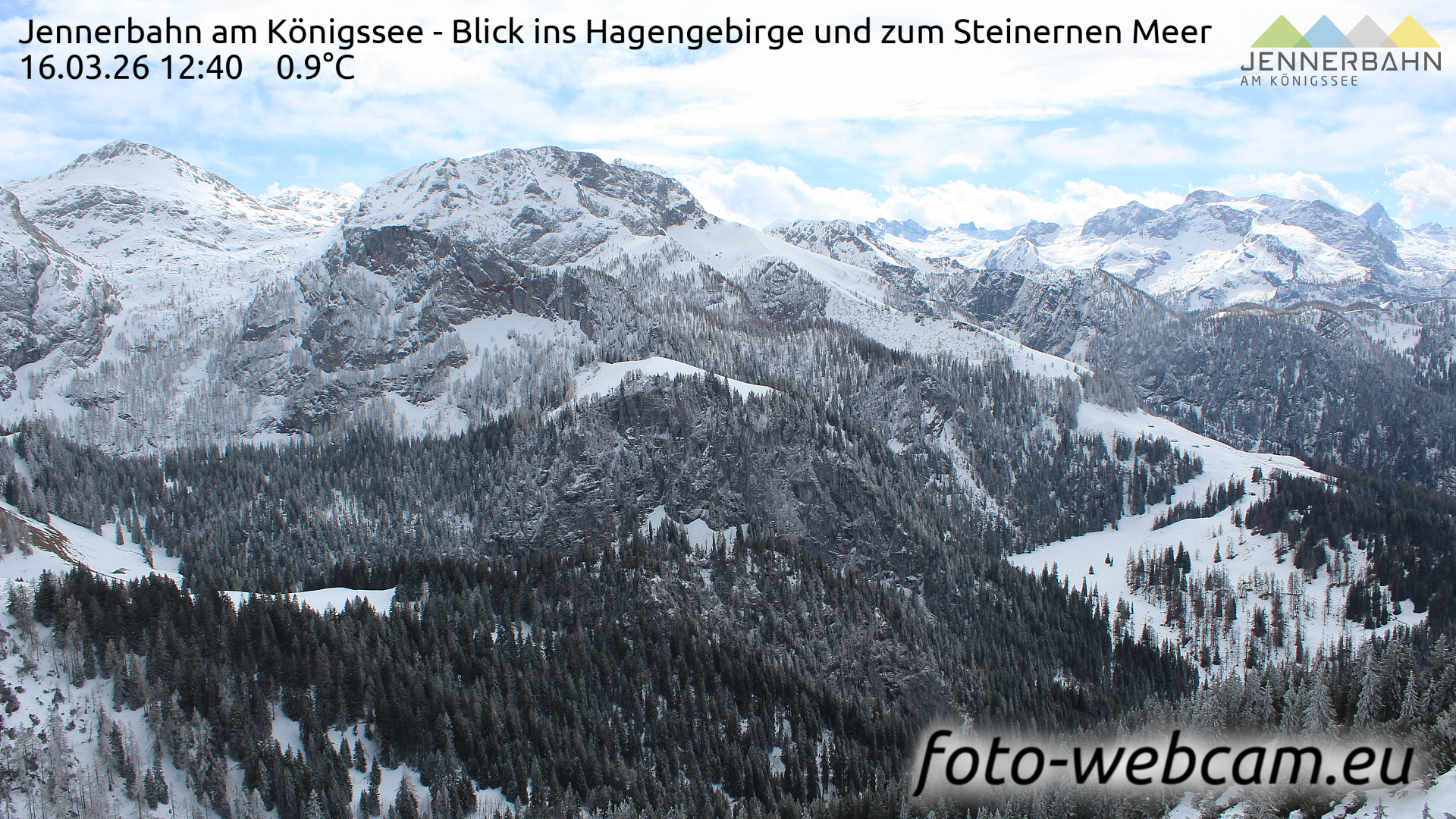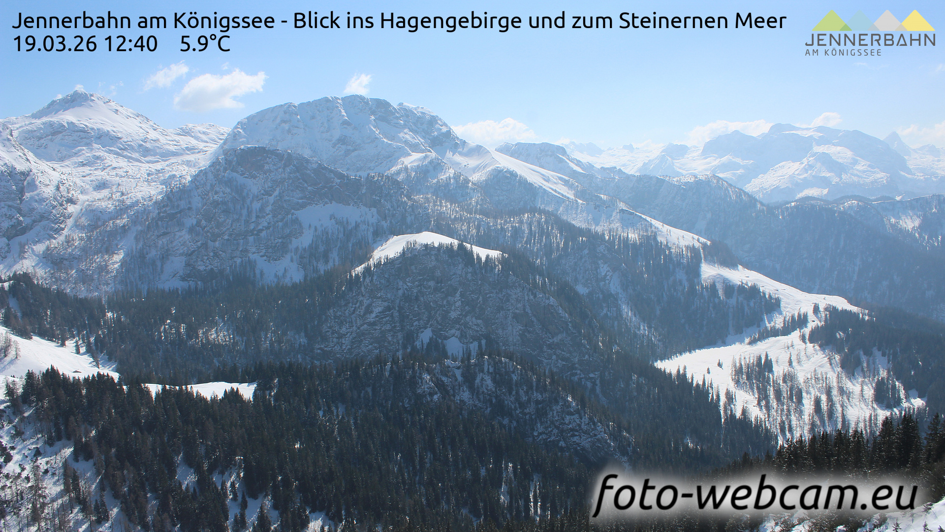 Schönau am Königssee, Deutschland - 9.5 km von Antenbichl: HD Foto-Webcam Hagengebirge - Jennerbahn - Berchtesgaden - Blick ins Hagengebirge und zum Steinernen Meer.