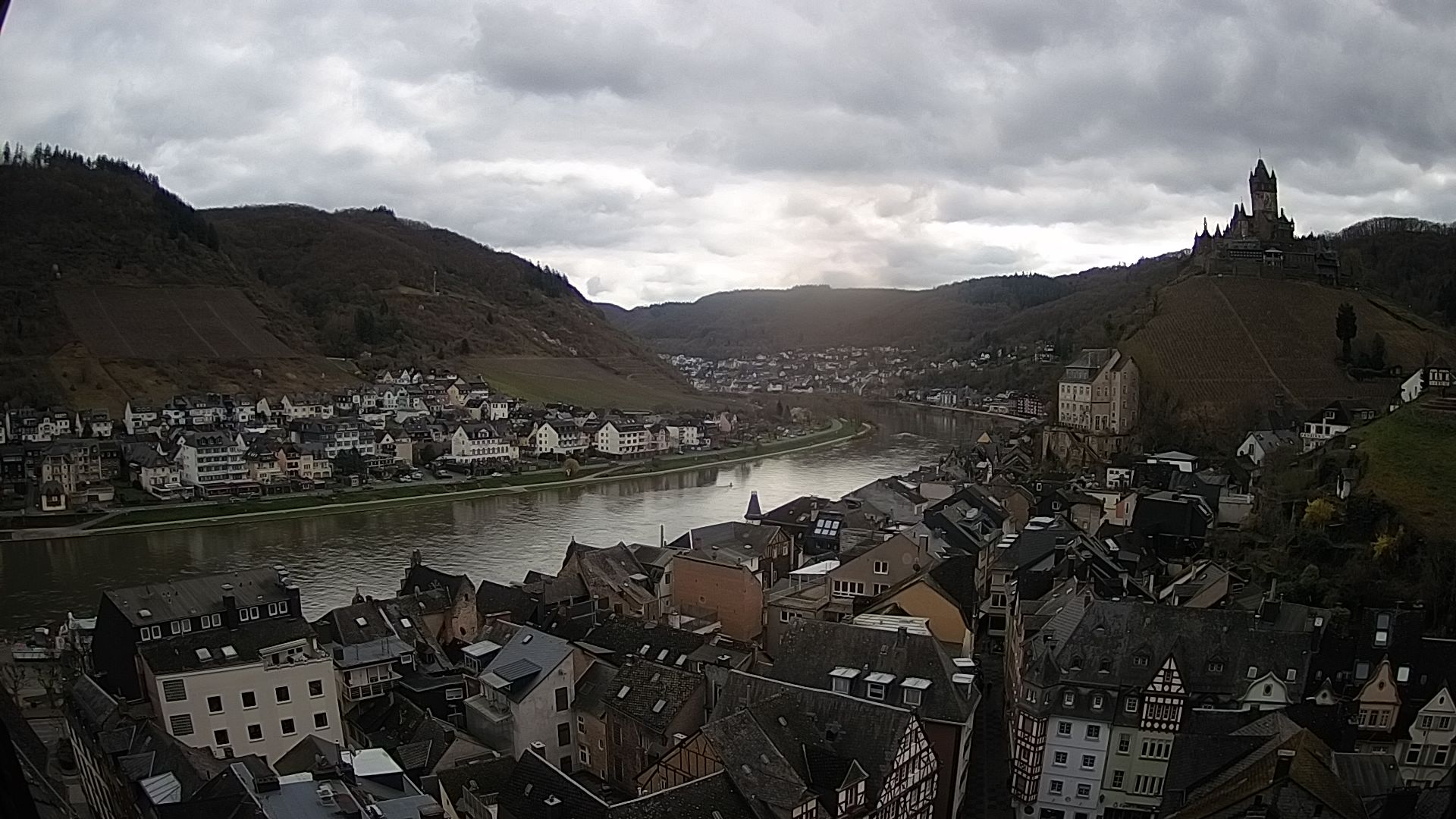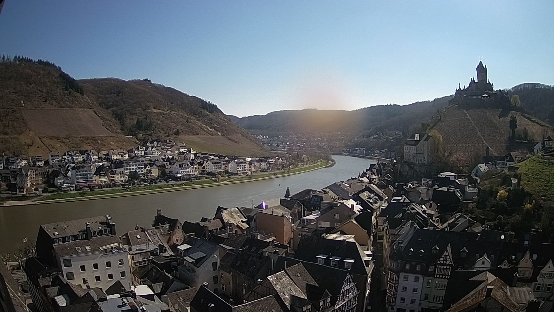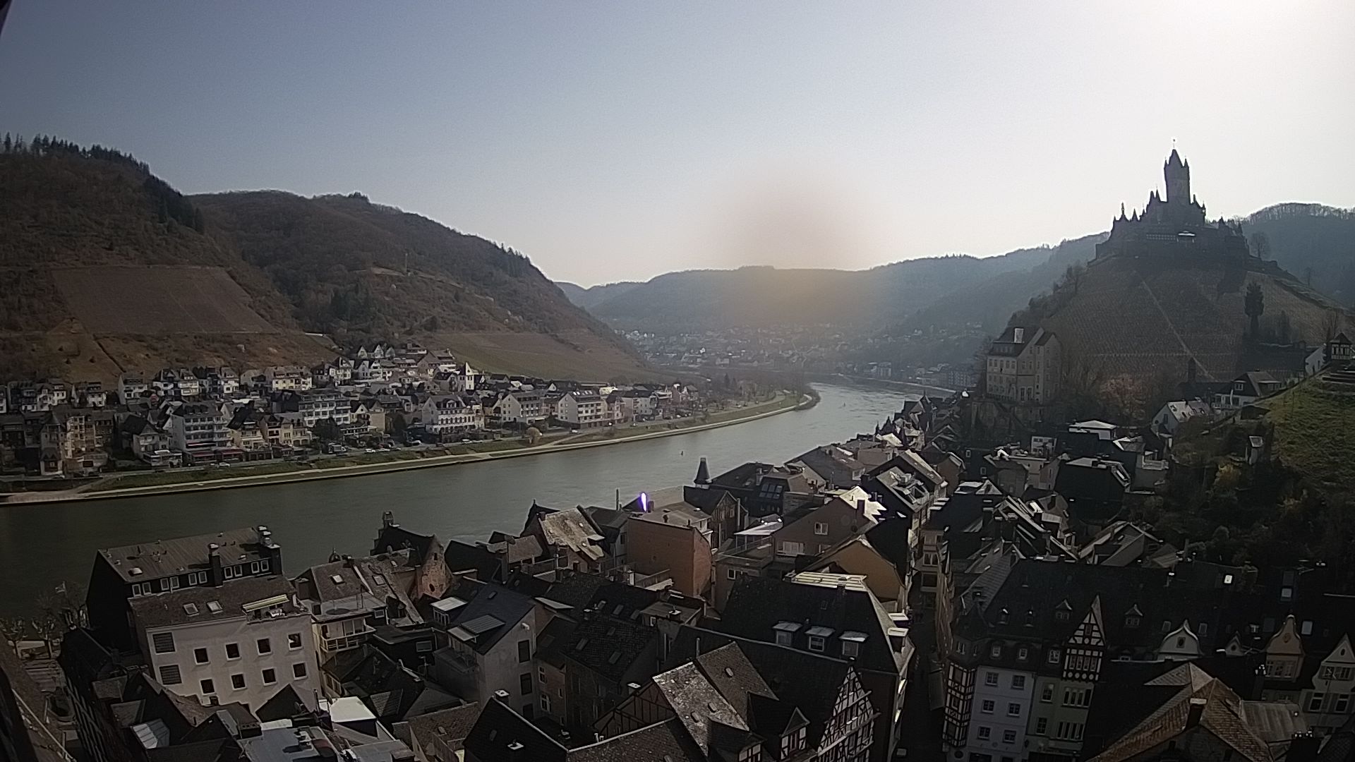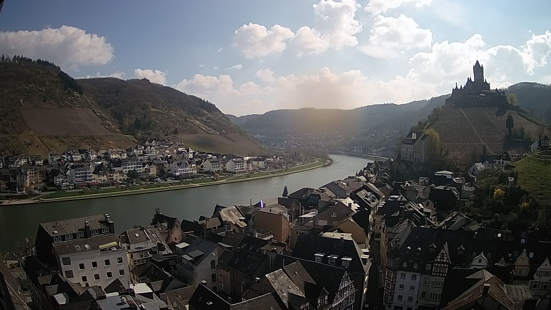 Cochem, Deutschland - 36.8 km von Antweiler: Moselpromenade in Cochem a.d. Mosel - Ein wunderschöner Blick auf die Moselpromenade in Cochem mit Blick auf Mosel, Schiffe und Weinberge