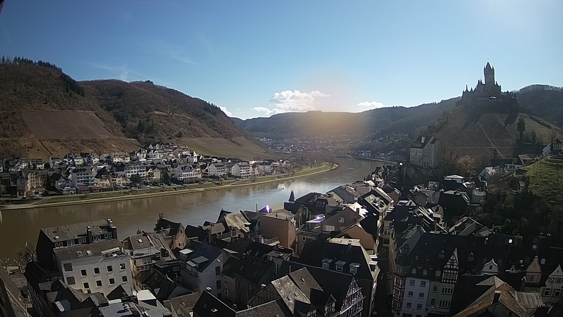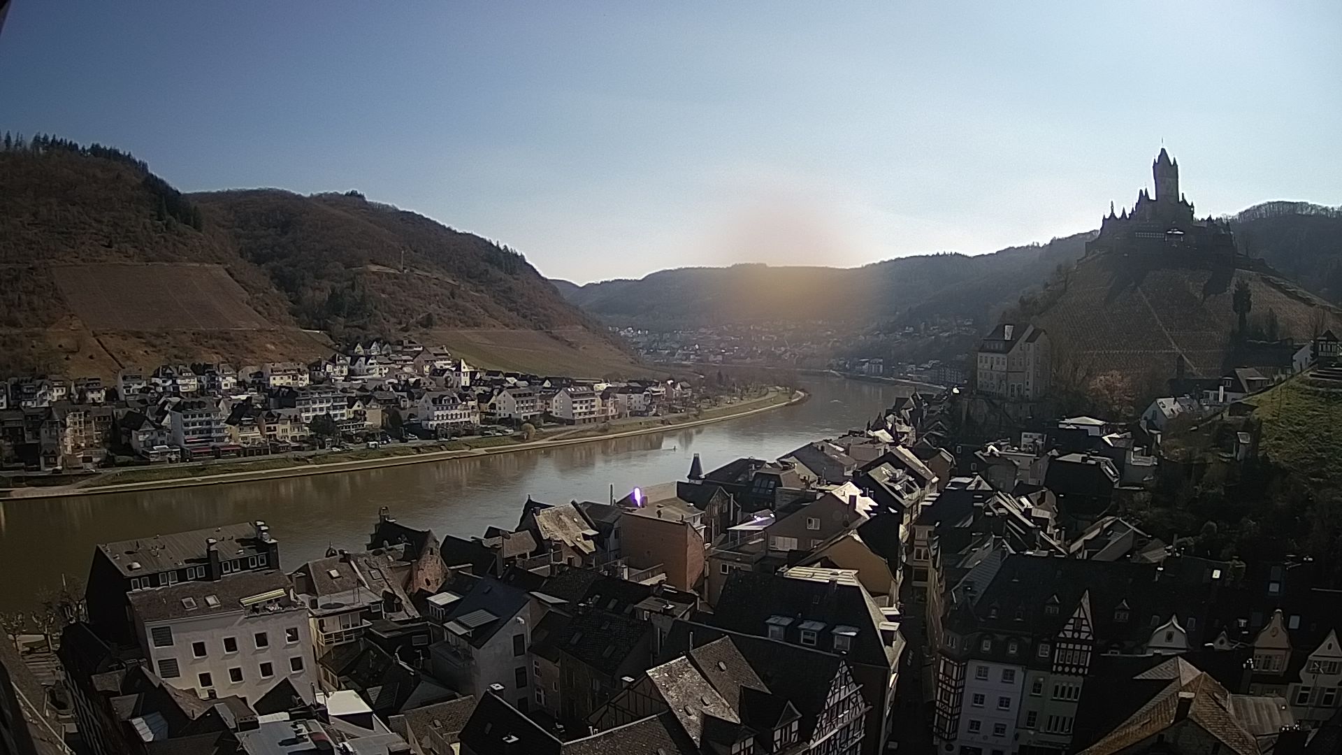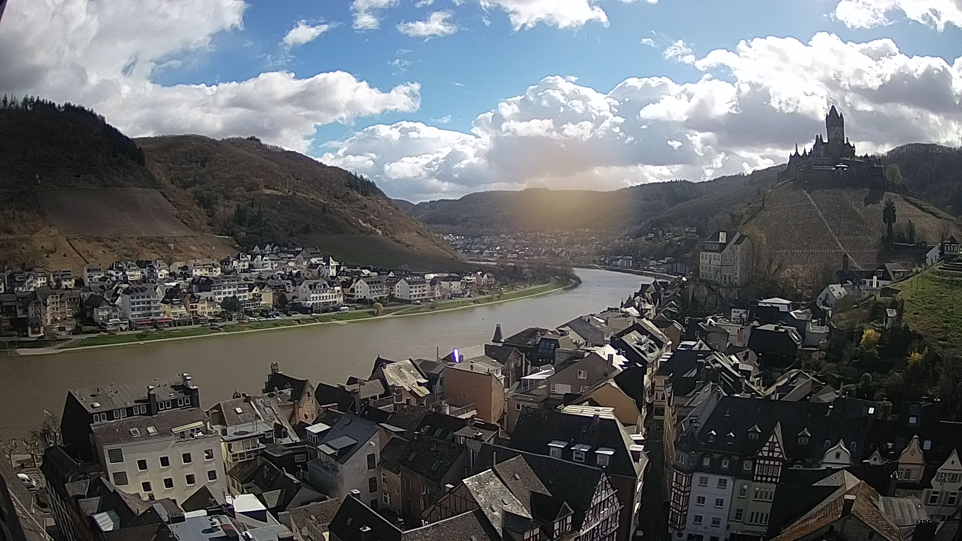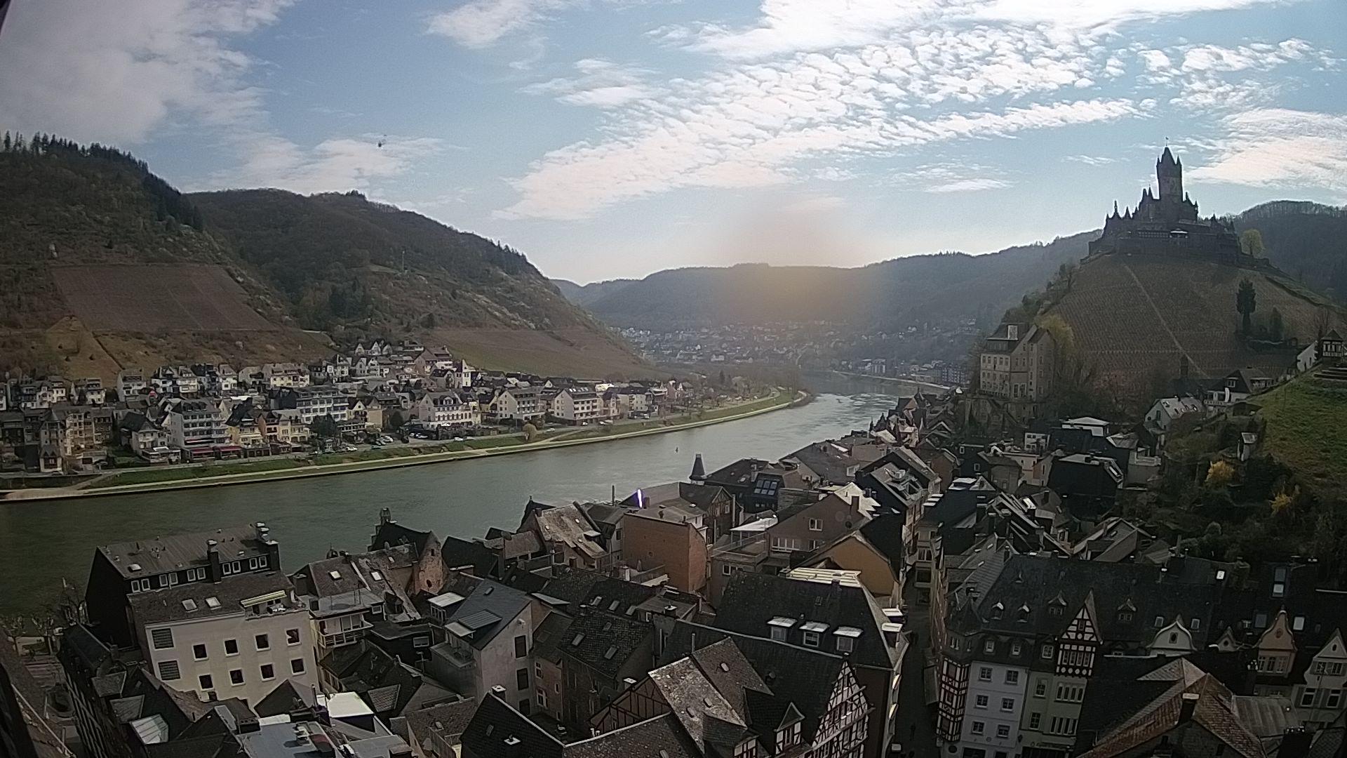 Cochem, Deutschland - 36.8 km von Antweiler: Moselpromenade in Cochem a.d. Mosel - Ein wunderschöner Blick auf die Moselpromenade in Cochem mit Blick auf Mosel, Schiffe und Weinberge
