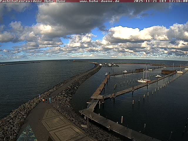 Warnemünde, Deutschland - 22 km von Arendsee: Alter Strom Warnemünde - HD Streaming Kamera am 'Alten Strom' in Warnemünde bei Rostock an der Ostsee. Im Hintergrund die belebte Hafeneinfahrt des Rostocker Fähr- und Containerhafens. Fähren nach Dänemark, Schweden und alle Baltischen Anreihnerstaaten kommern regelmäßig vorbei. Im Vordergrund der 'Alte Strom' von Warnemünde mit seinen kleinen Fischerbooten, Fischmarkt auf der Mittelmole und der Probmenade. Als Bonus gibts Livewetter in Echtzeit im Videoplayer. Powered by Livespotting.tv in HD Qualität.