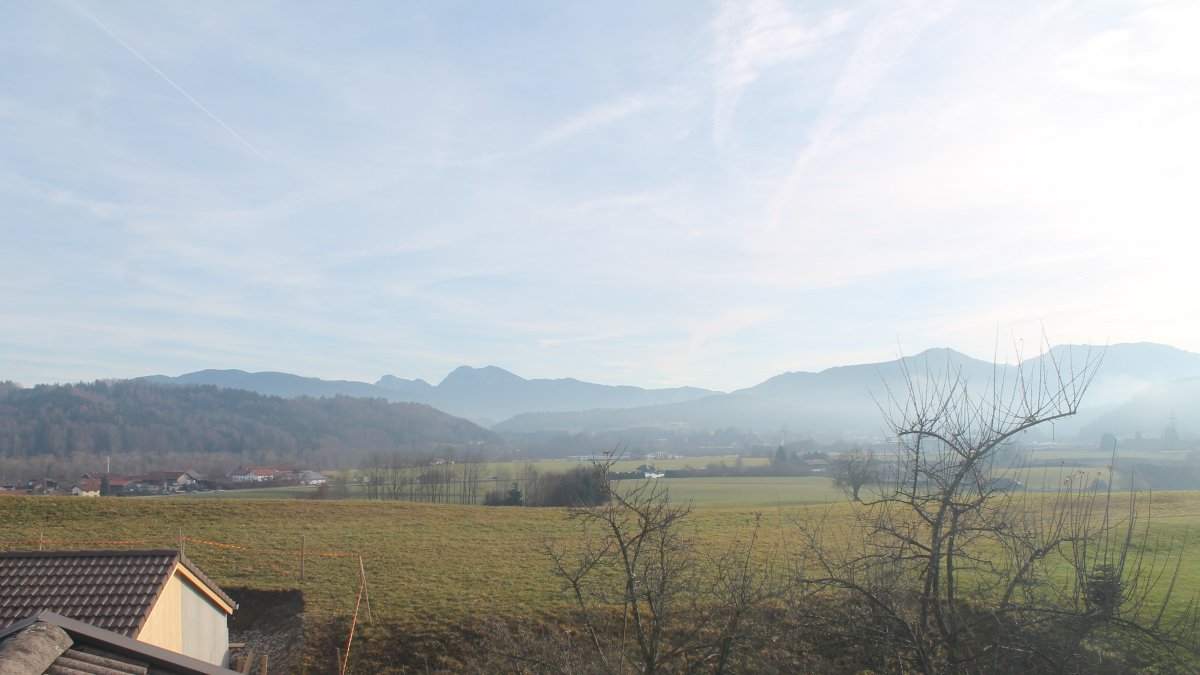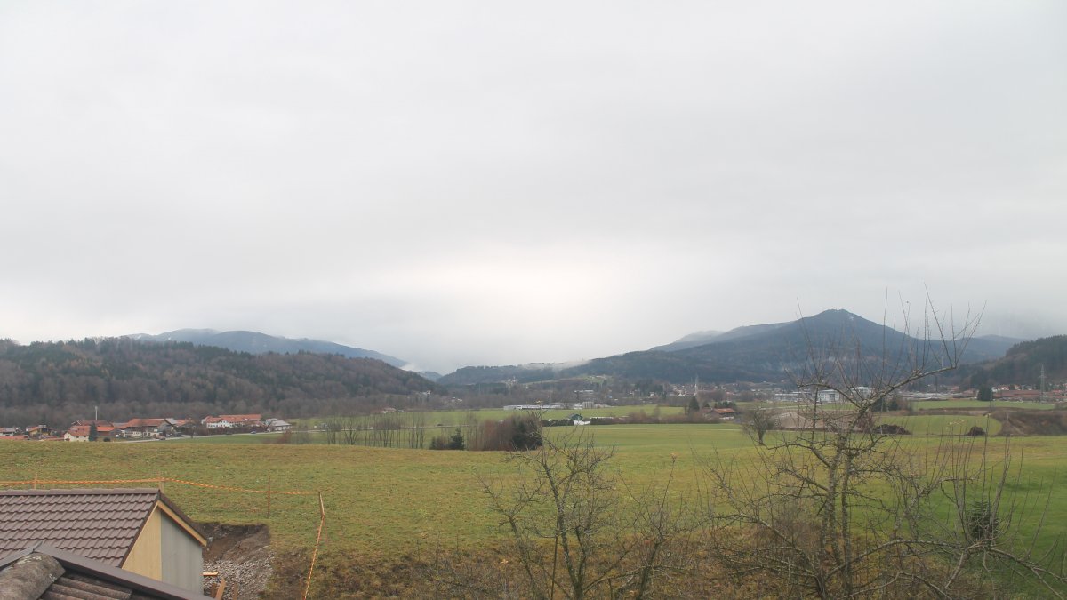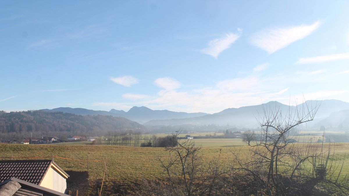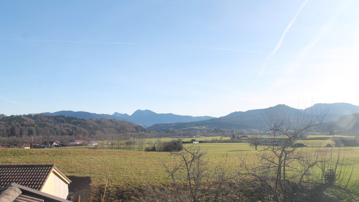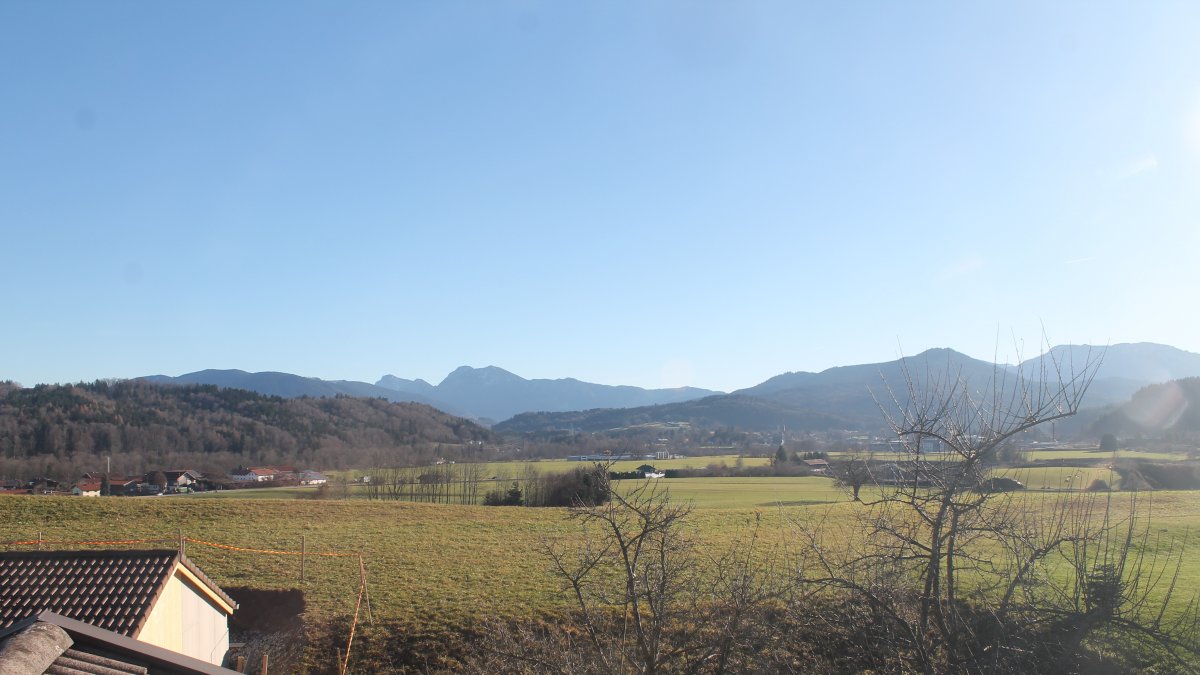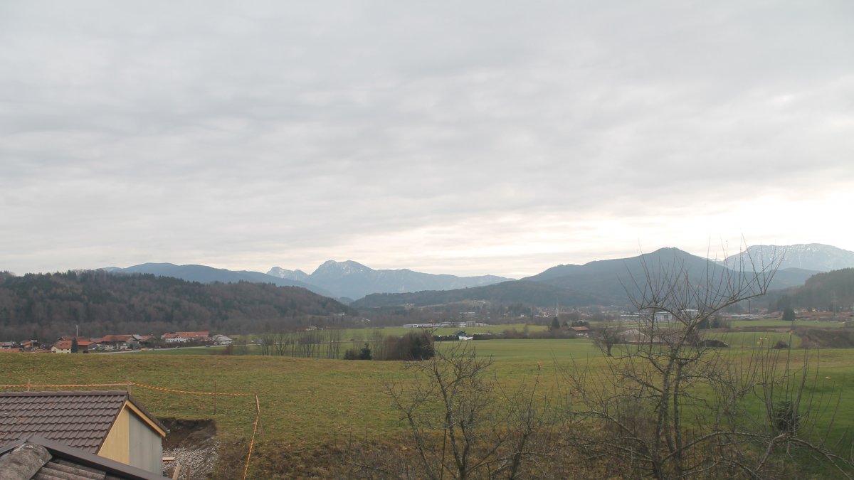 Altenmarkt a. d. Alz, Deutschland - 9.9 km von Arlaching: Auberg-CAM - Blick über das südostbayrische Voralpenland (rechts auf dem Berg - Stiftskirche Baumburg).