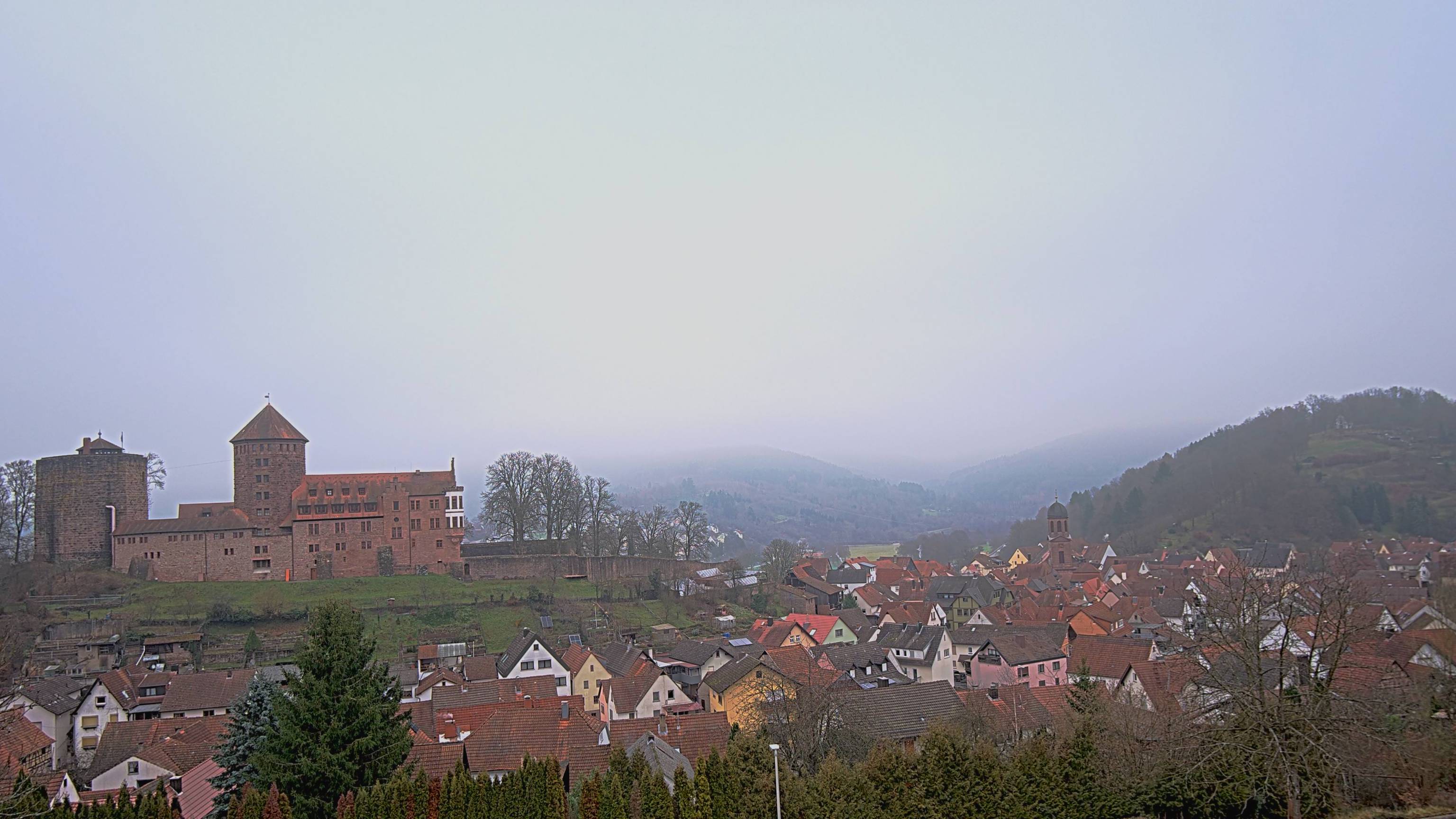 Pfaffenhausen, Deutschland - 10.3 km von Aura an der Saale: Fränkisches Saaletal und Hammelburg - Vom Dach eines Hauses in Pfaffenhausen zeigt die Kamera das fränkische Saaletal und Hammelburg, die südliche Grenze der Rhön.