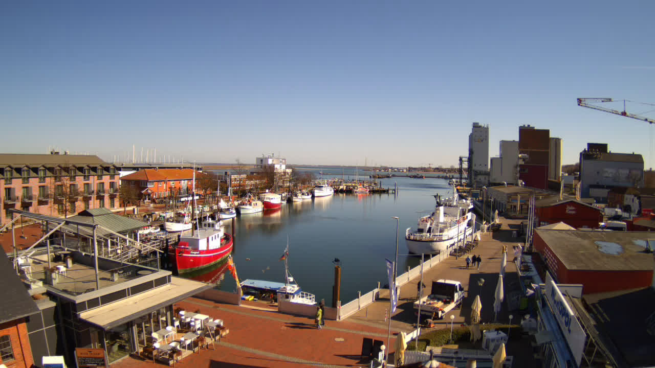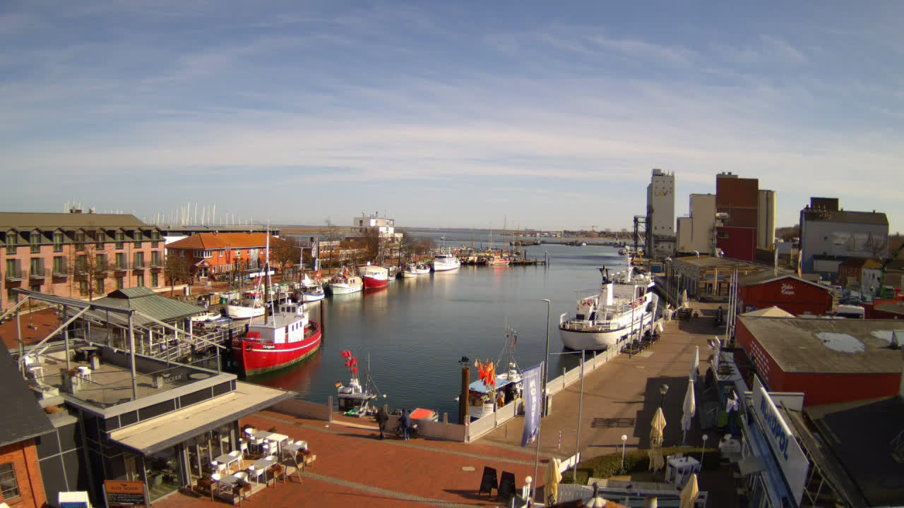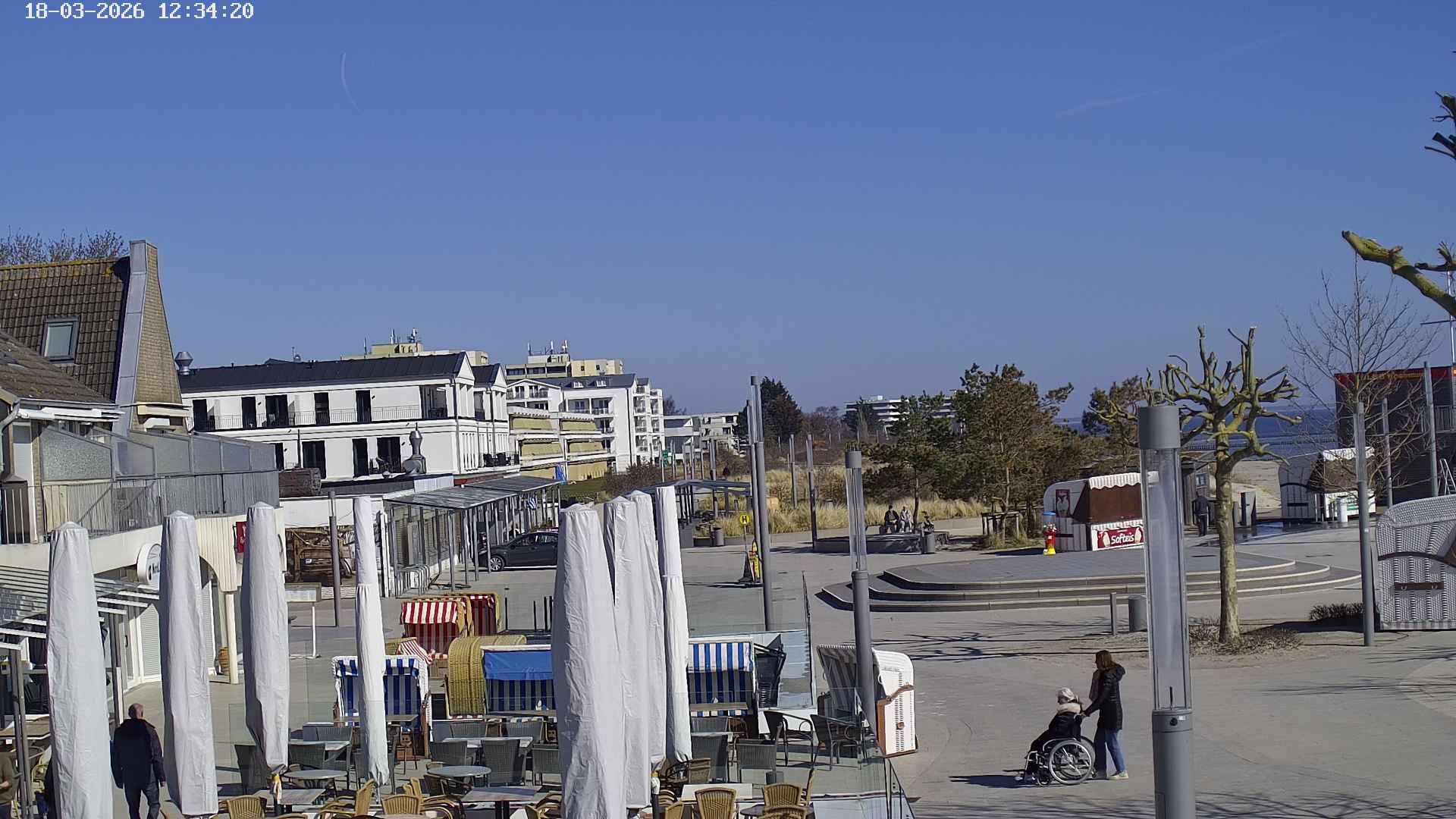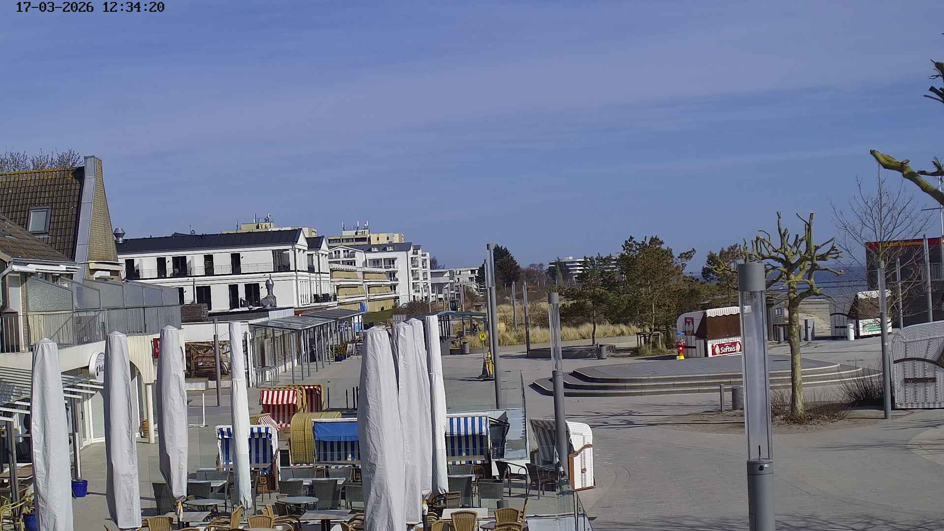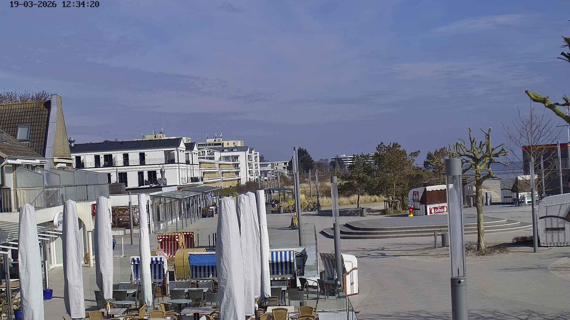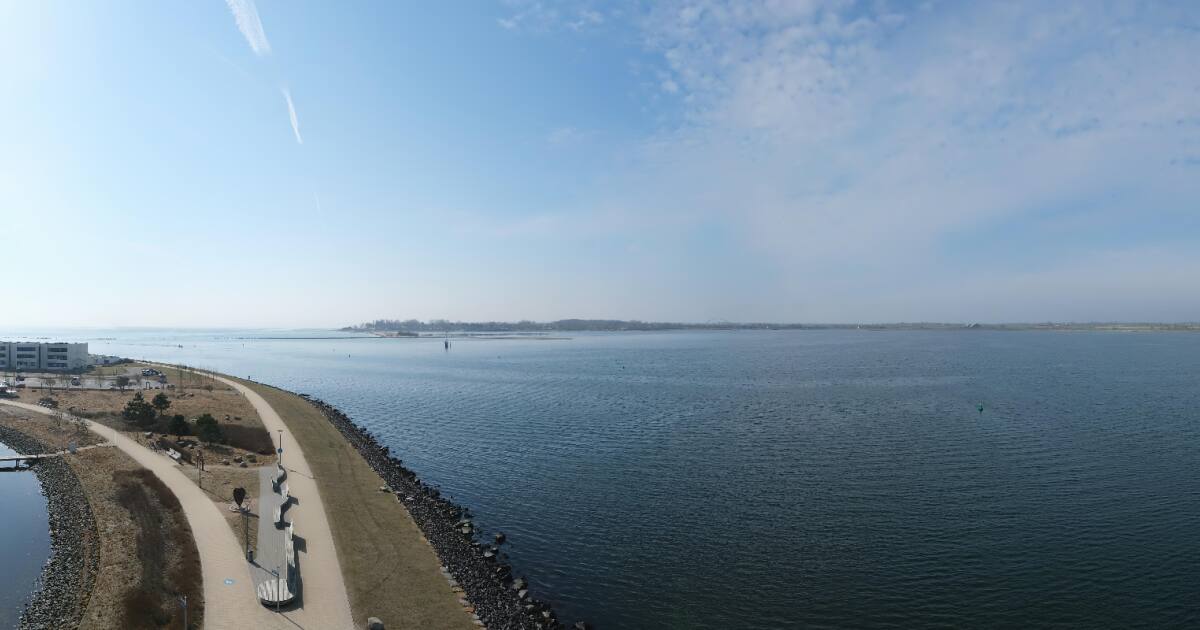 Heiligenhafen, Deutschland - 11.1 km von Avendorf: Panoramakamera Ferienhaus UTKIEK - Die Livecam befindet sich am 5-Sterne-Ferienhaus UTKIEK, dem neuen, barrierefreien Reethaus (138 qm) in exponierter Lage im Strand Resort Heiligenhafen. Unmittelbar an der Ostsee gelegen hat man von hier einen traumhaften Rundumblick auf die große Erlebnis-Seebrücke, dem neuen Highlight Heiligenhafens, auf Fehmarn mit der prägnanten Sundbrücke, auf das Naturschutzgebiet Graswarder mit seiner faszinierende Vogelwelt und den einzigartigen Villen sowie auf den beliebten 5-Sterne Marina Yachthafen mit seinem maritimen Flair.