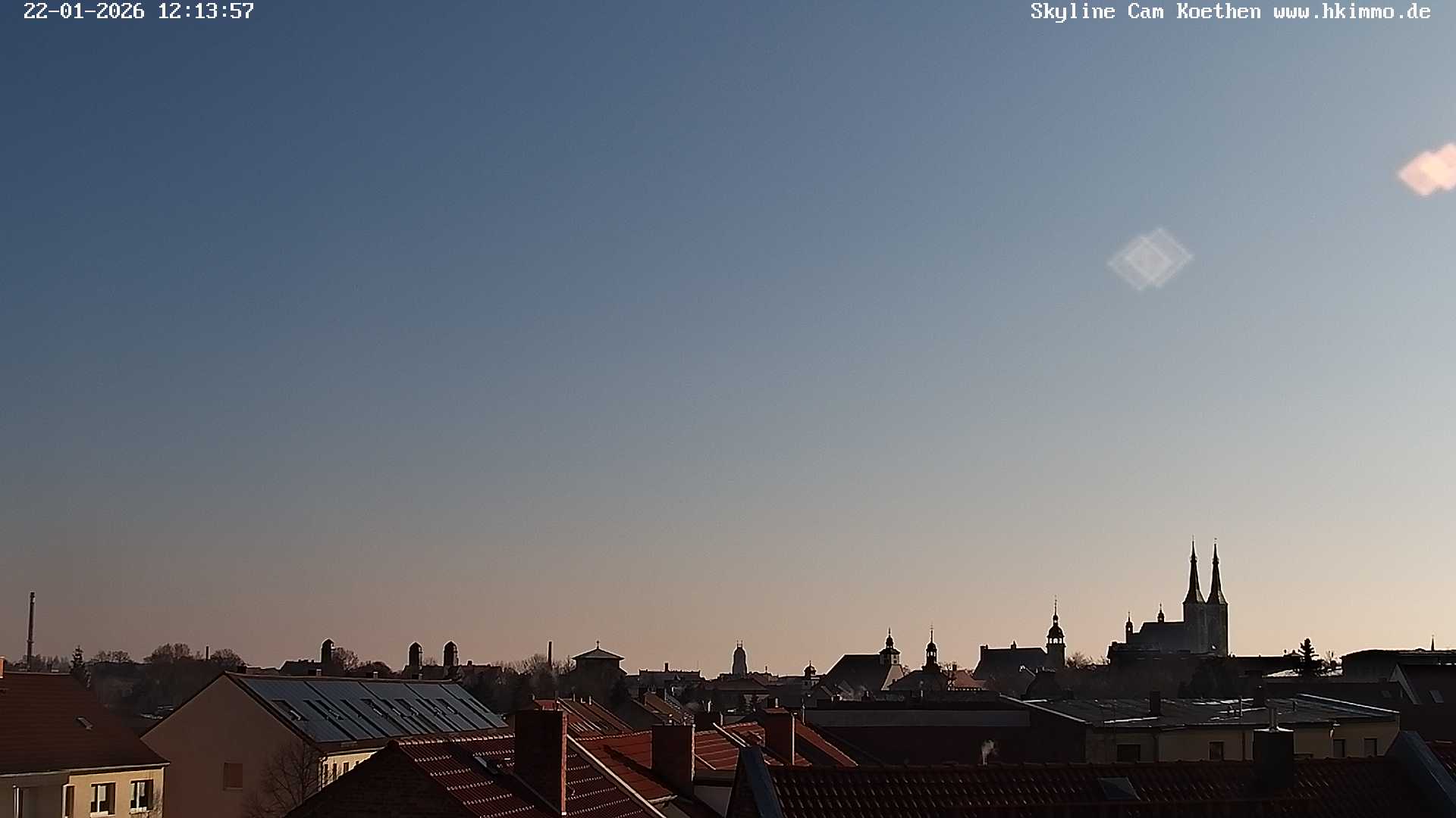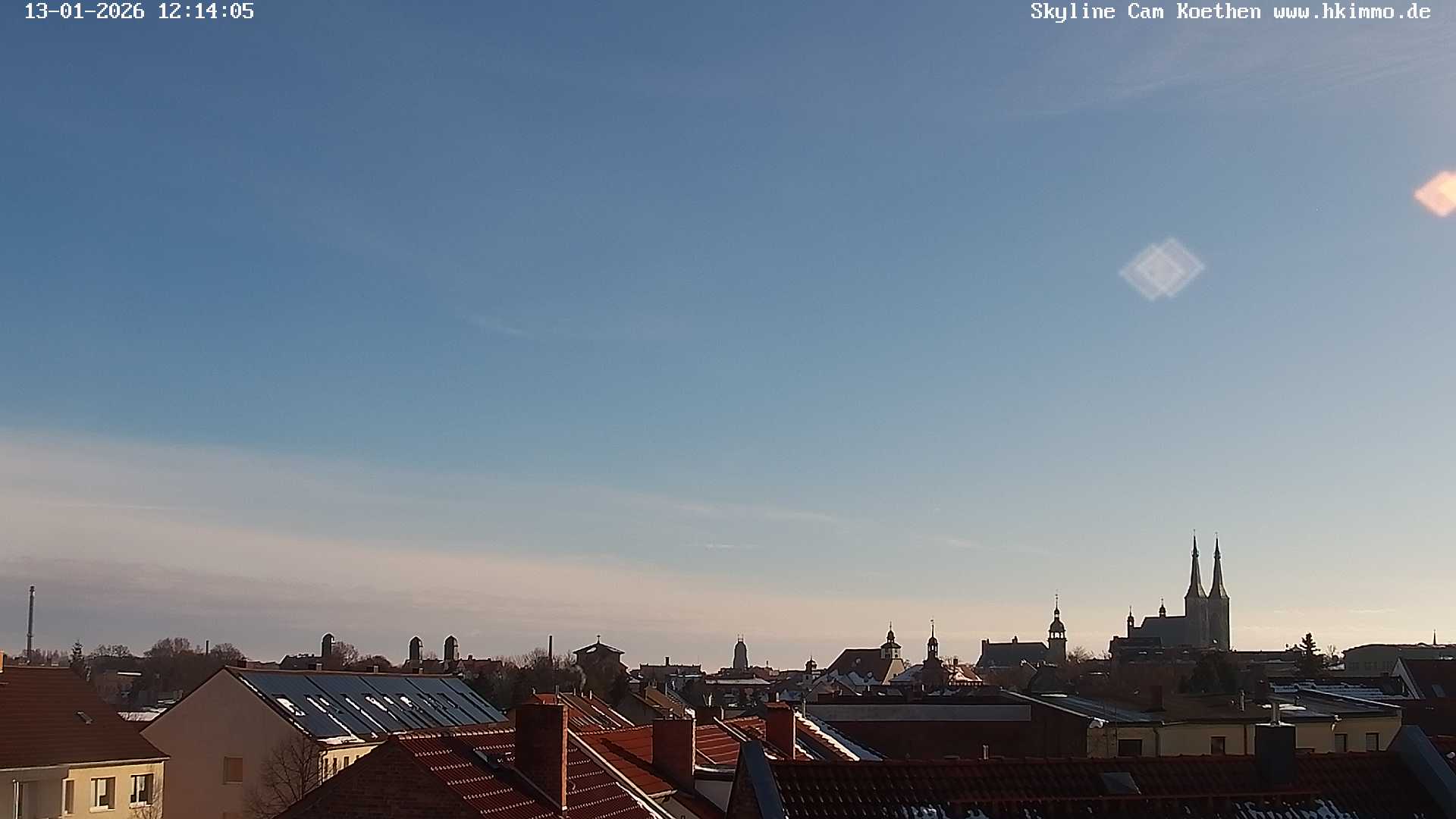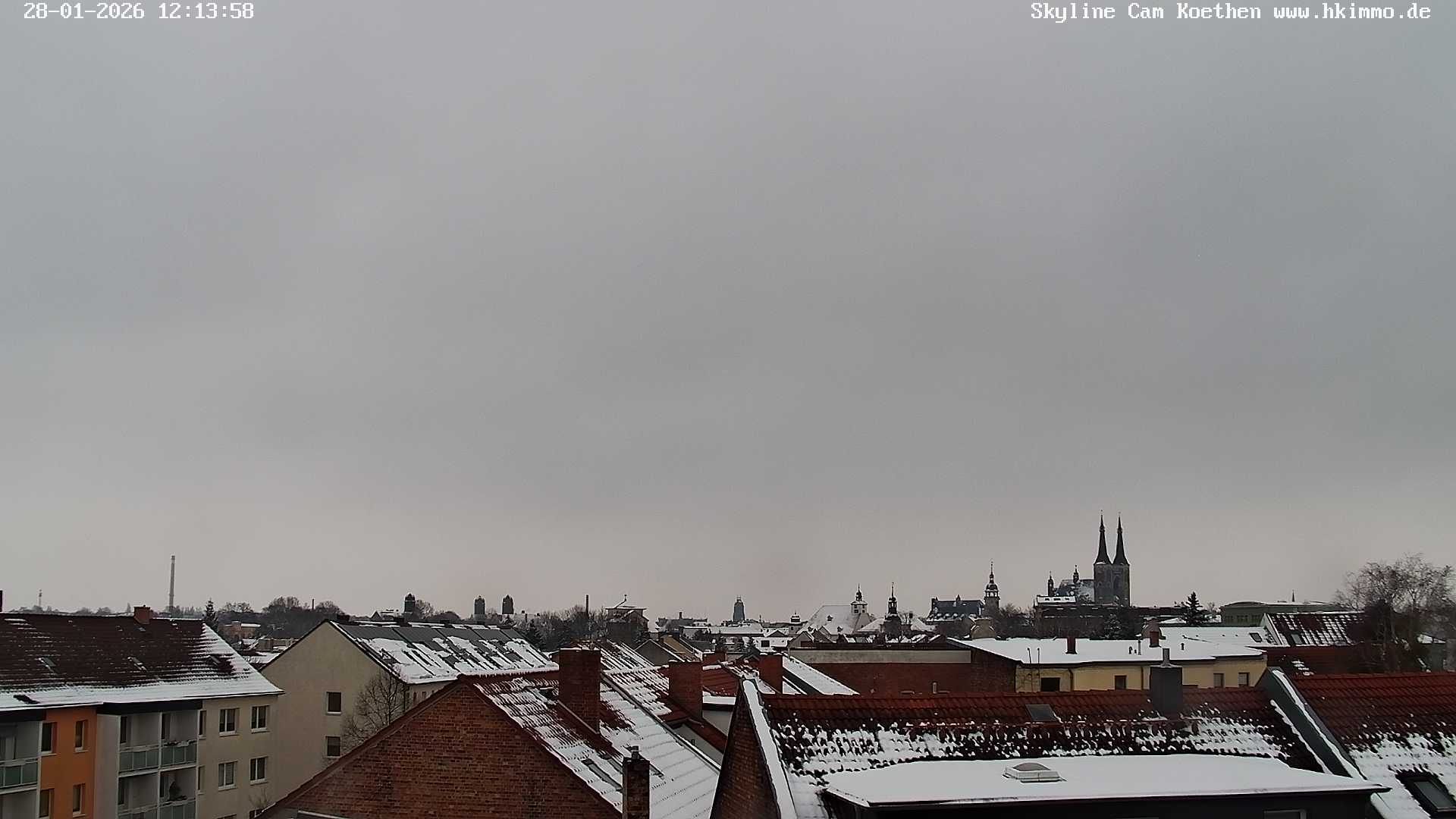 Köthen (Anhalt), Deutschland - 62.8 km von Axien: Skyline der Bachstadt Köthen - Die Webcam über den Dächern der Stadt zeigt die Skyline der Bachstadt Köthen/Anhalt von Nord nach Süd mit dem Schloß, vielen Kirchen und dem Rathaus.